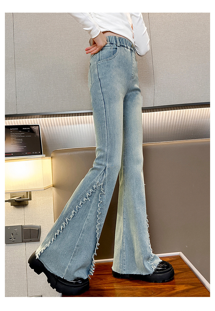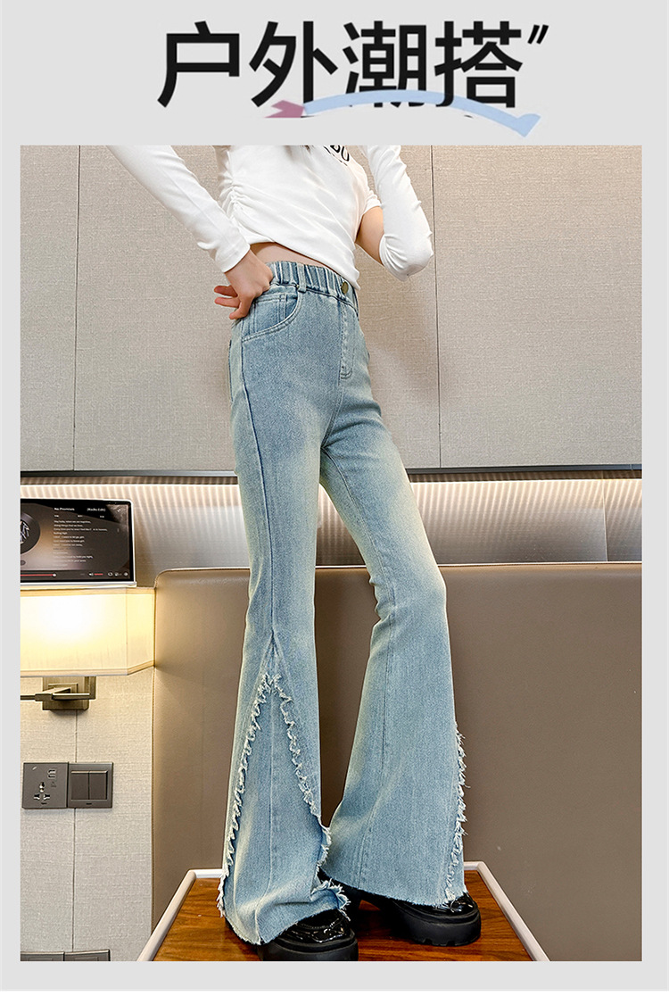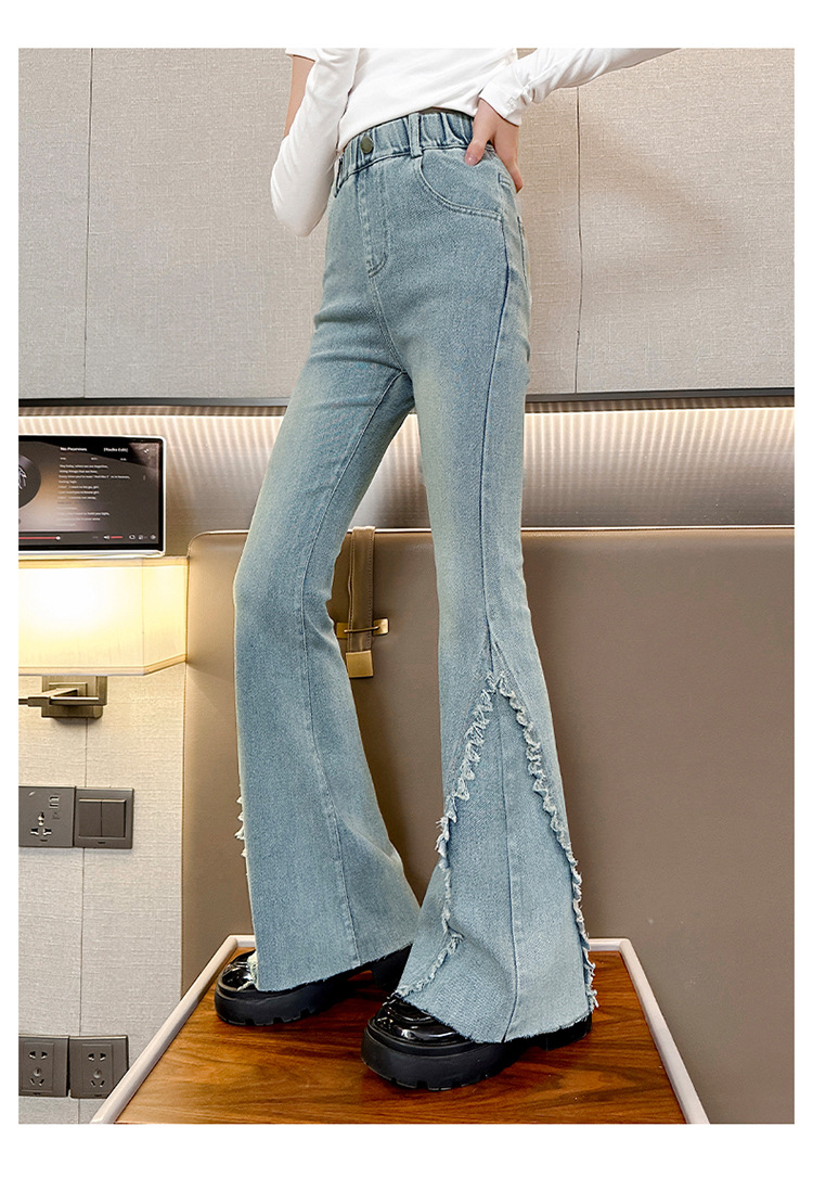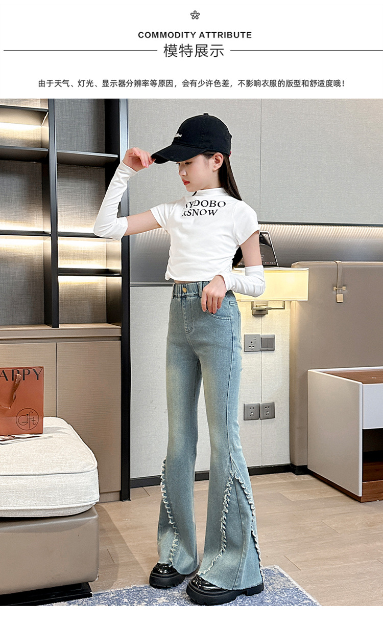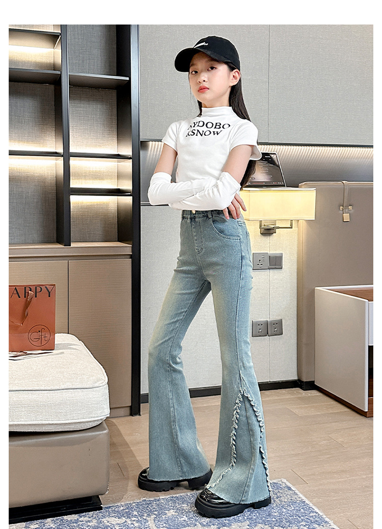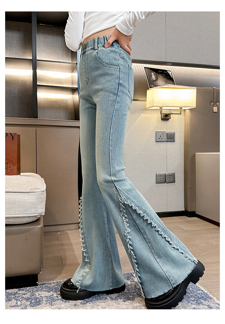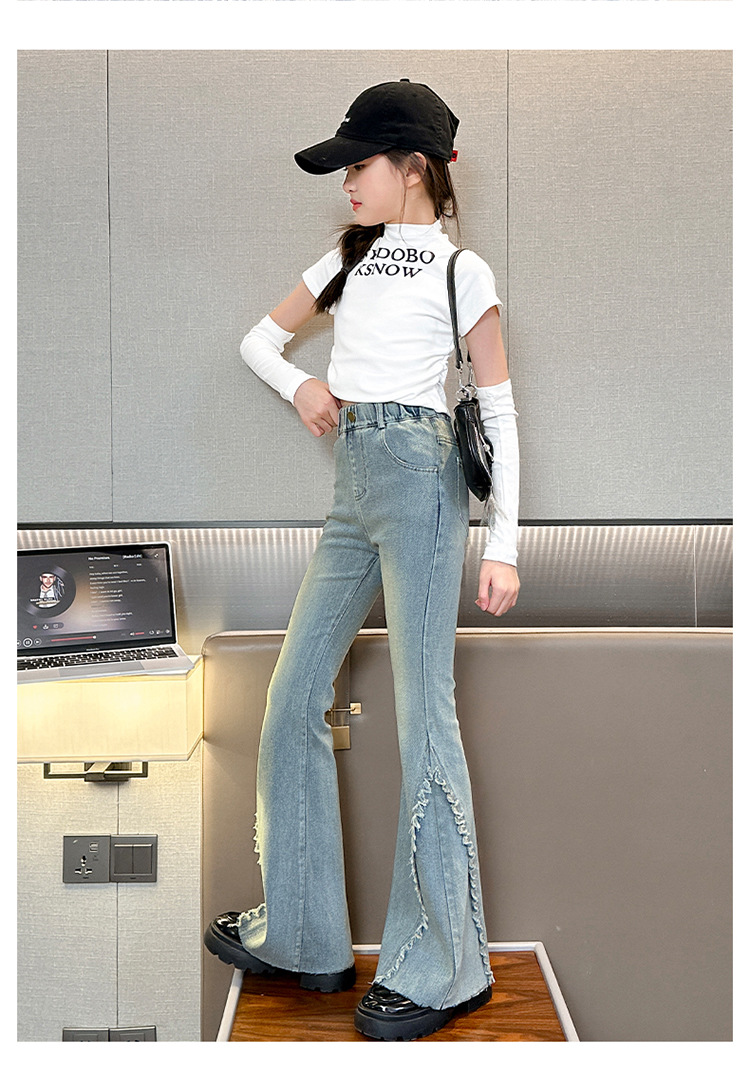 소녀 데님 꽃 바지 2025 봄 새로운 도착 서양식 소녀의 봄과 가을 스트레치 슬림-중간 및 큰 어린이 봄 바지스토어 가기
