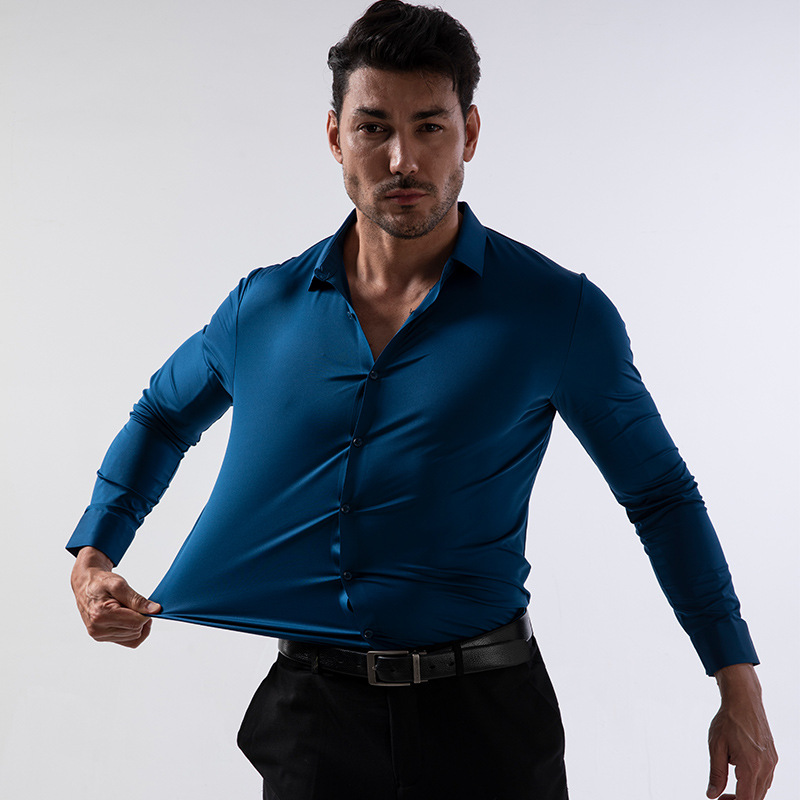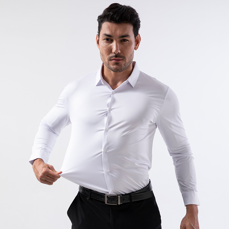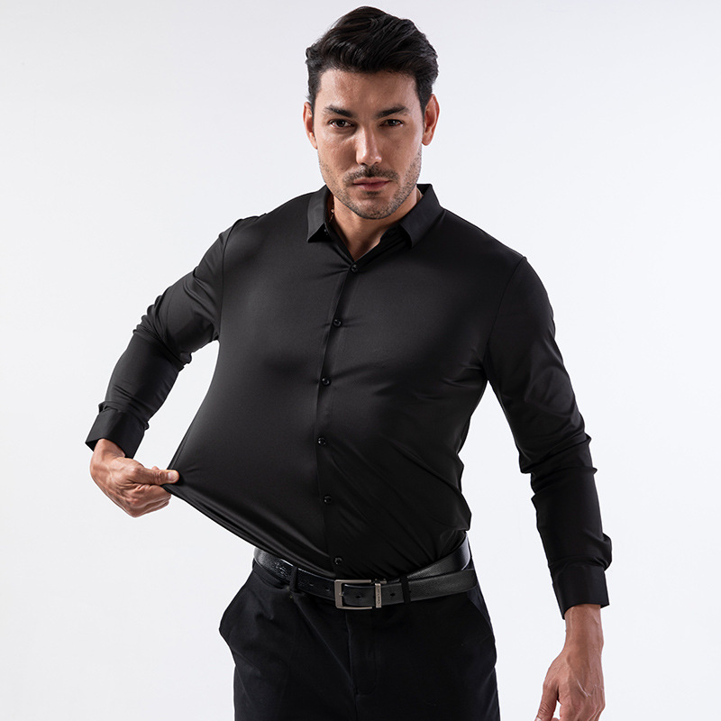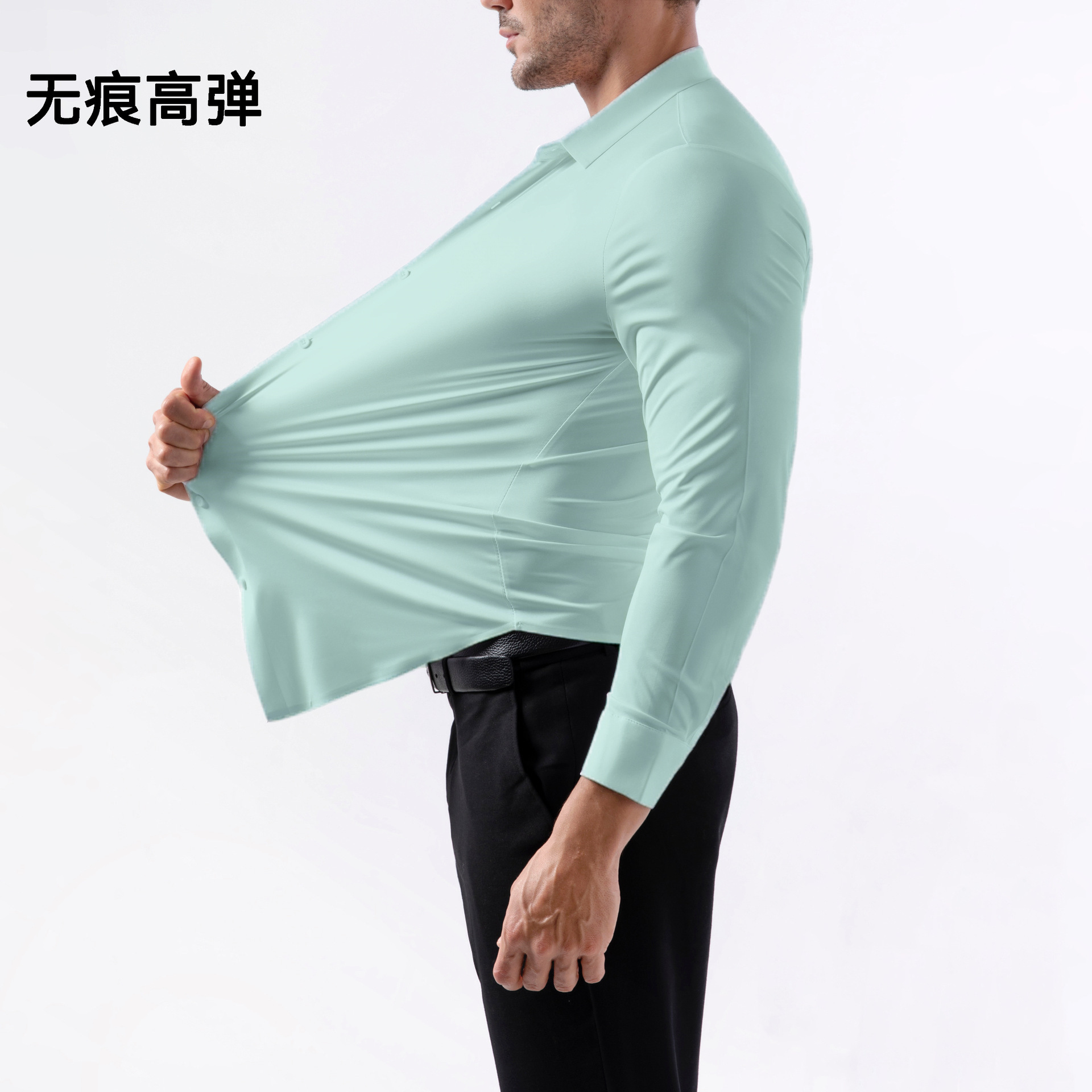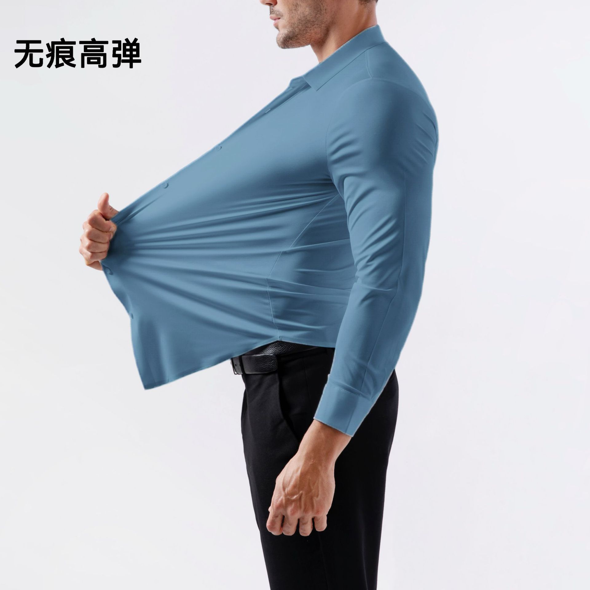 [무봉제 고탄력] 크로스보더 셔츠 남성용 다림질 필요 없는 남성 긴팔 비즈니스 캐주얼 단색 남성용 신축성 셔츠