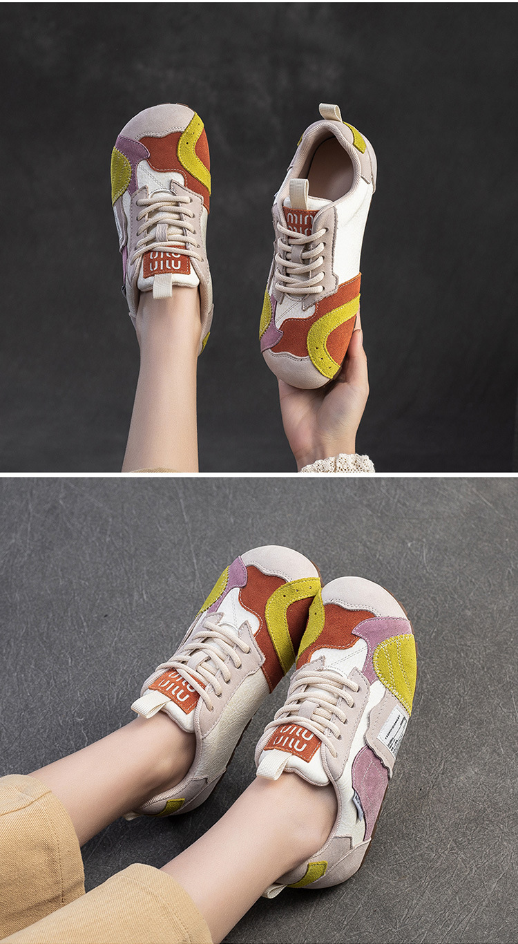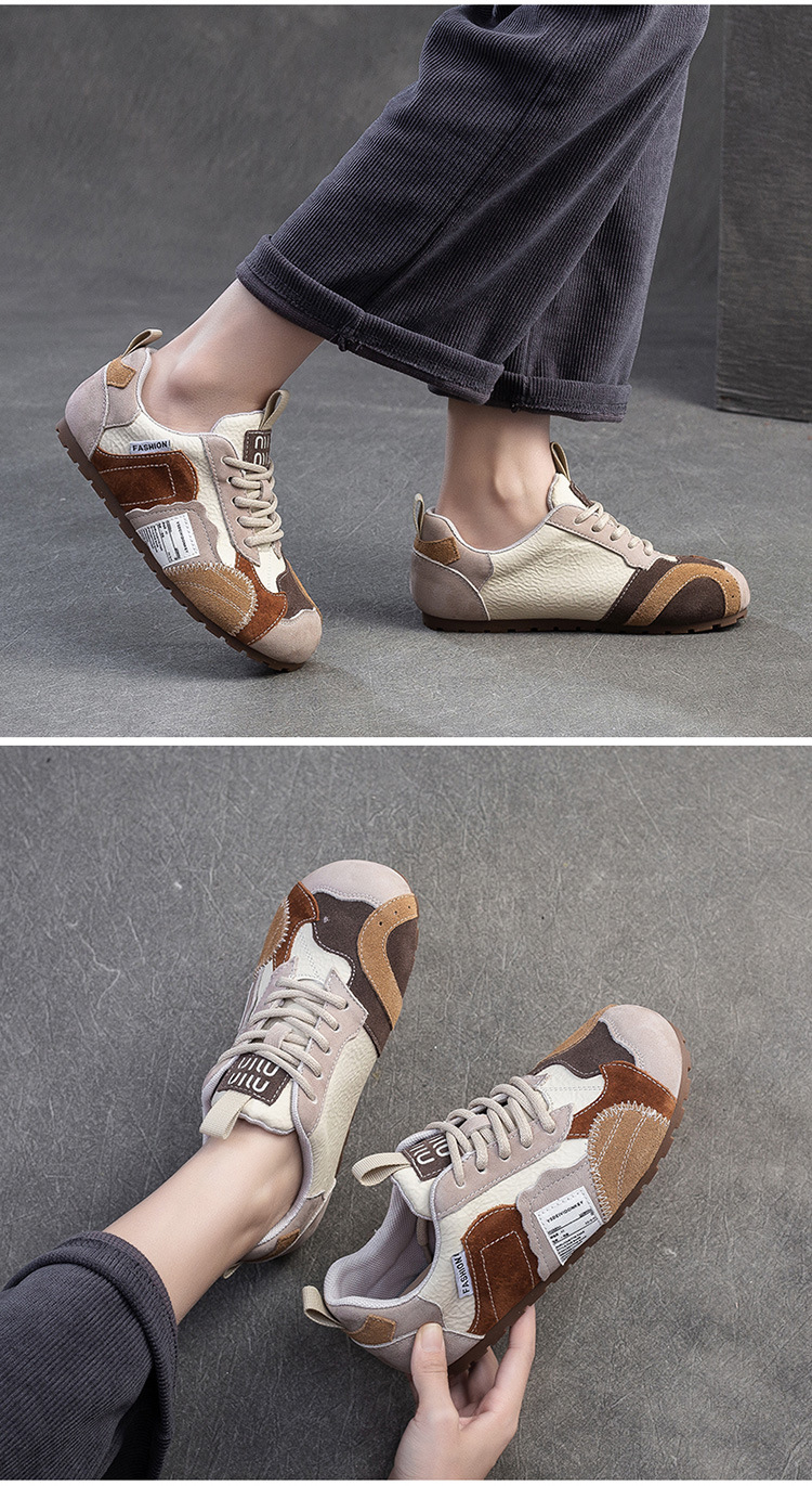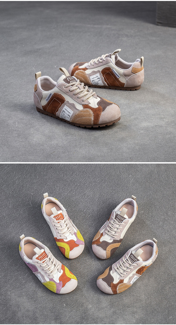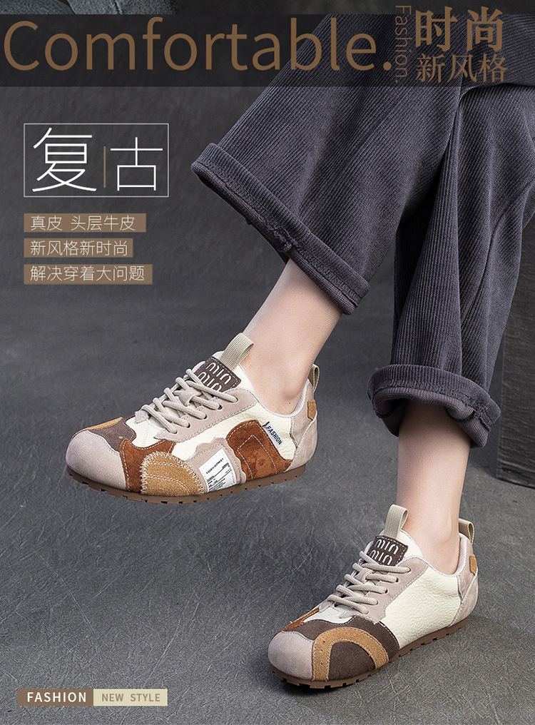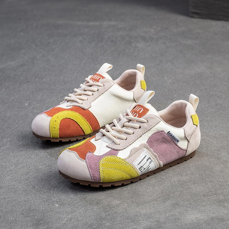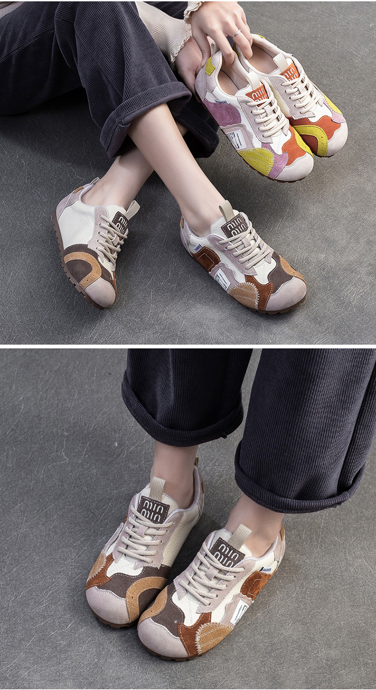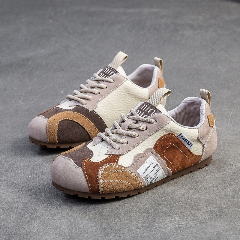 상하이 Jiejie 2025 봄 새로운 틈새 대비 패치 신발 캐주얼 편안한 싱글 레이어 신발 경량 레트로 여성용 신발