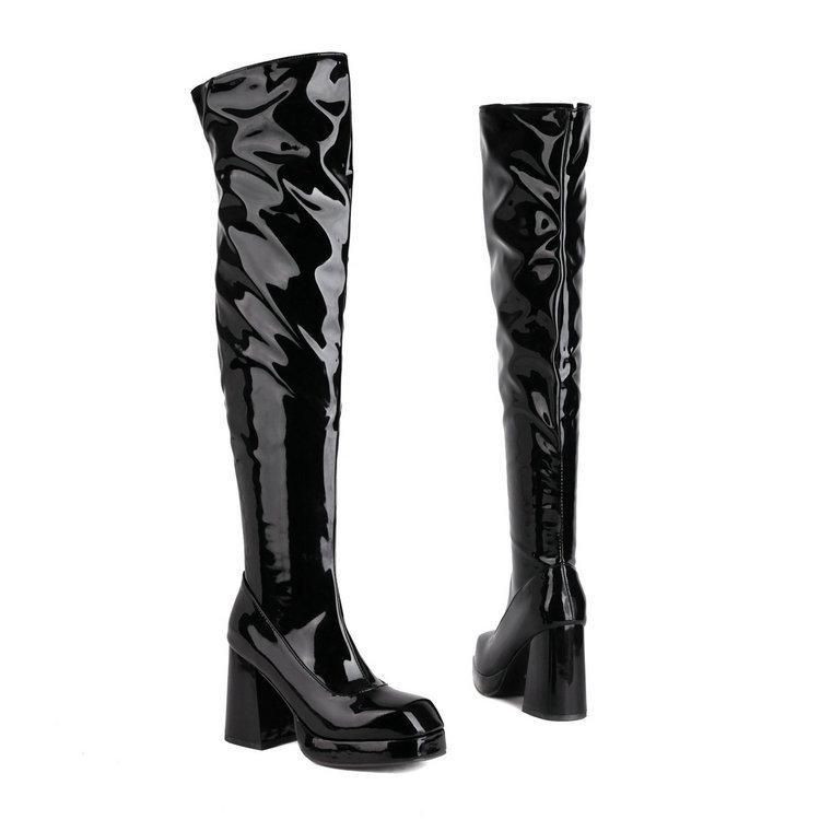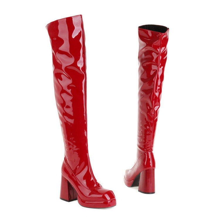 롱 부츠 가을과 겨울 새로운 오버 더 무릎 롱 부츠 여성 슈퍼 하이힐 방수 테이블 레드 나이트 샵 사이드 지퍼 라이더 부츠 여성용 부츠