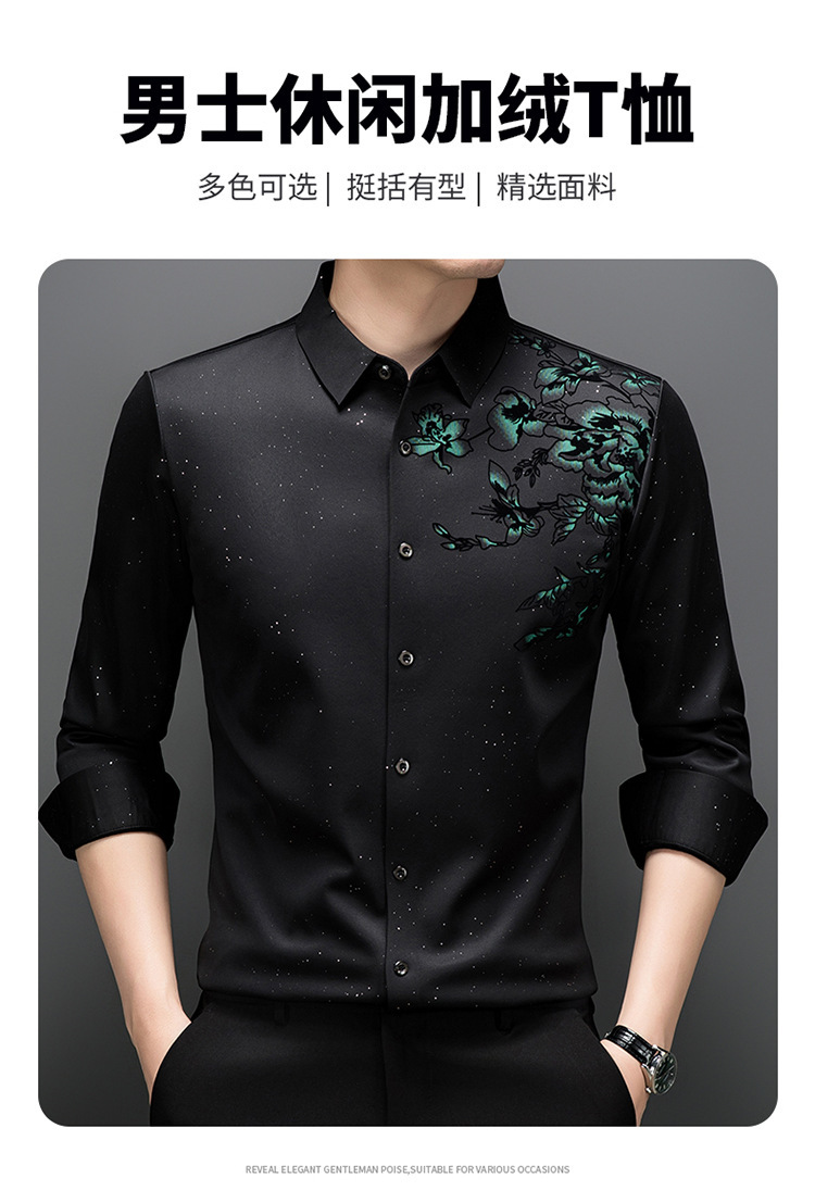 기모 두꺼운 스트레치 긴 소매 셔츠 남자 가을 겨울 올 매치 패션베이스 셔츠