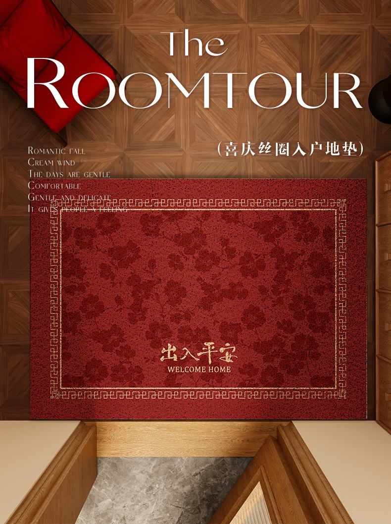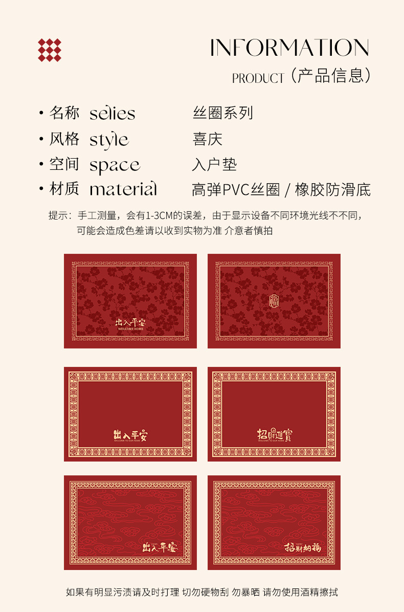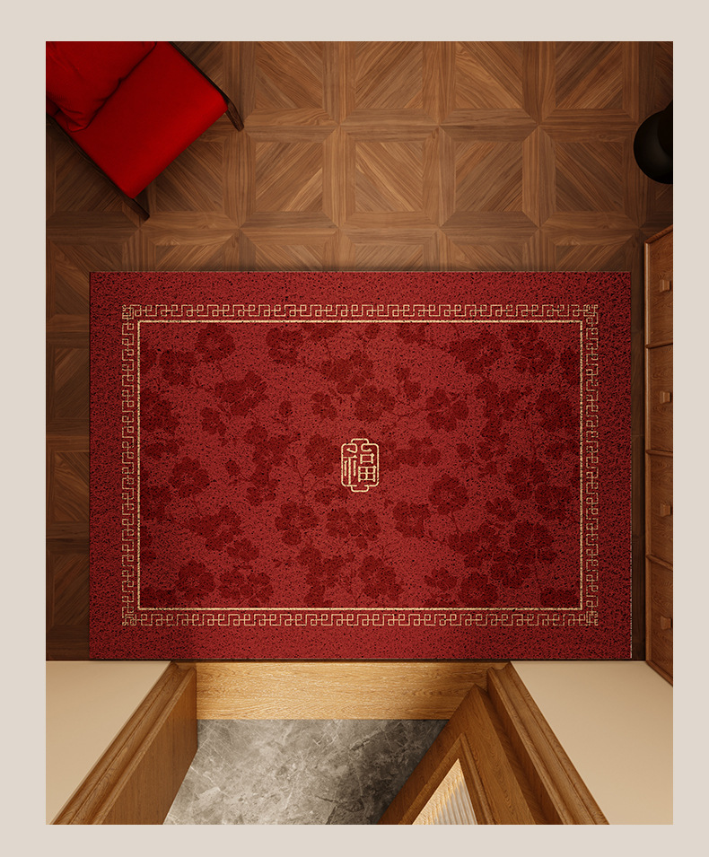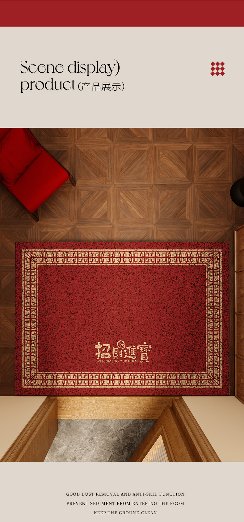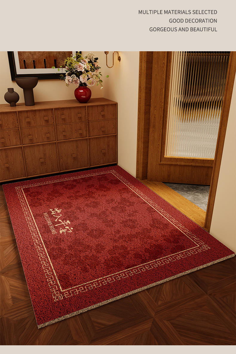 새로운 빨간 축제 신년 실크 링 입구 매트 홈 입구 매트 홈 입구 매트 비 슬립 먼지 방지 마모 방지 입구 매트