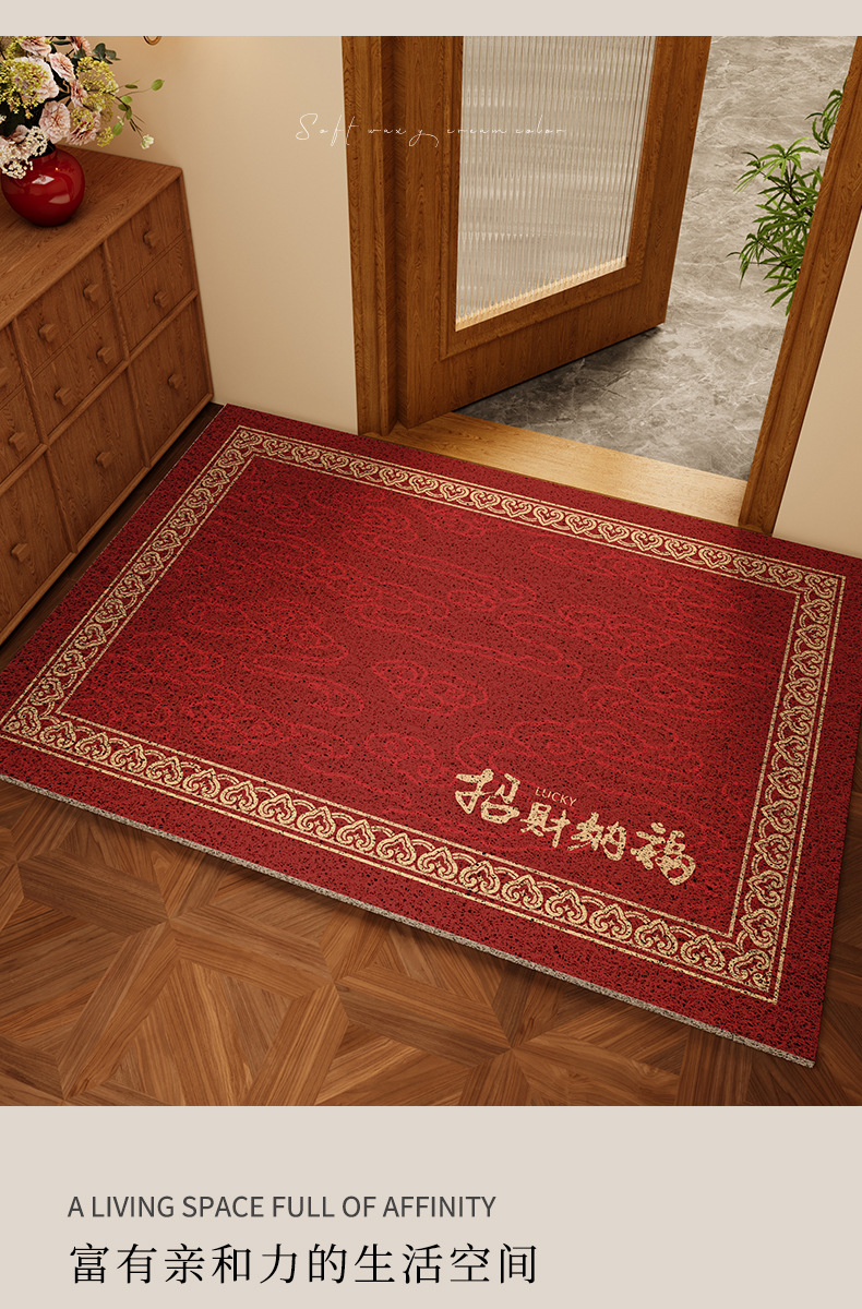 새로운 빨간 축제 신년 실크 링 입구 매트 홈 입구 매트 홈 입구 매트 비 슬립 먼지 방지 마모 방지 입구 매트스토어 가기