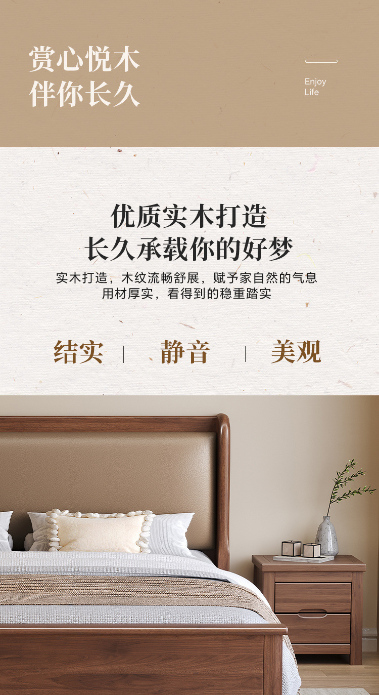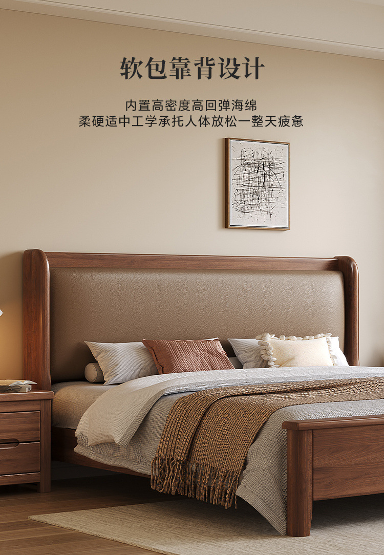 • 월넛 침대 + 캐비닛 2개 + 아이스 실크 독립 스프링 겸용 매트리스