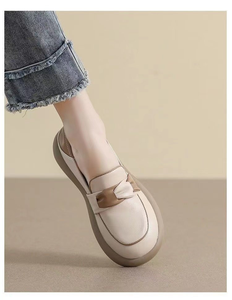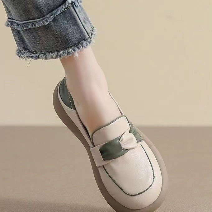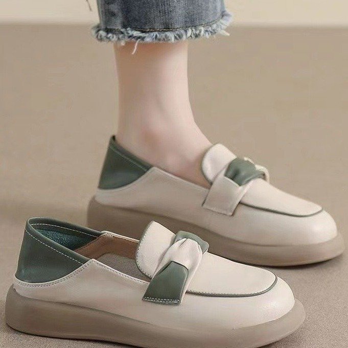 임산부 캐주얼 가죽 신발 여성 2025 년 봄 새로운 올 매치 사이버 축하 소프트 솔리 슬립 온 완두콩 신발 플랫 싱글 레이어 신발스토어 가기