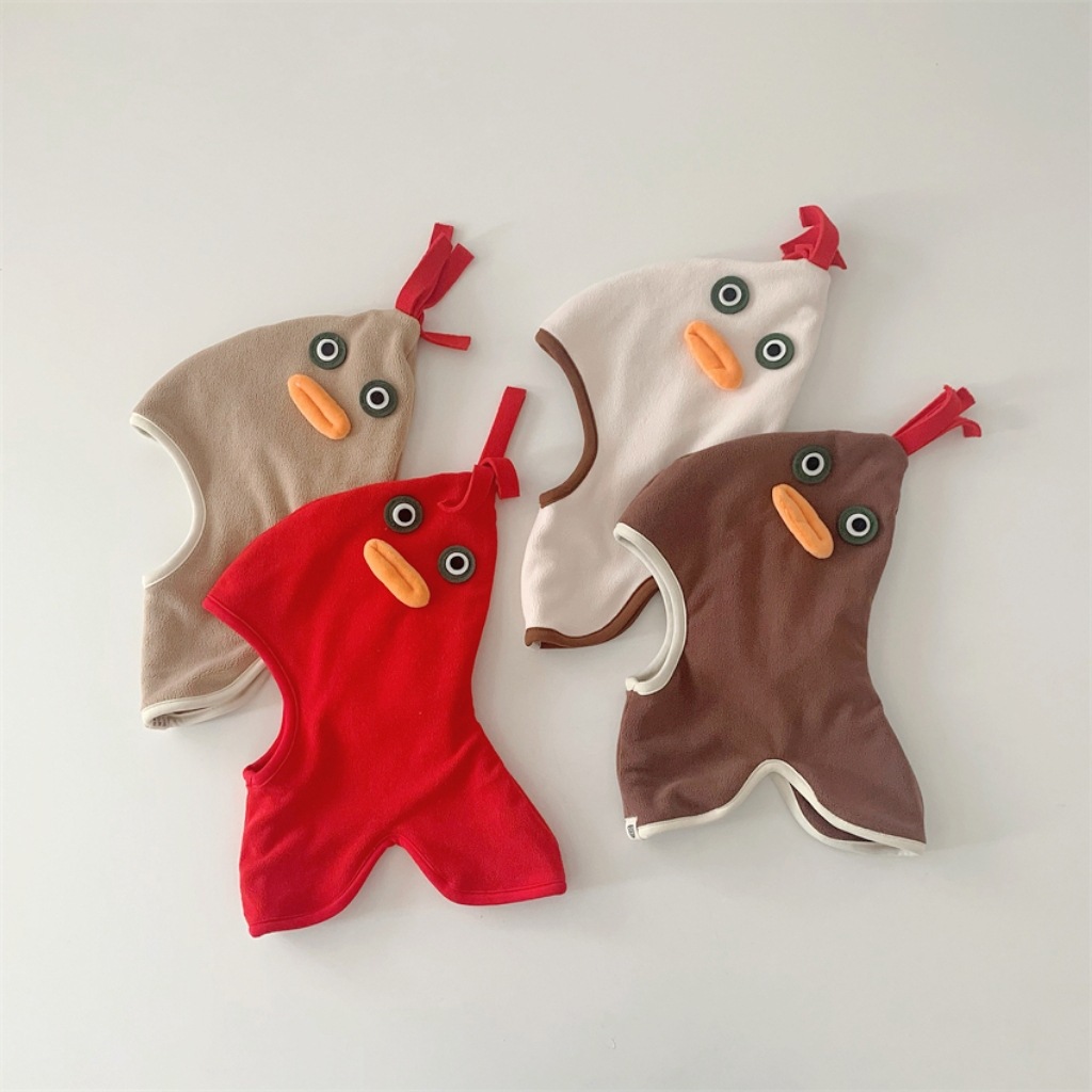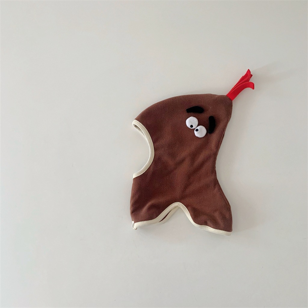 • 커피 컬러 - 스카프 일체형 수탉 모자