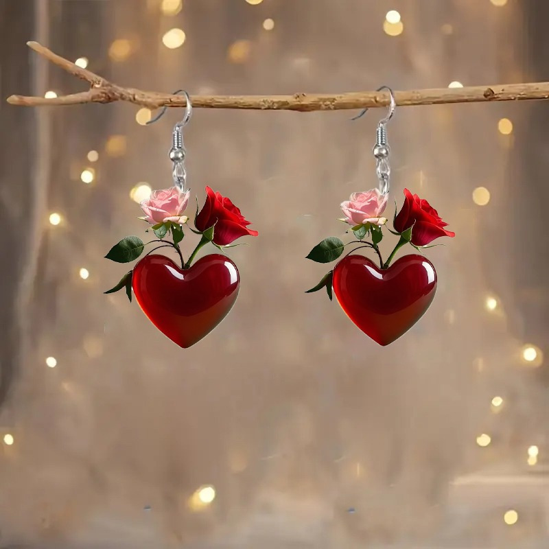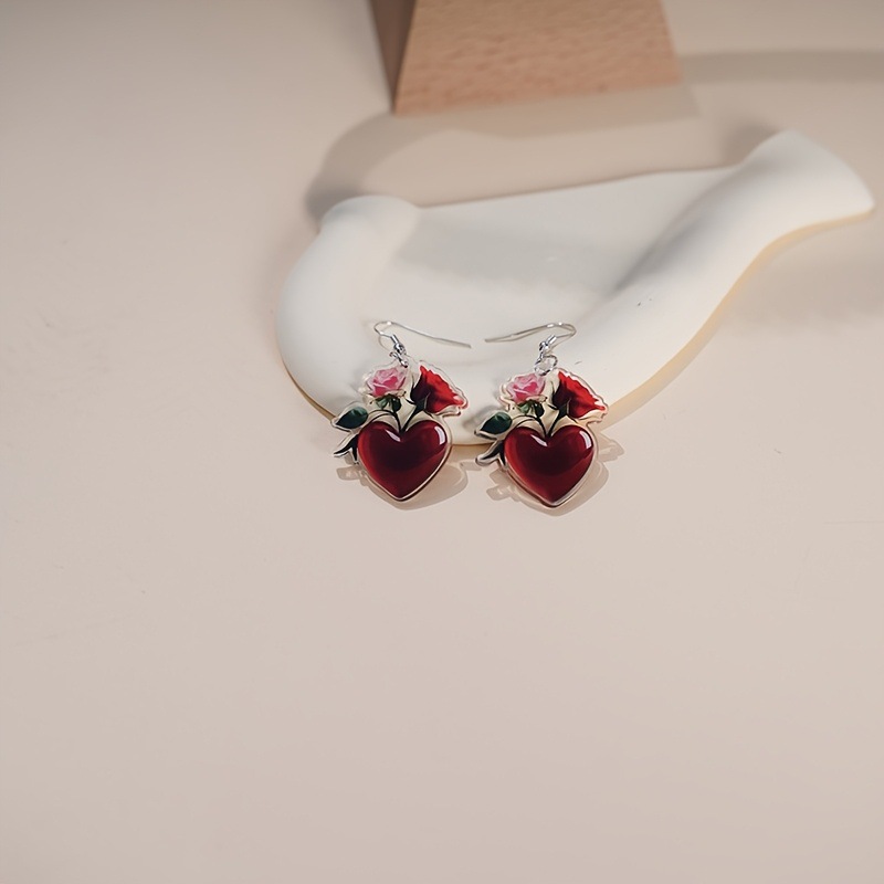 우아한 발렌타인 하트 귀걸이, 달콤한 레드 로즈 아크릴 귀걸이, 여성 휴일 파이스토어 가기