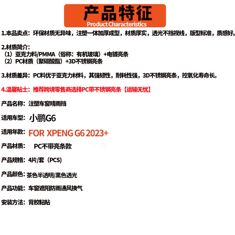 • Xiaopeng G6 비가 오나 눈이 오나 눈이 오나 XPENG G6 PC 밝은 스트립 없음 2023+