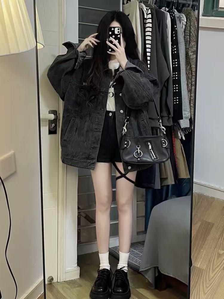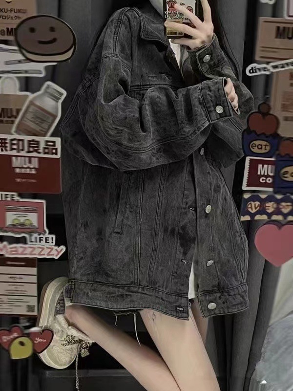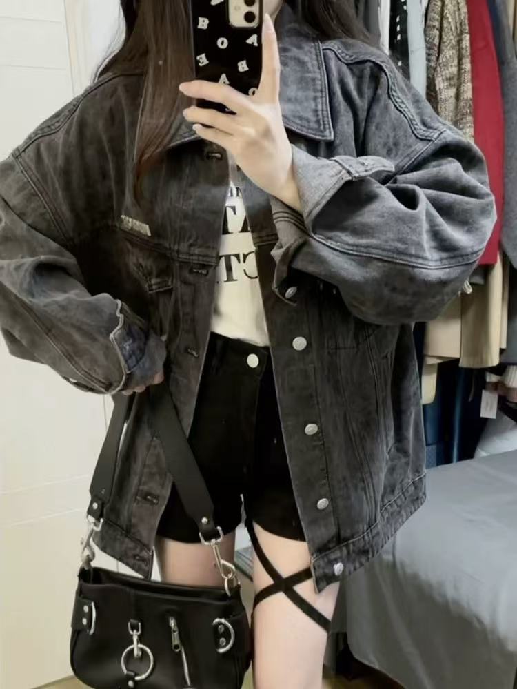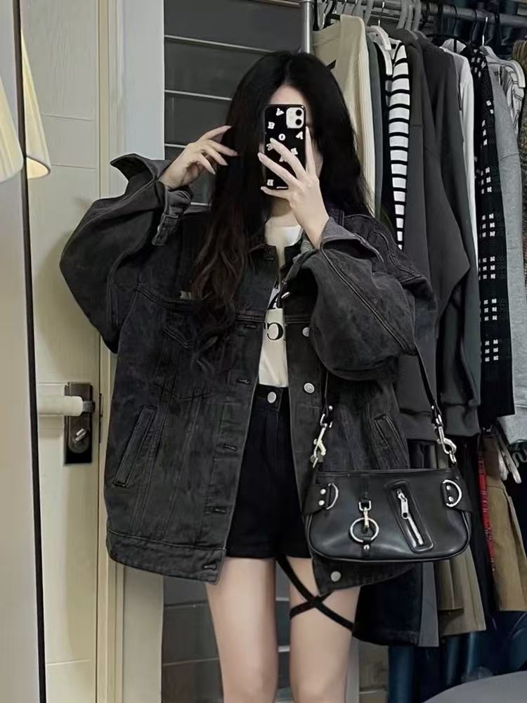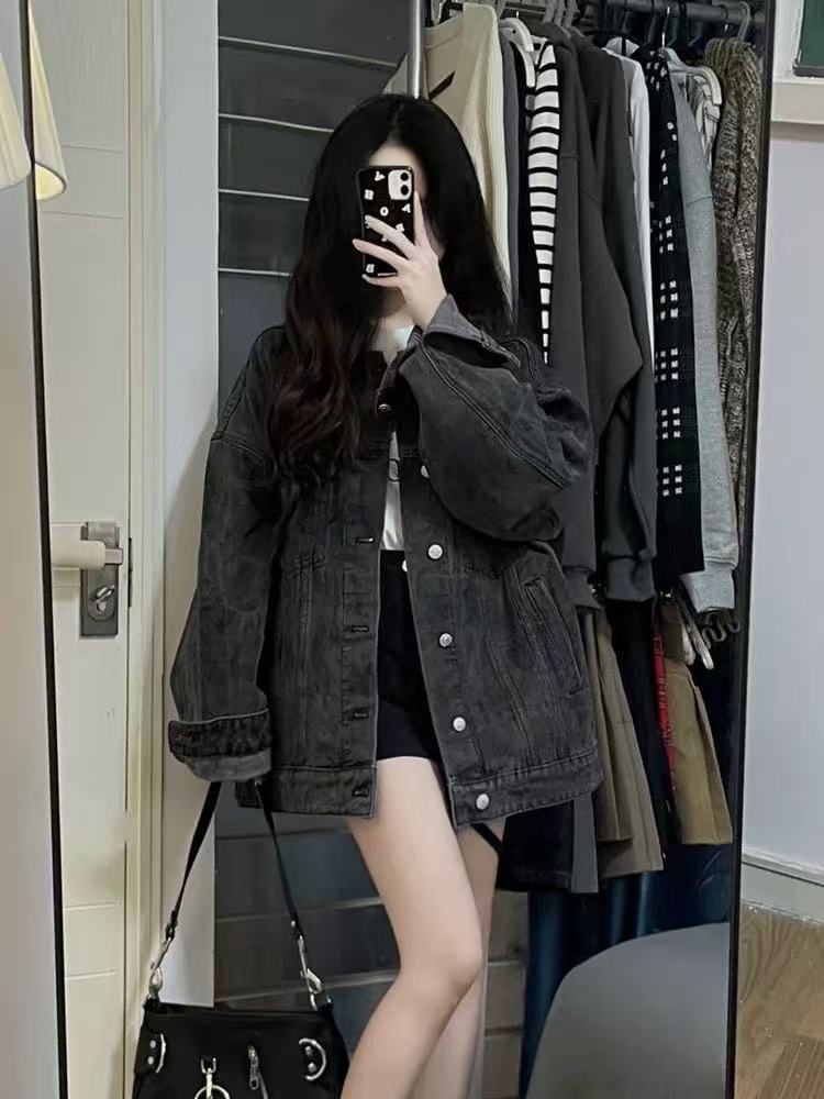 한국 스타일 레트로 패션 데님 코트 여성 느슨한 BF 게으른 스타일 2025 봄 작은 캐주얼 재킷 탑스토어 가기
