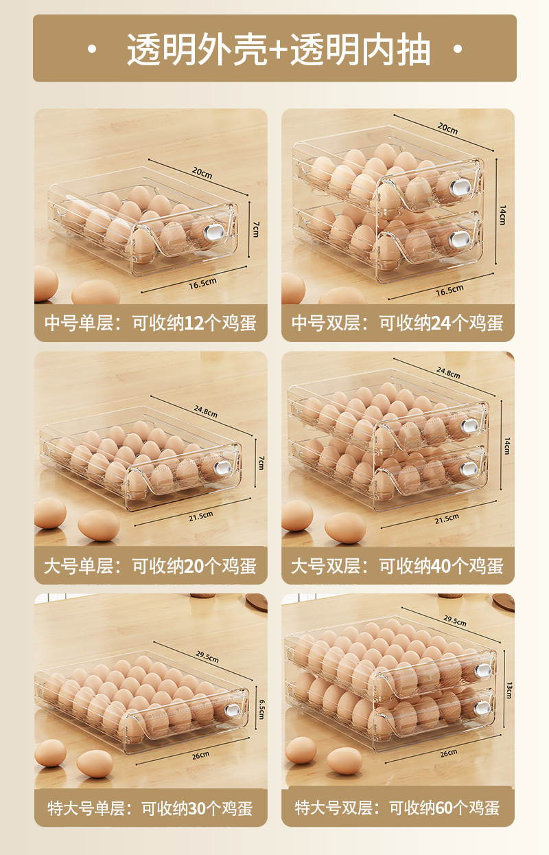 계란 보관 상자 냉장고 특수 보존 상자 주방 계란 상자 투명 다중 사양 이중 서랍 형 계란 상자