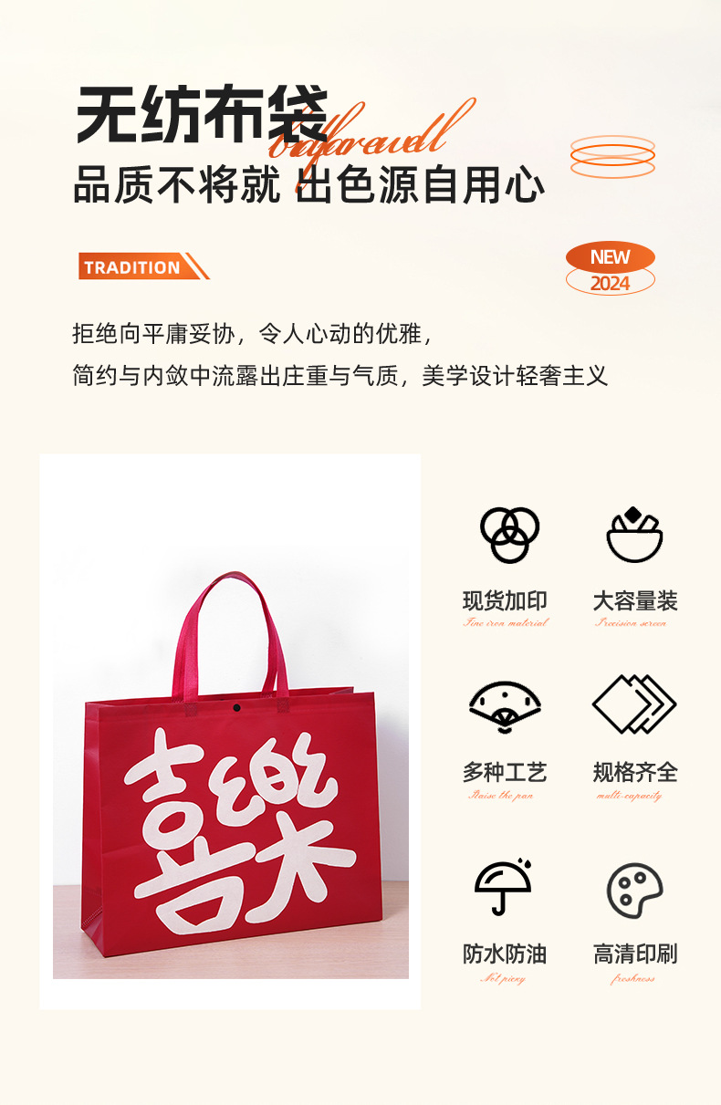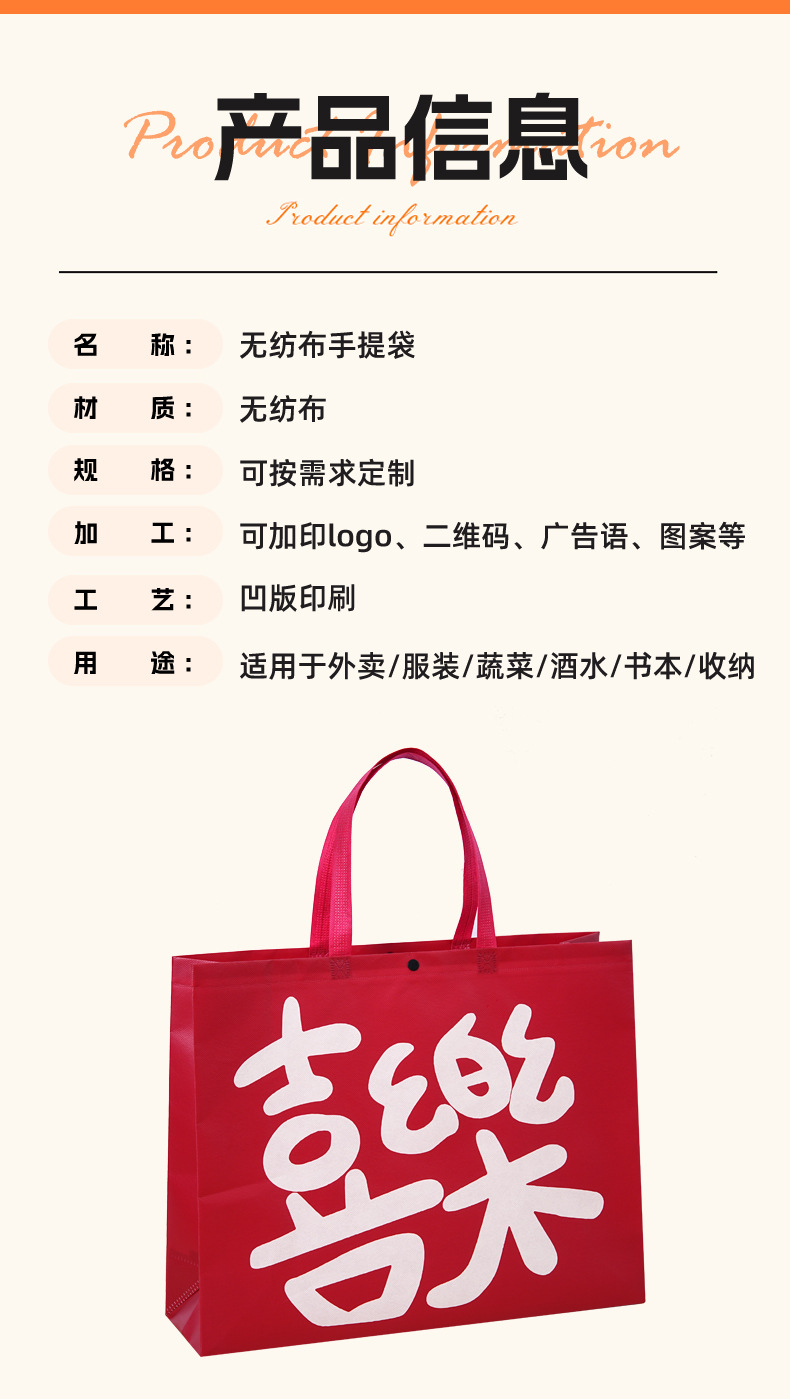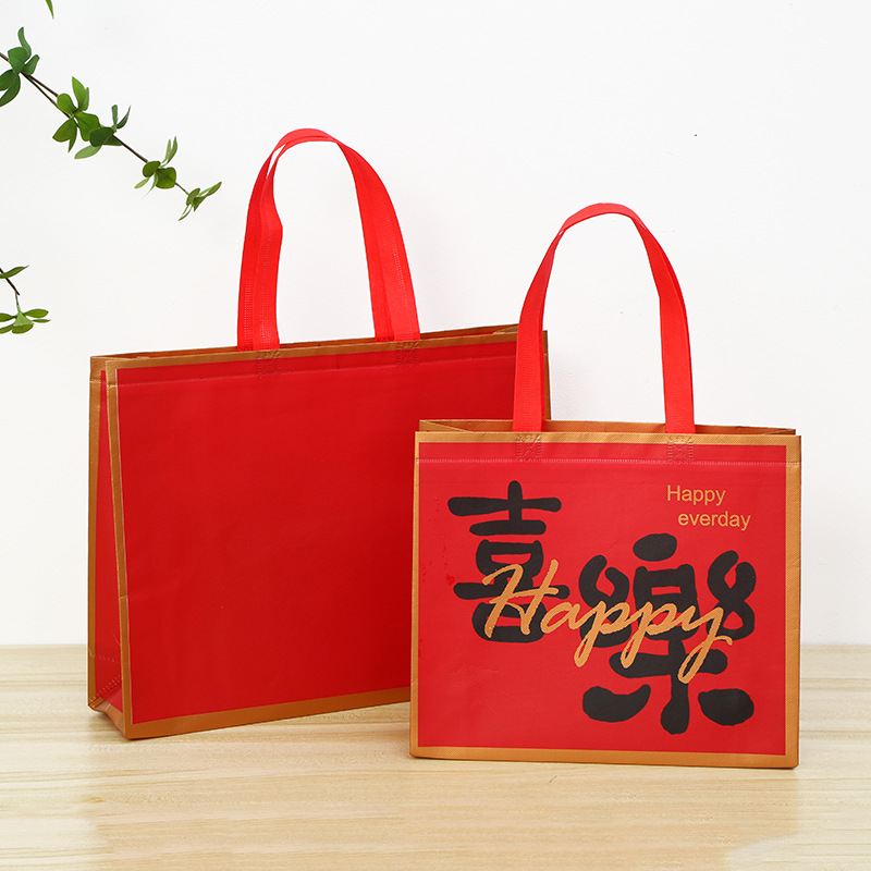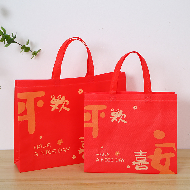 새해 해피 부직포 선물 가방 봄 축제 두꺼운 슈퍼 가방 레드 축제 쇼핑백 맞춤형
