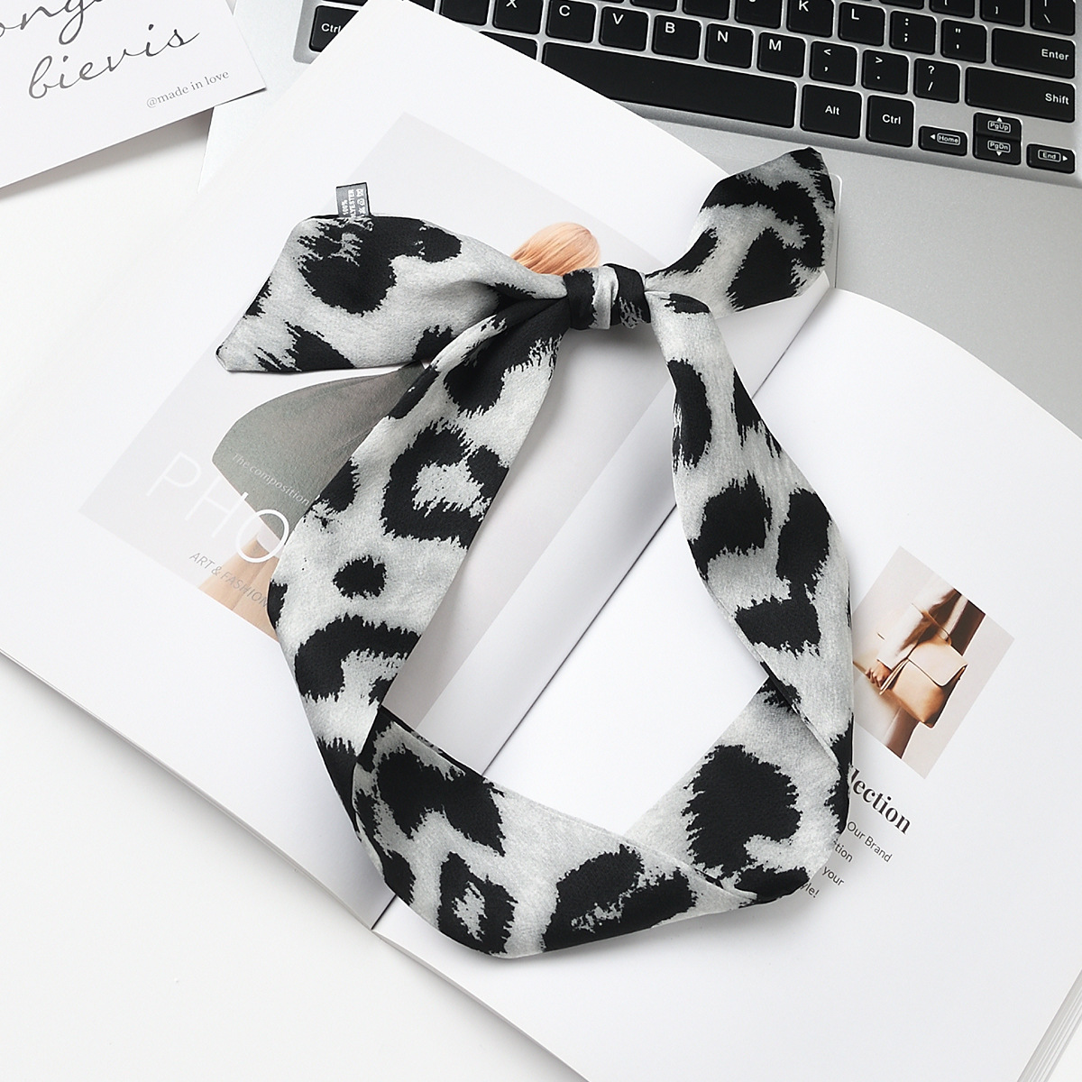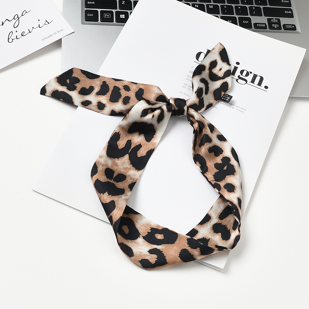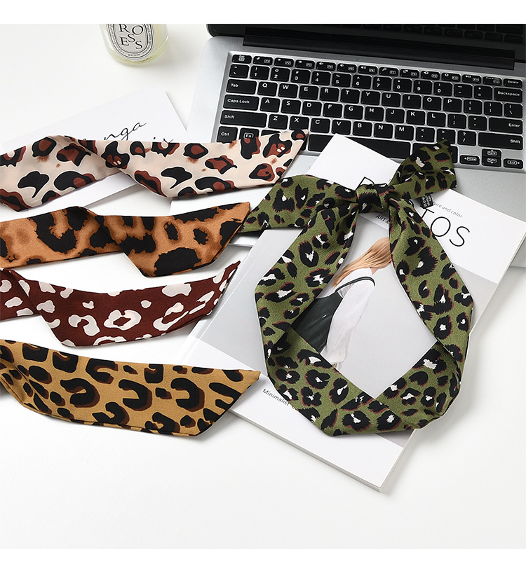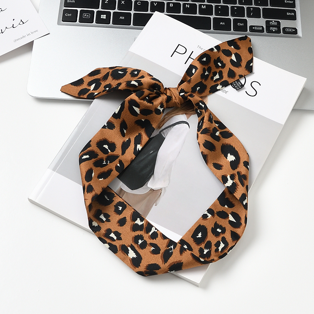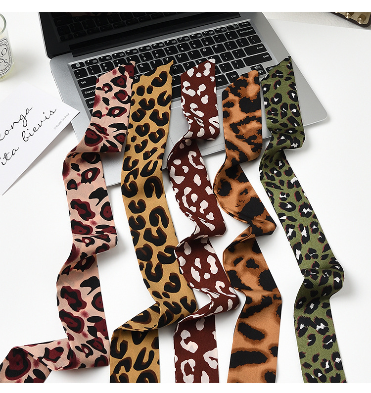 레오파드 무늬 작은 실크 스카프 여성의 봄과 가을 여름 넥타이 가방 손잡이 리본 작은 손목 좁은 리본 새로운 스타일