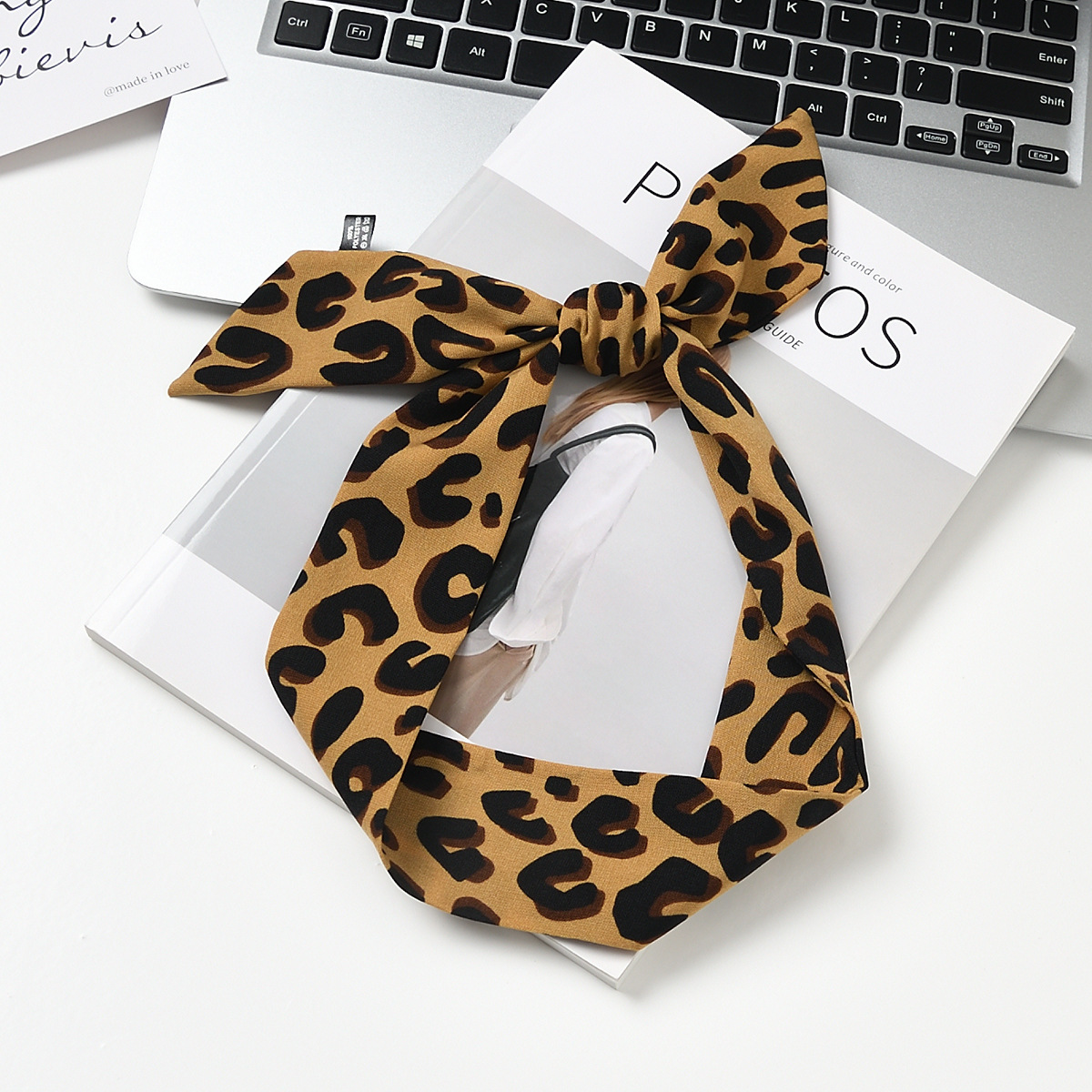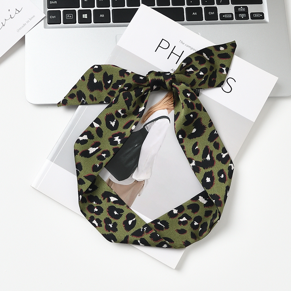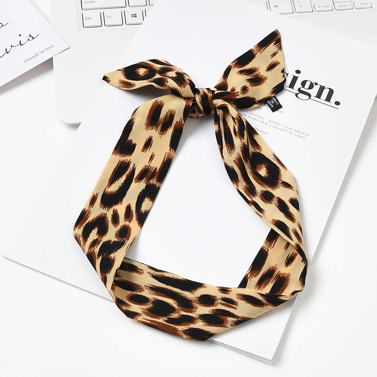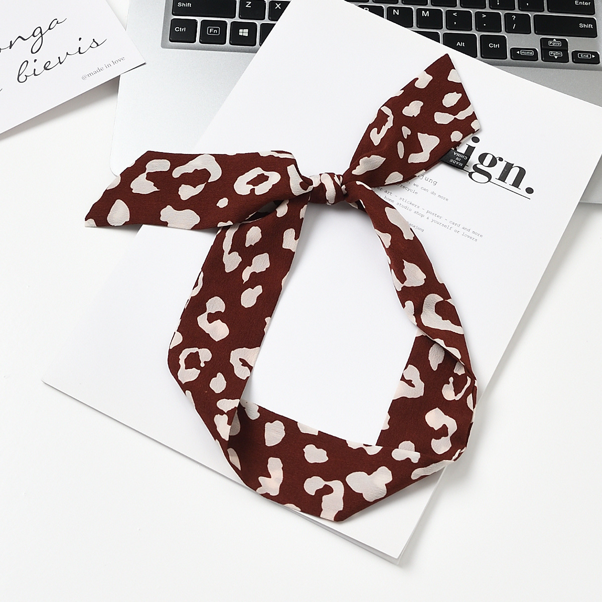 레오파드 무늬 작은 실크 스카프 여성의 봄과 가을 여름 넥타이 가방 손잡이 리본 작은 손목 좁은 리본 새로운 스타일