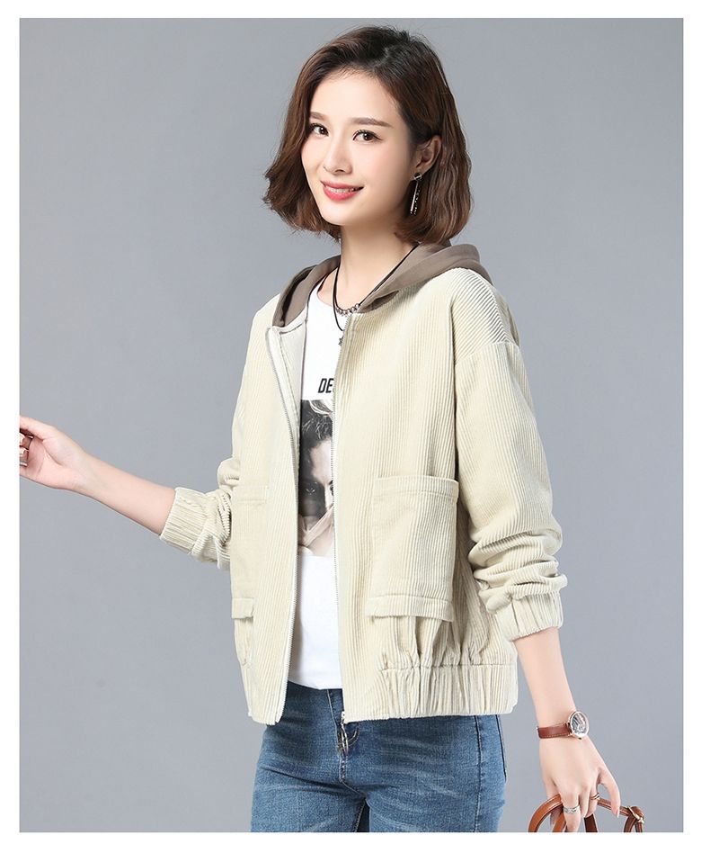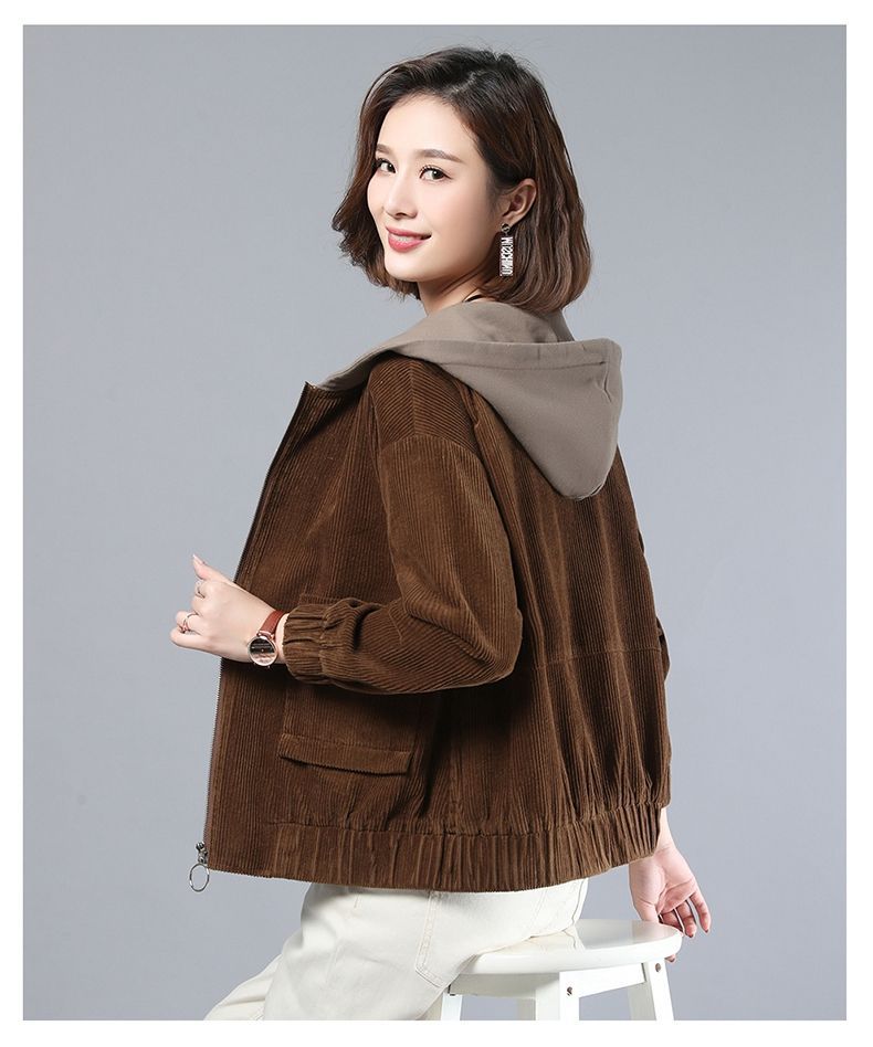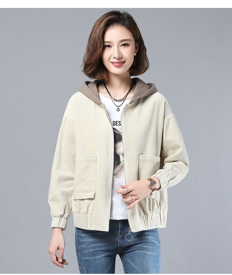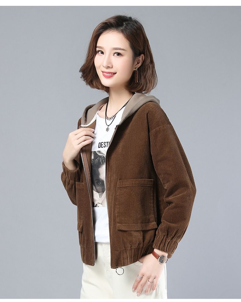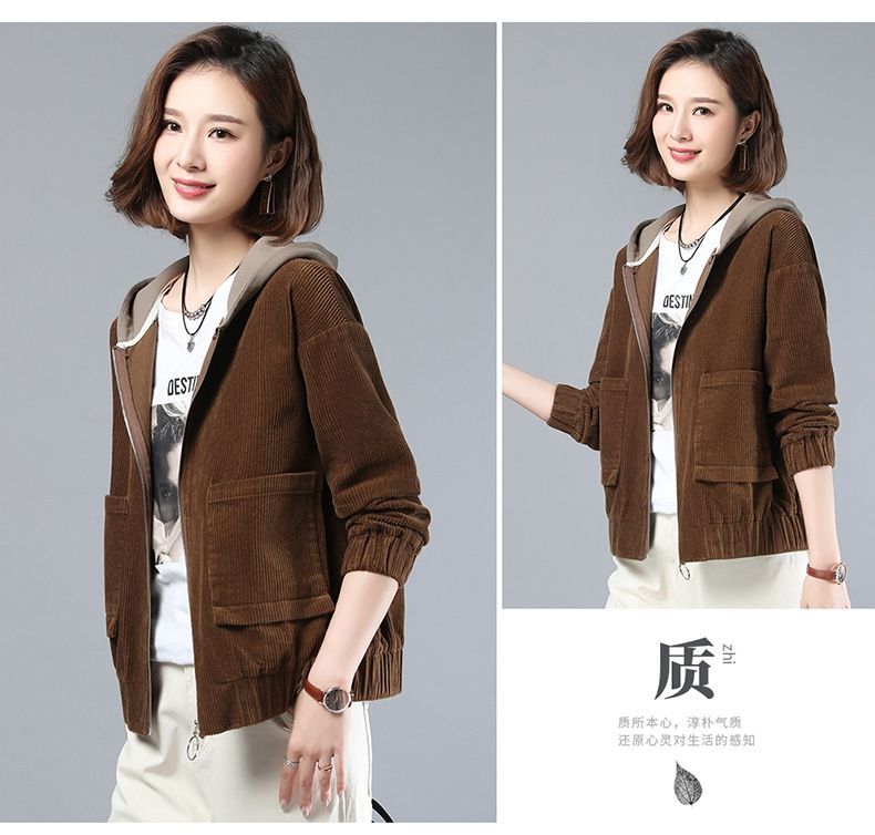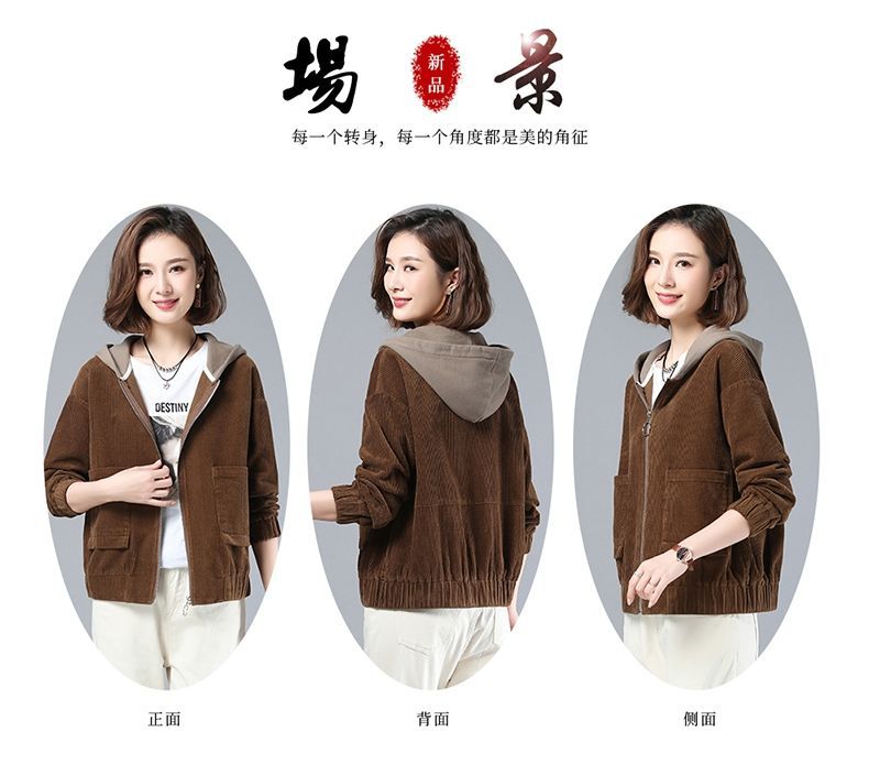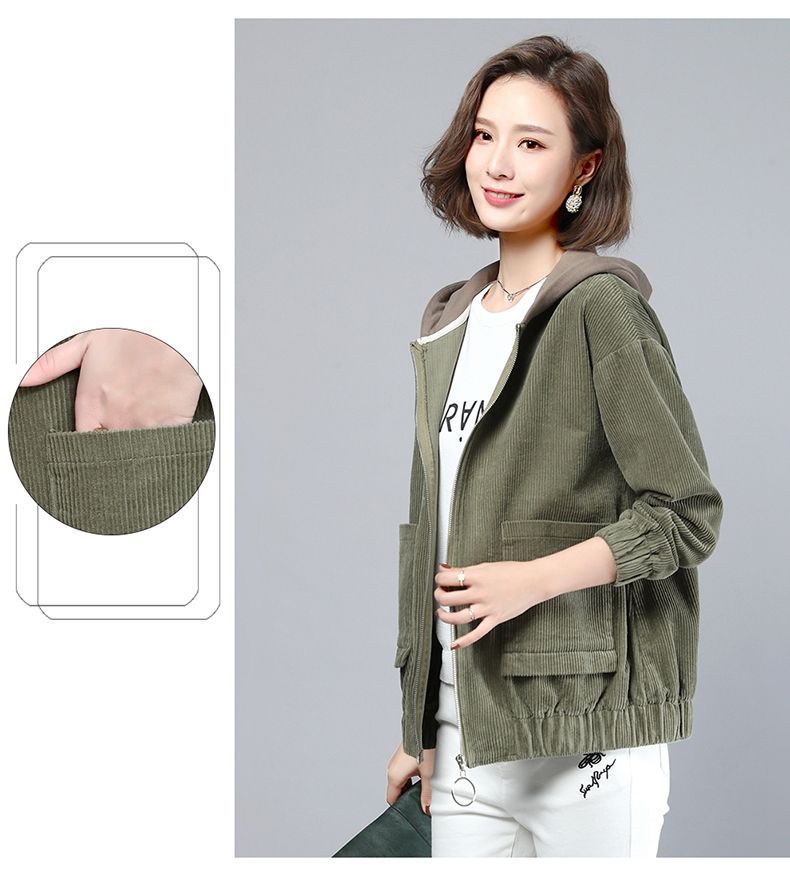 플러스 사이즈 느슨한 코듀로이 포켓 코트 여자 봄 가을과 겨울 새로운 도착 중년 어머니의 후드 올매치 얇은 재킷스토어 가기