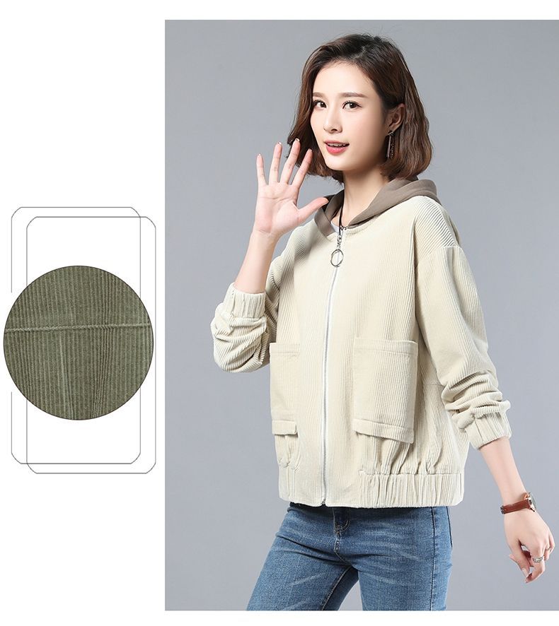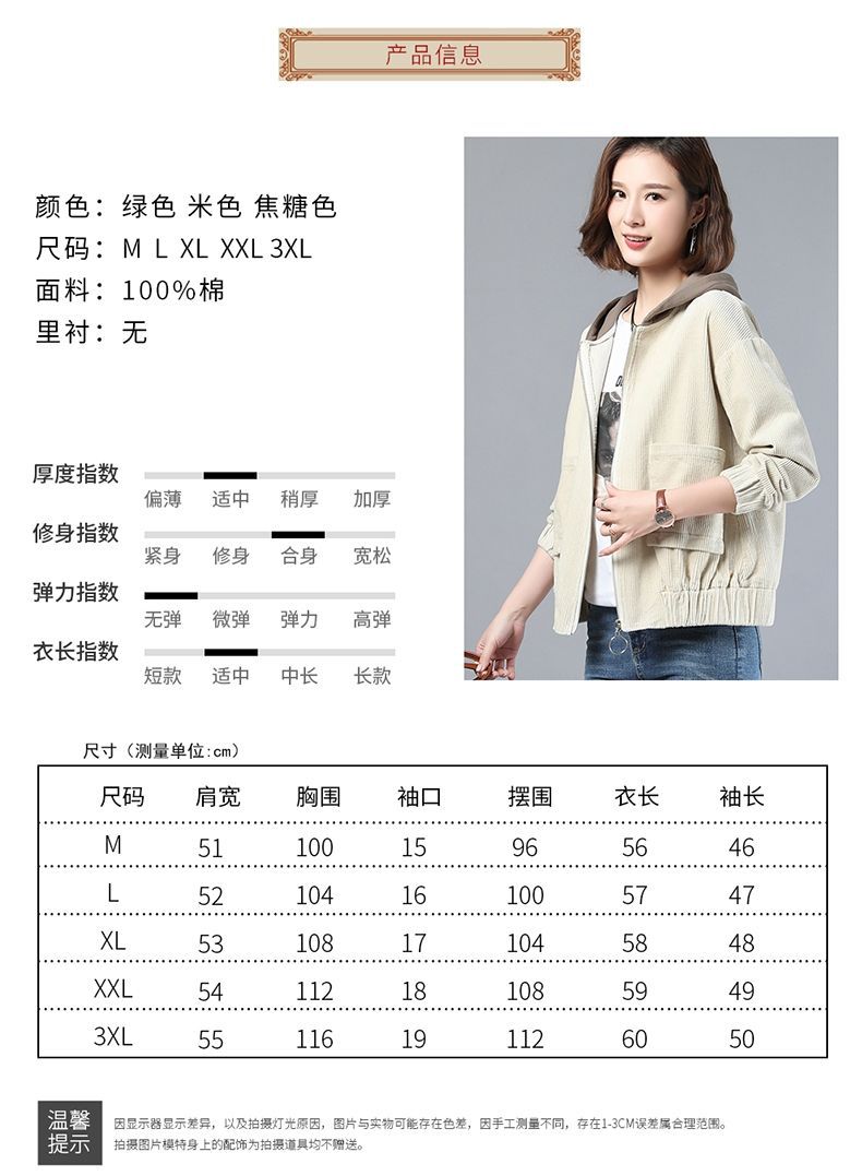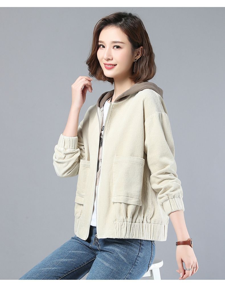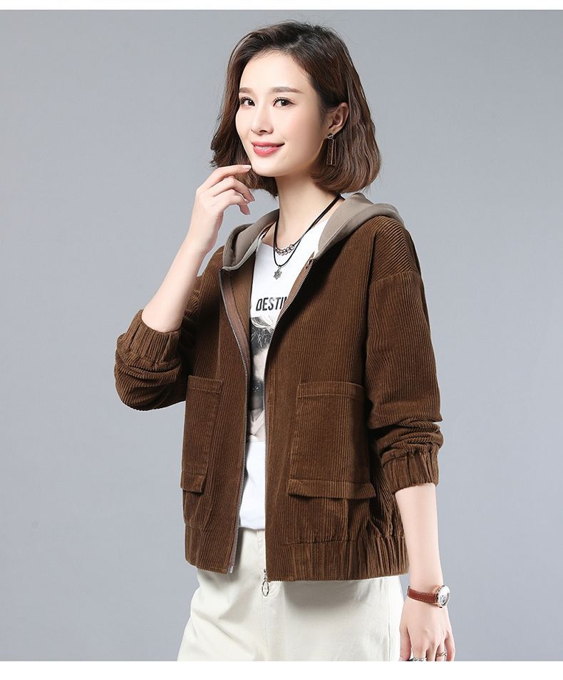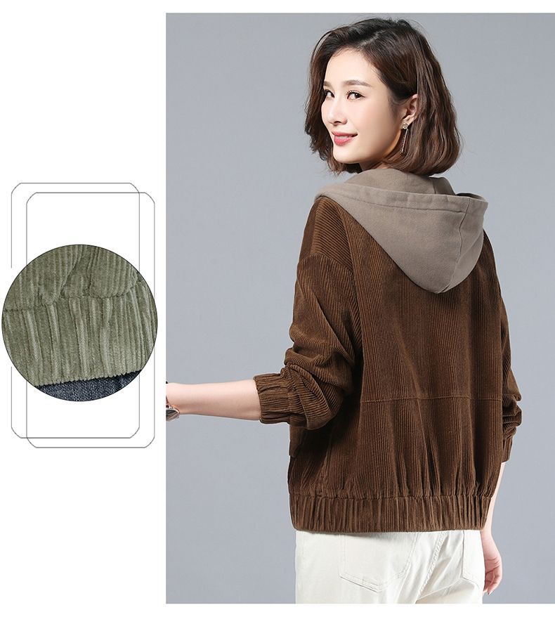 플러스 사이즈 느슨한 코듀로이 포켓 코트 여자 봄 가을과 겨울 새로운 도착 중년 어머니의 후드 올매치 얇은 재킷