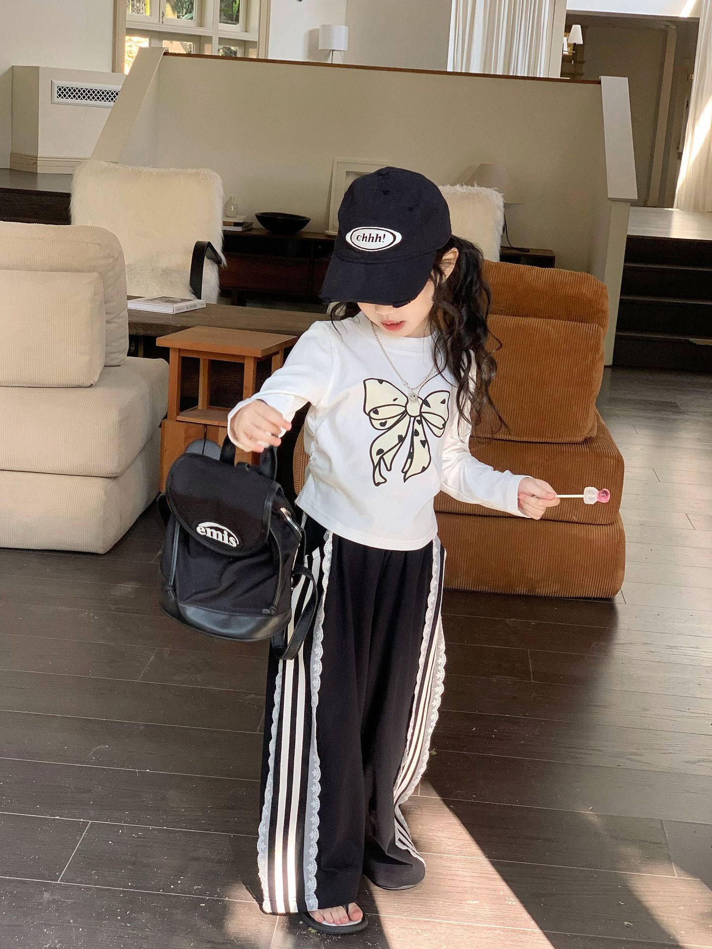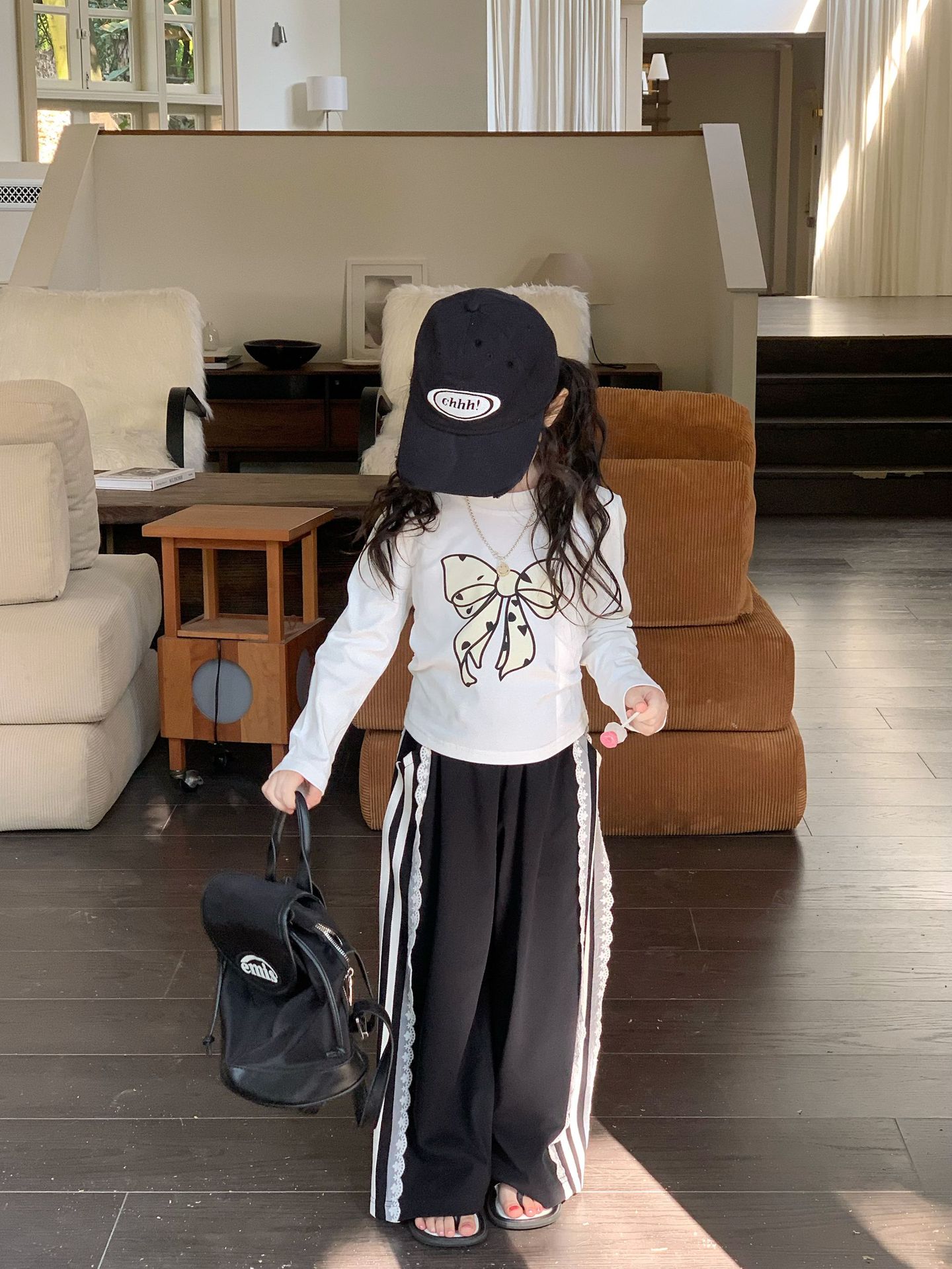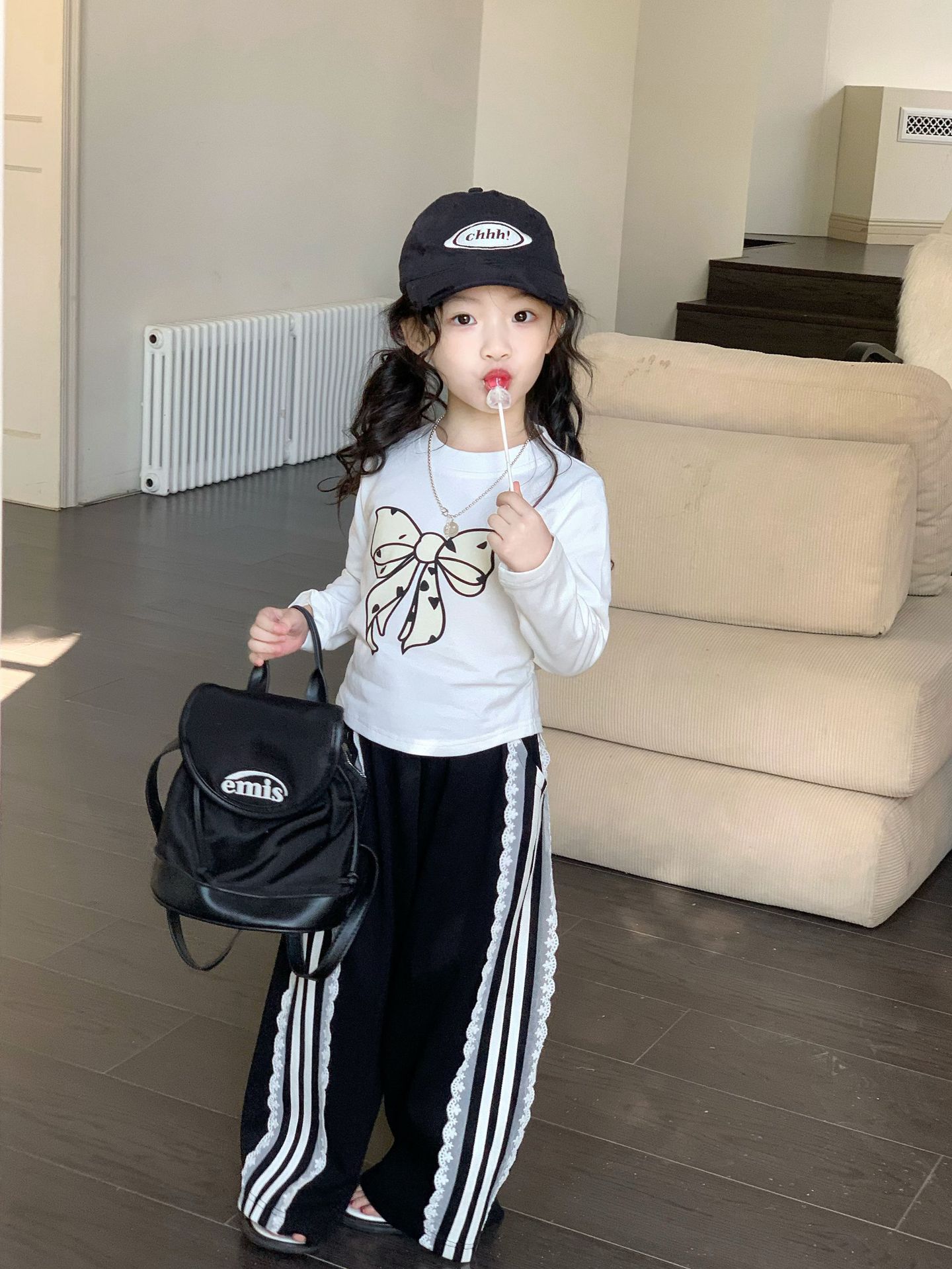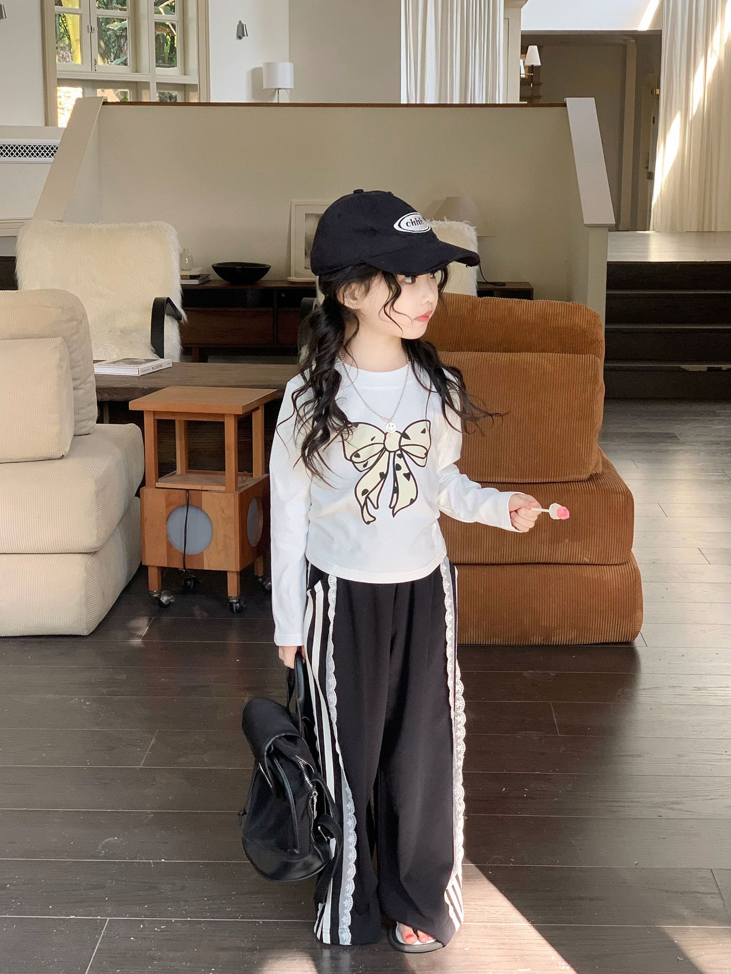반품불가, 원가 62, 여아용 긴팔 티셔츠 한세트, 한국식 서양식 하의 셔츠, 서양식 레이스 와이드 팬츠 세트