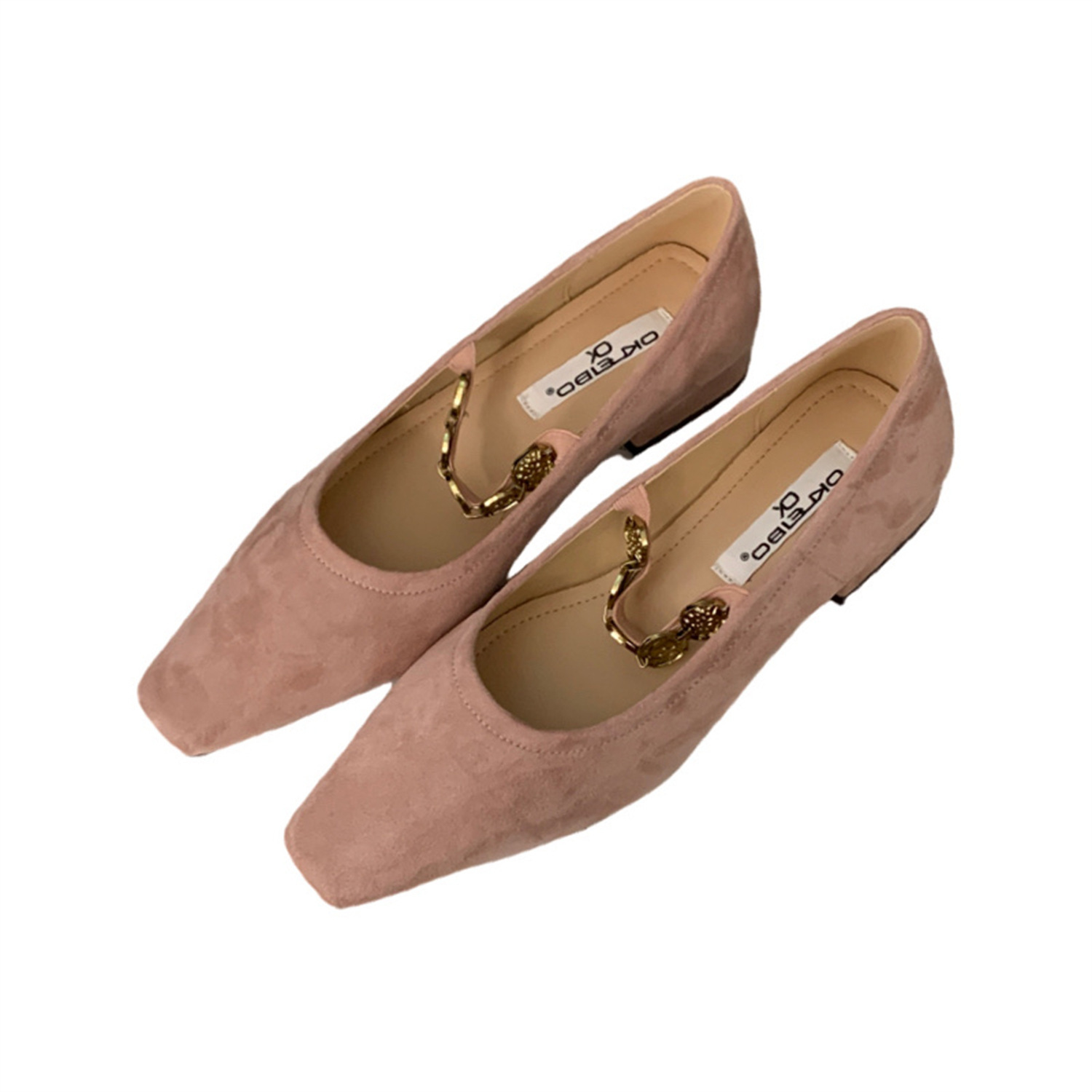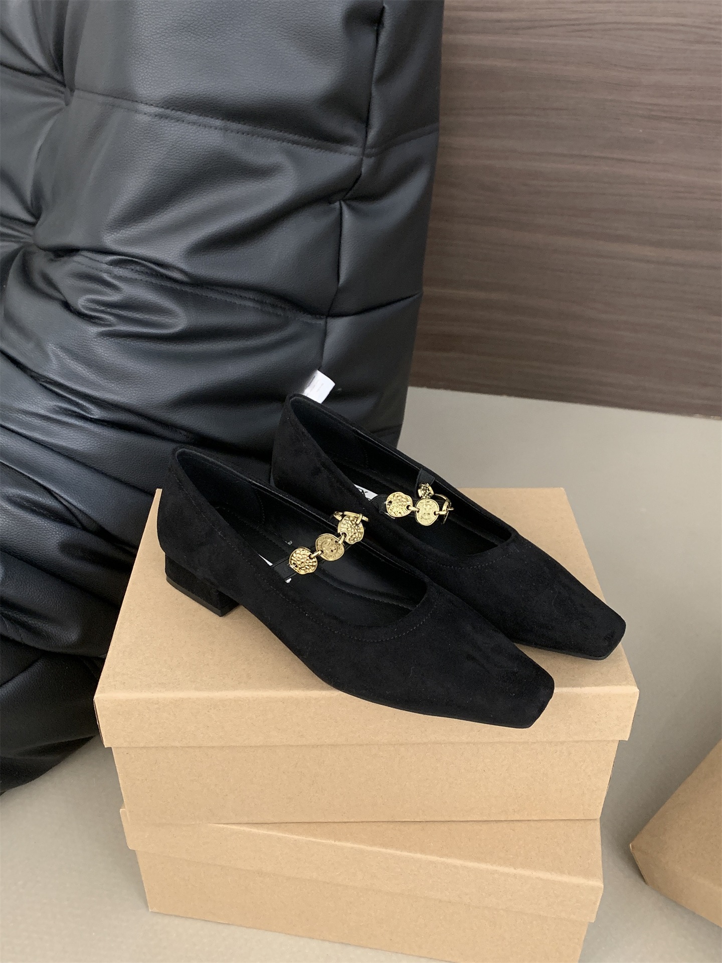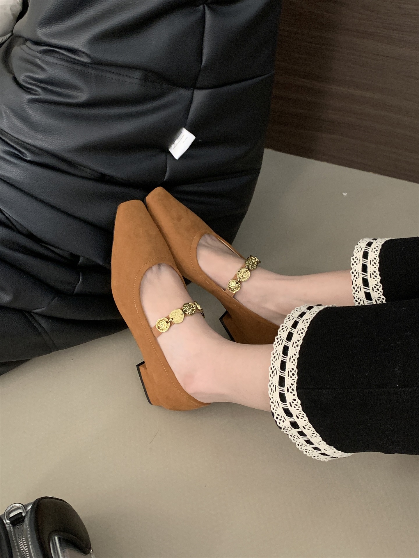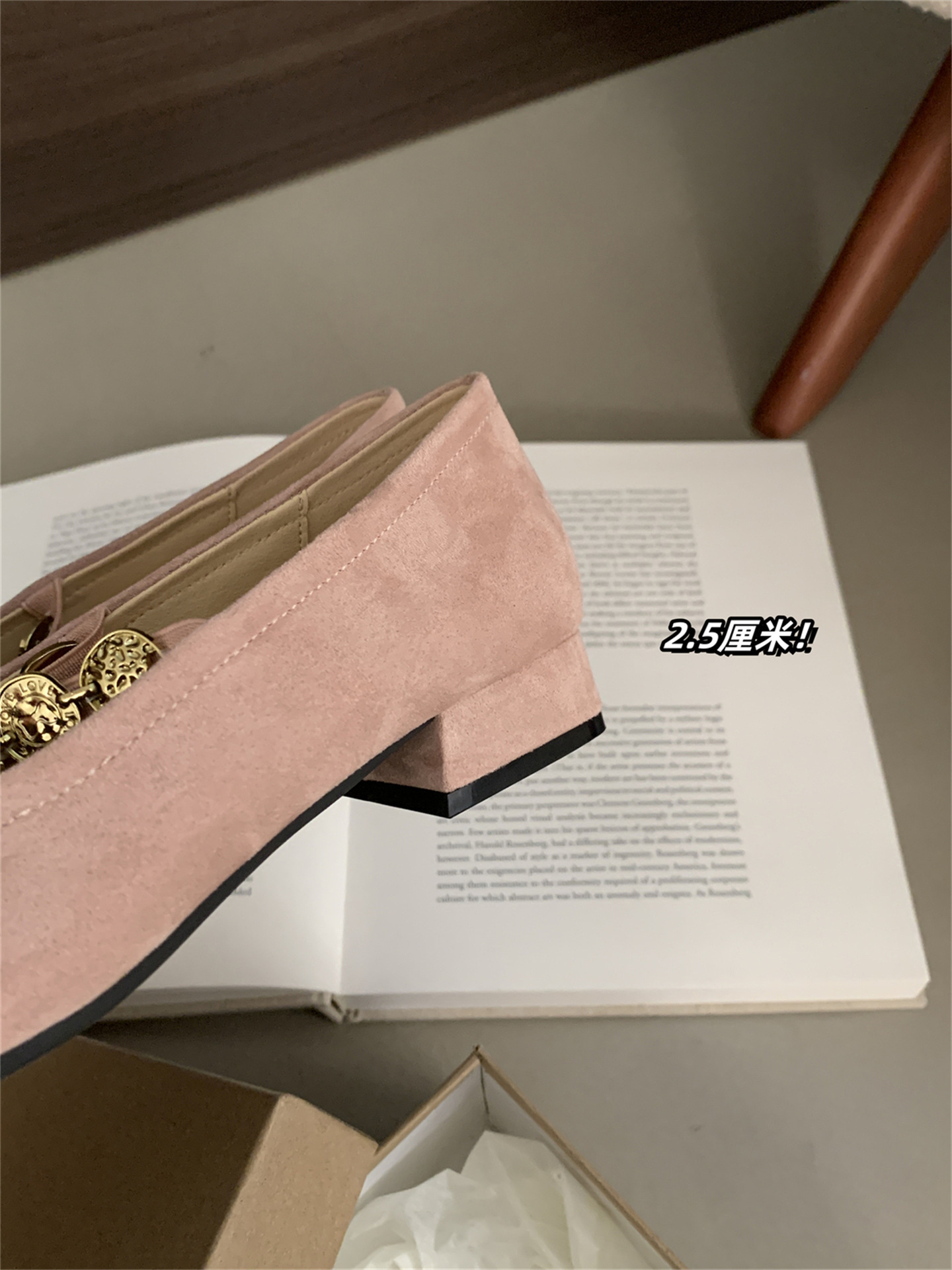 프랑스 스타일 이브닝 스타일 레트로 스퀘어 토 얕은 입 싱글 레이어 신발 여성의 봄과 가을 뉴 스웨이드 우아한 캐주얼 청키 힐 메리 제인 신발스토어 가기
