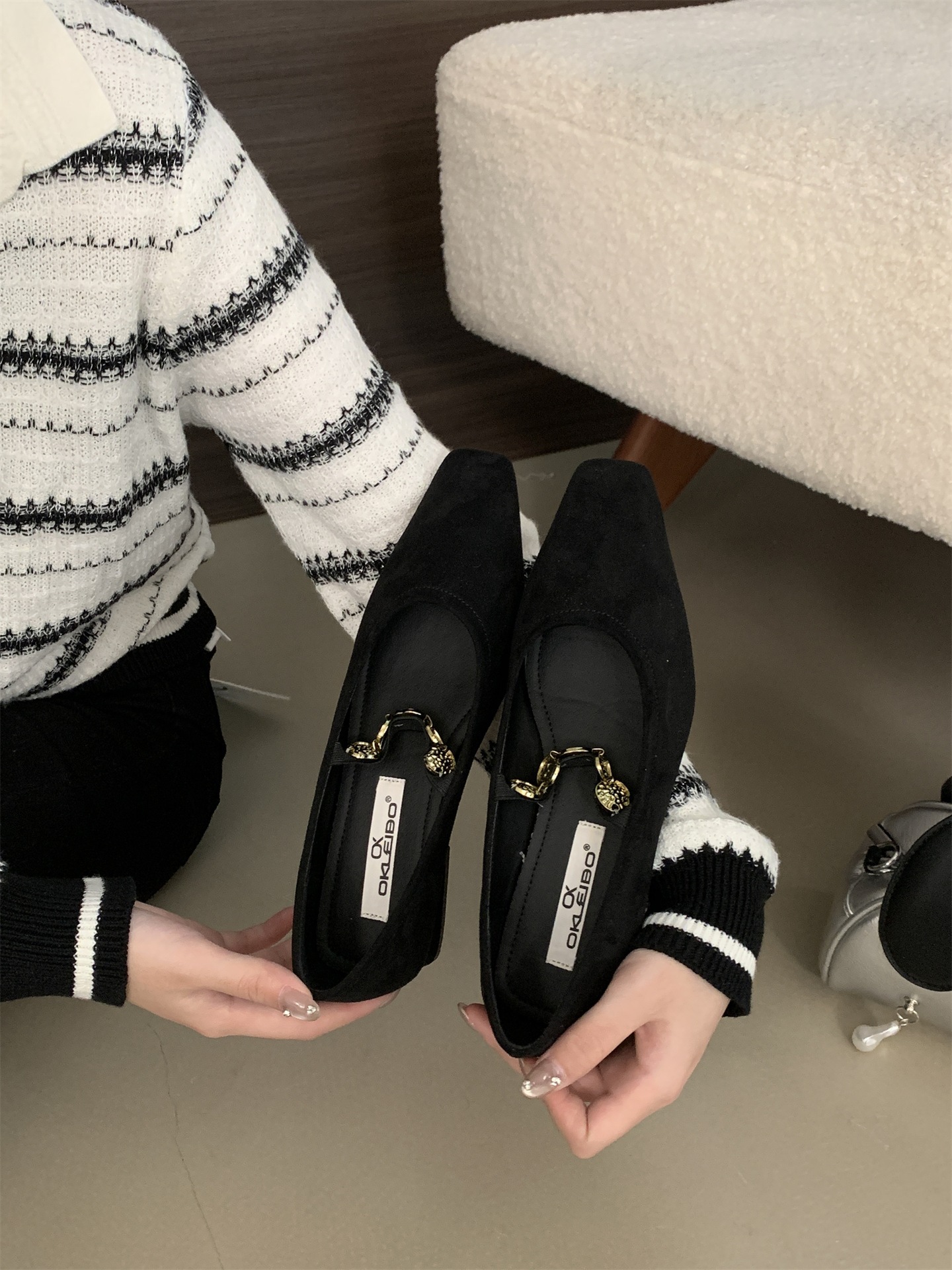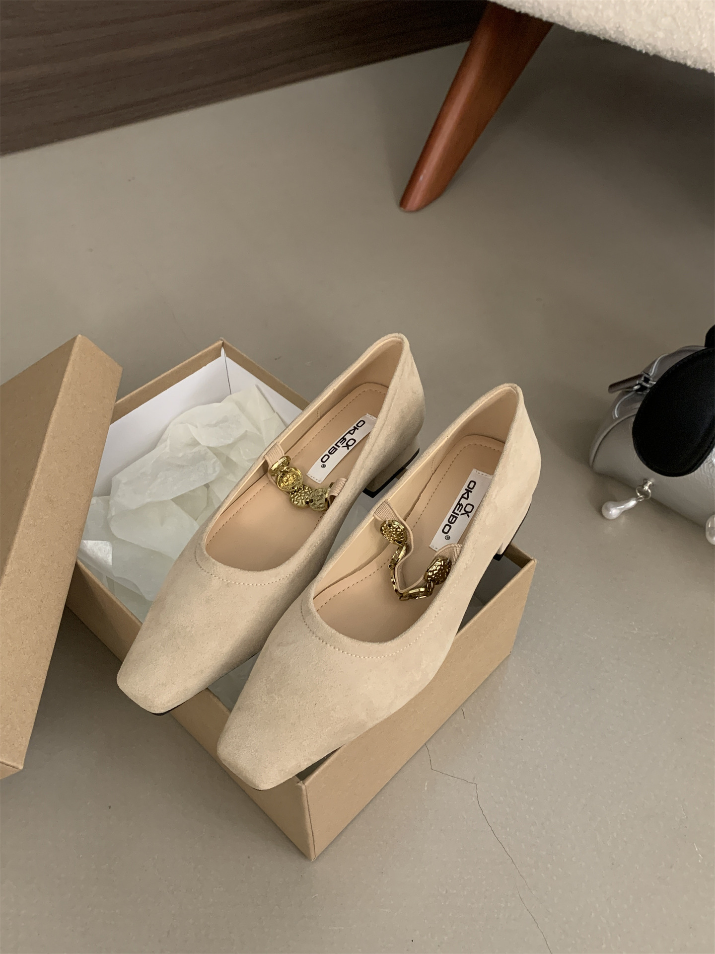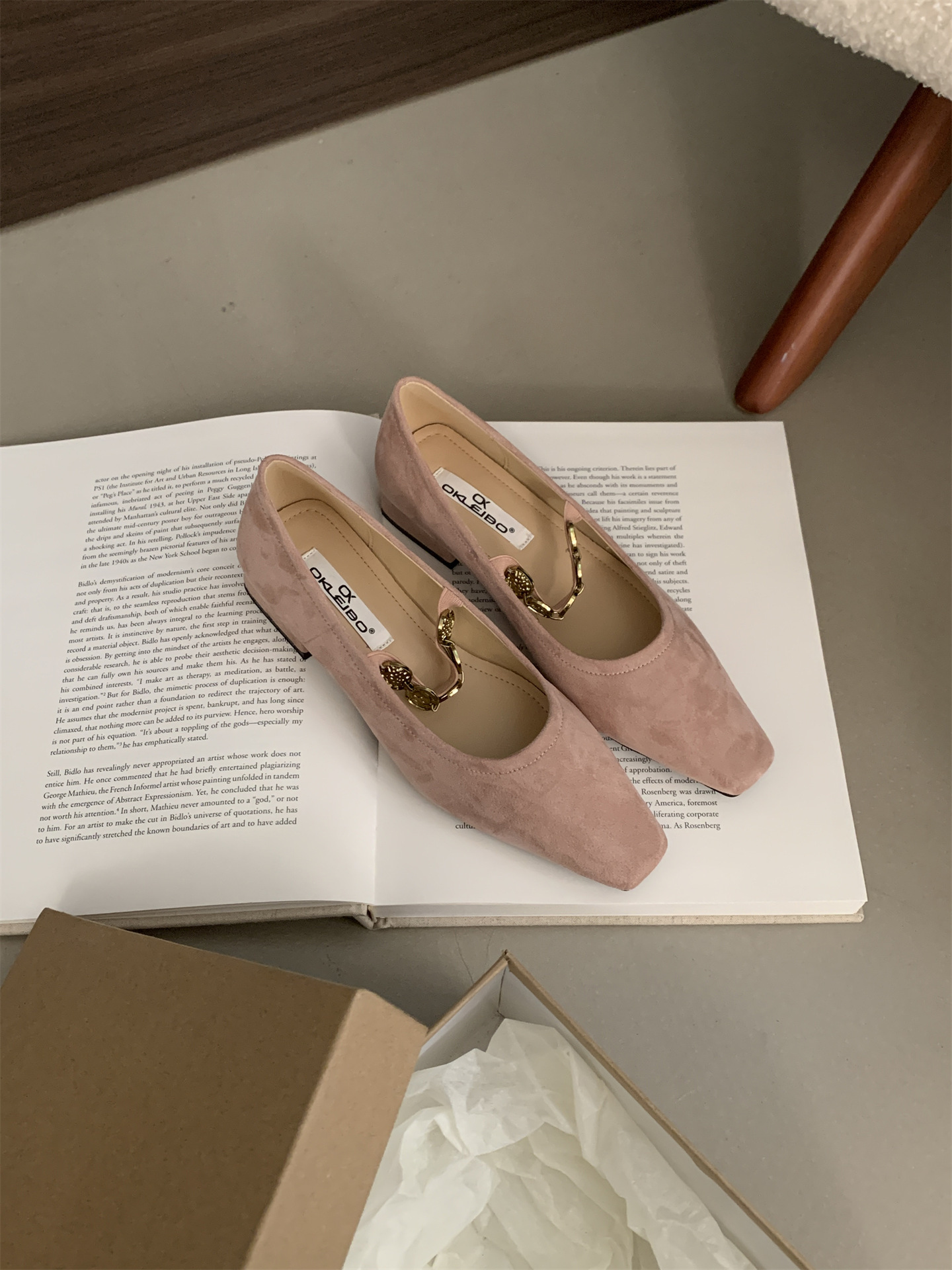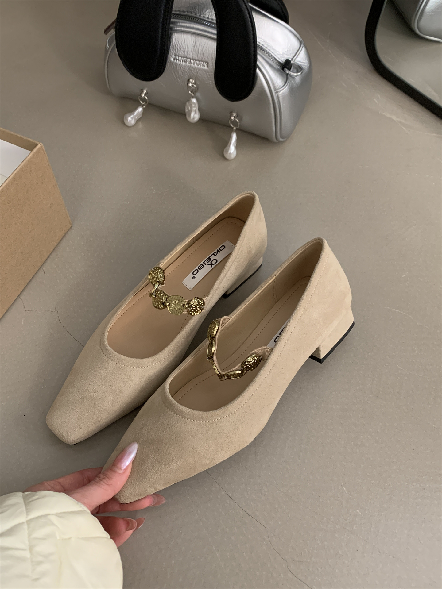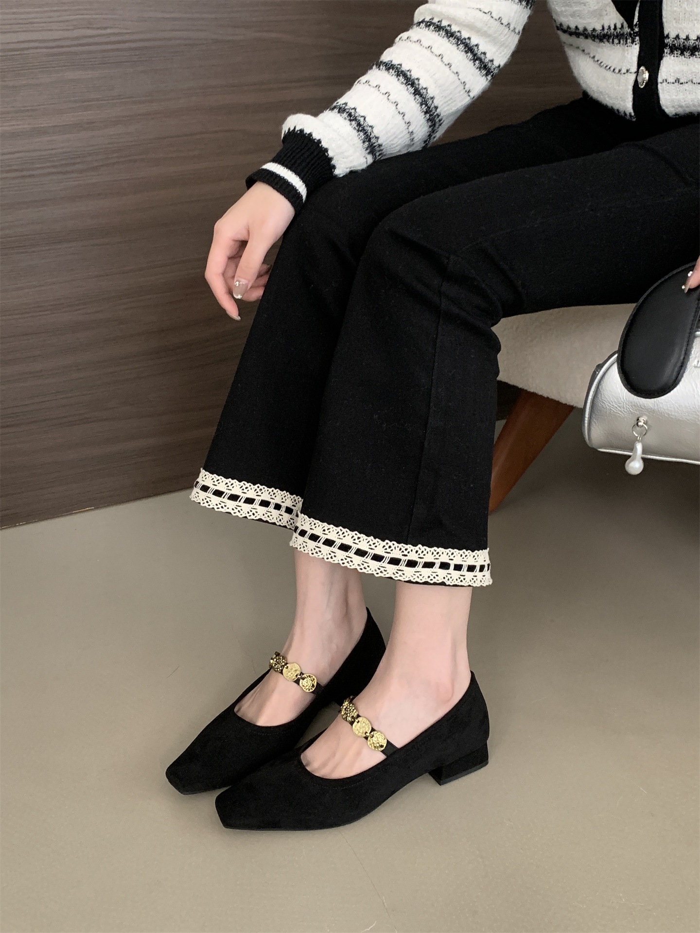 프랑스 스타일 이브닝 스타일 레트로 스퀘어 토 얕은 입 싱글 레이어 신발 여성의 봄과 가을 뉴 스웨이드 우아한 캐주얼 청키 힐 메리 제인 신발스토어 가기
