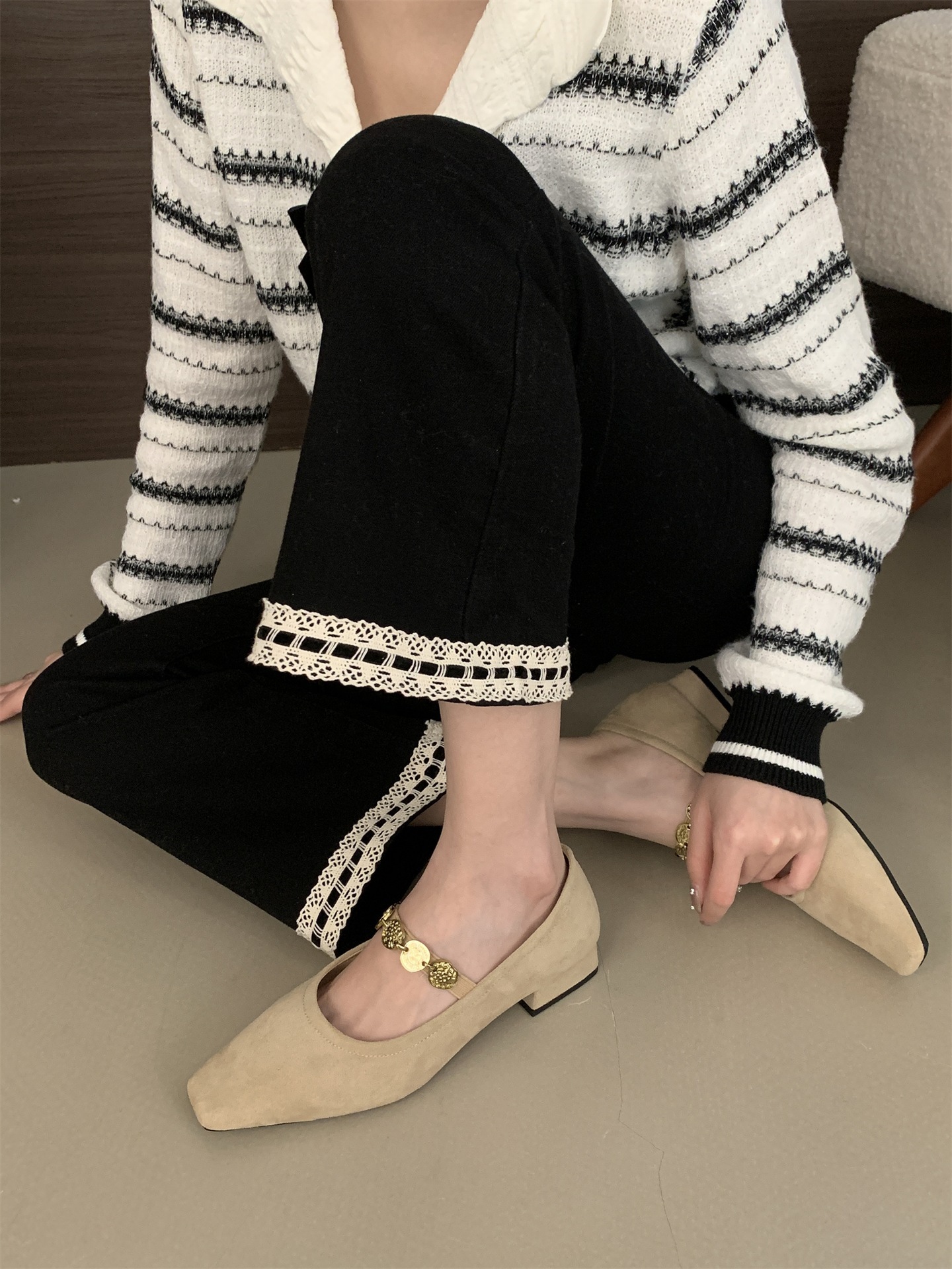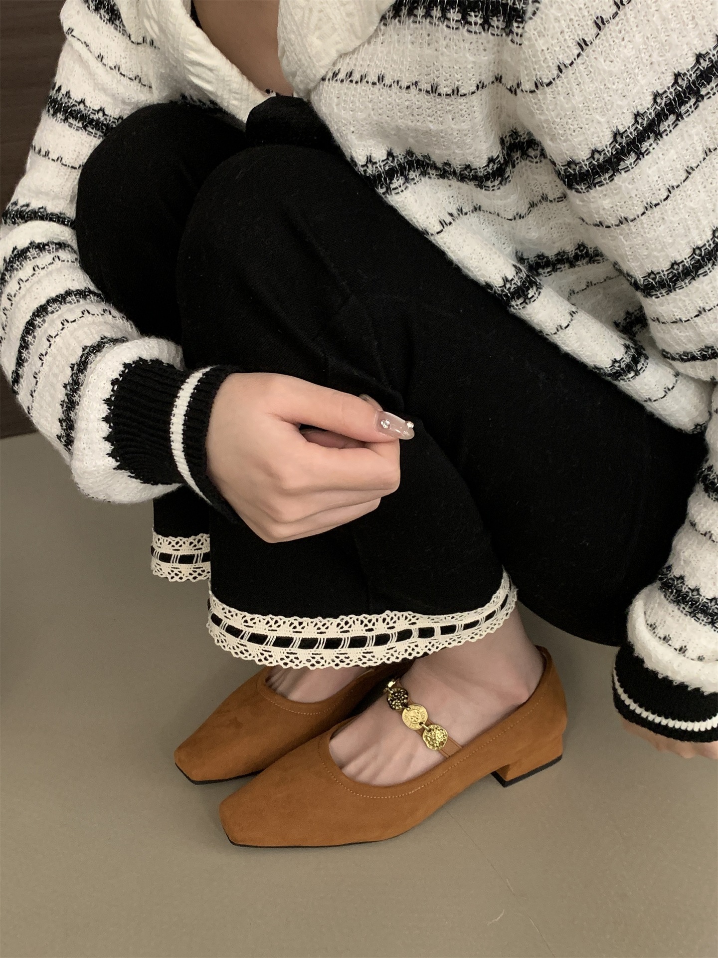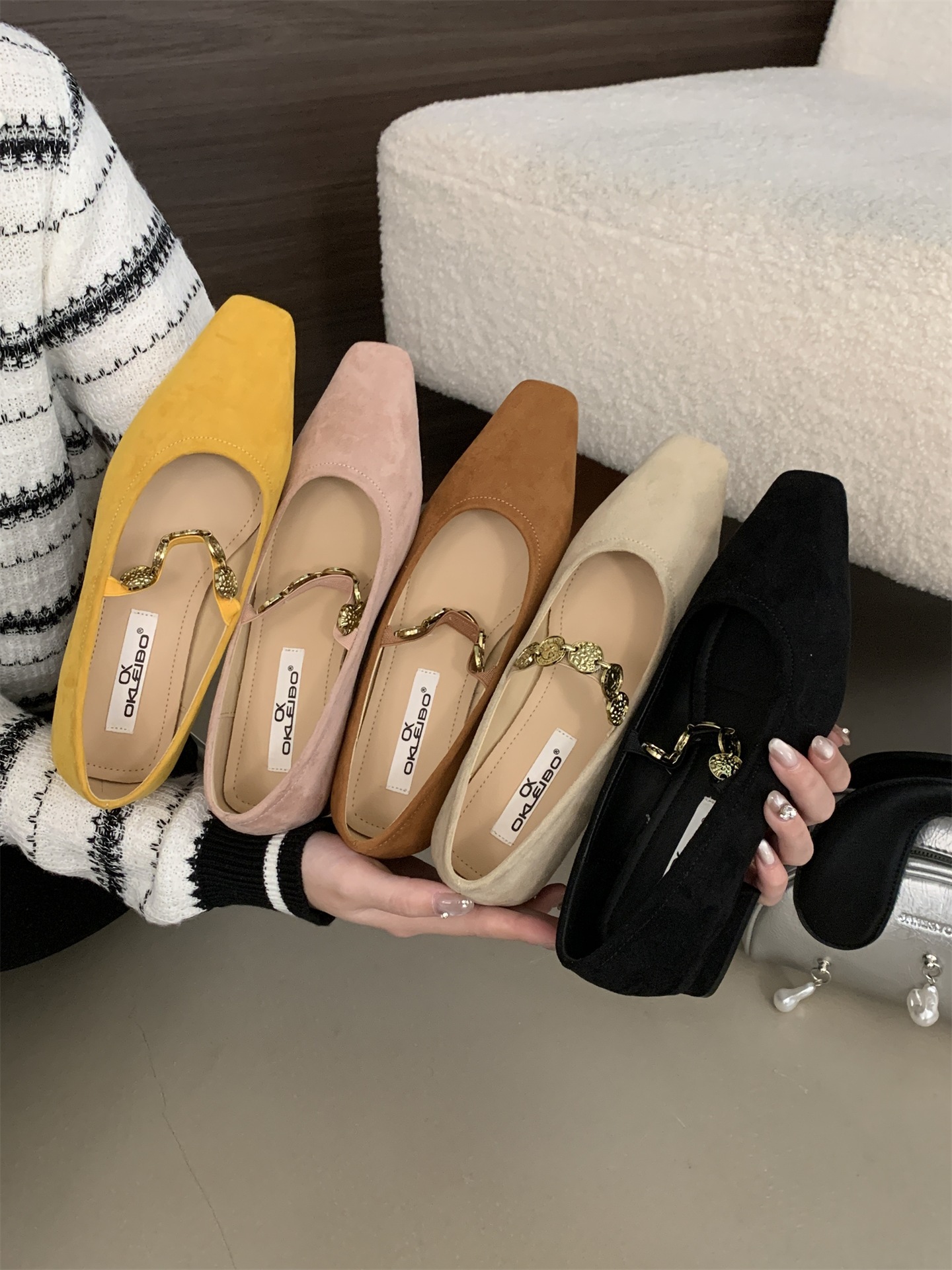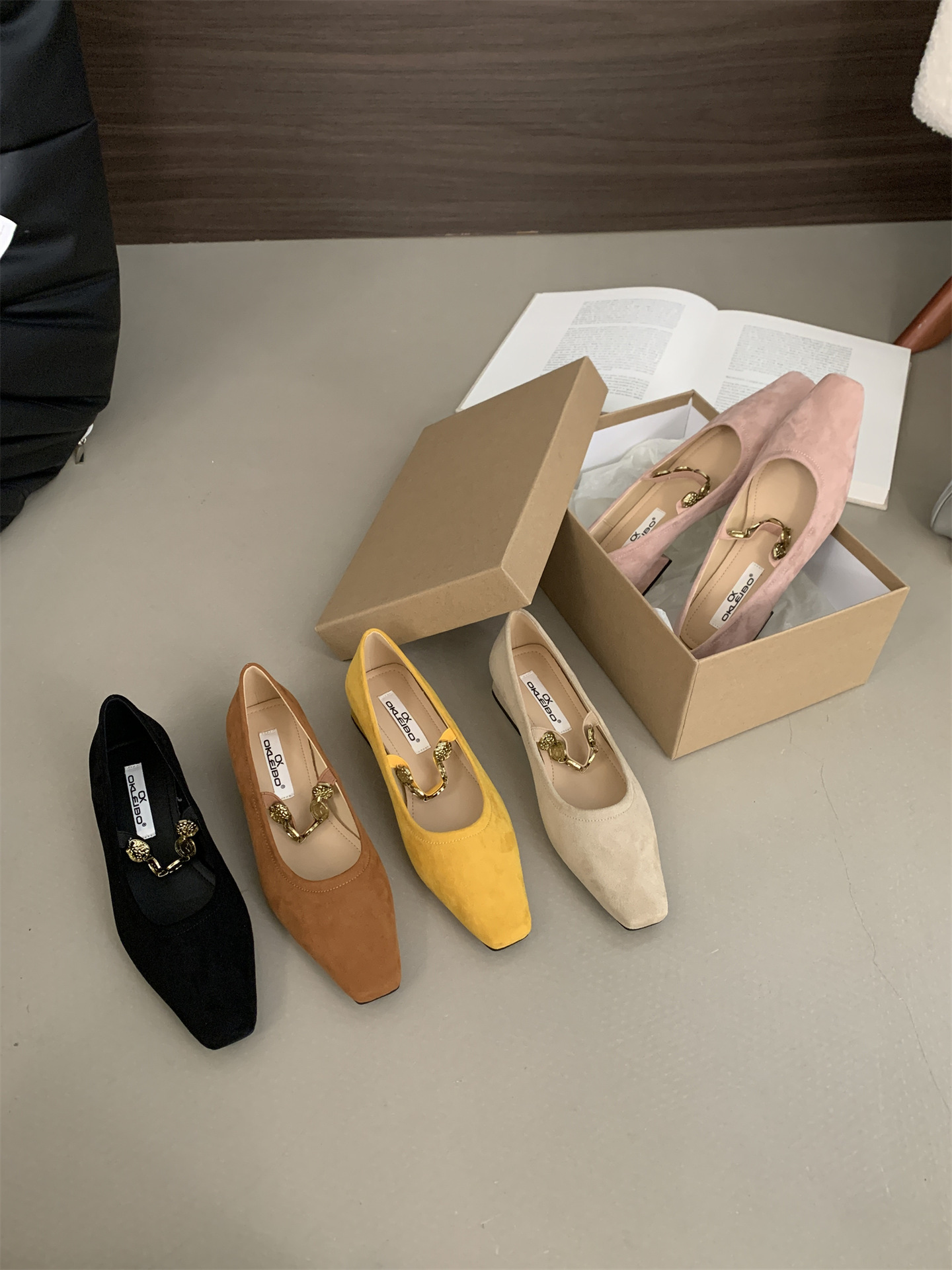 프랑스 스타일 이브닝 스타일 레트로 스퀘어 토 얕은 입 싱글 레이어 신발 여성의 봄과 가을 뉴 스웨이드 우아한 캐주얼 청키 힐 메리 제인 신발스토어 가기