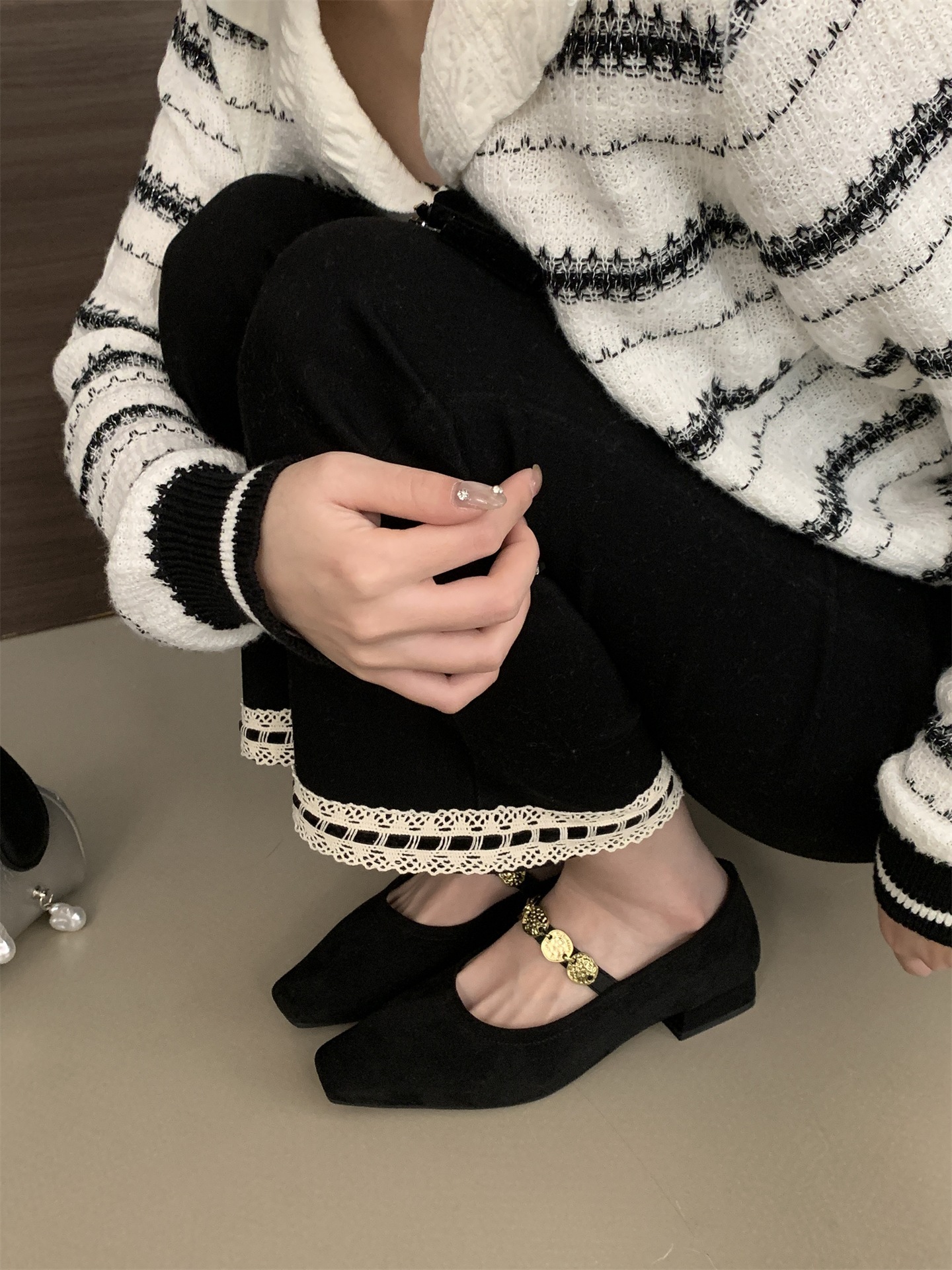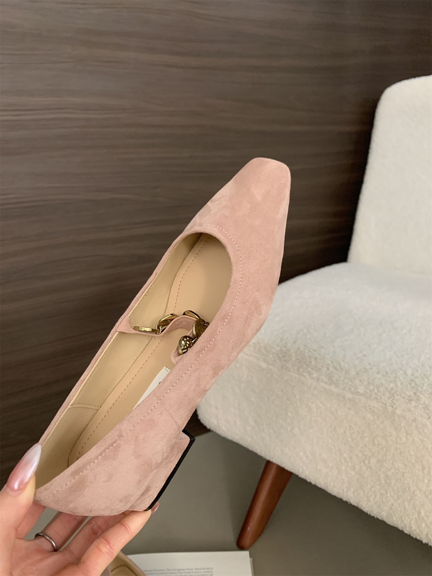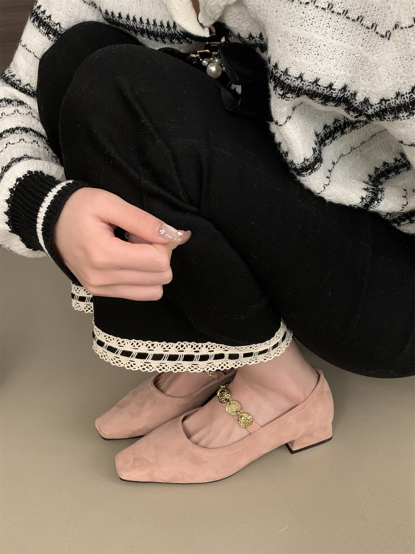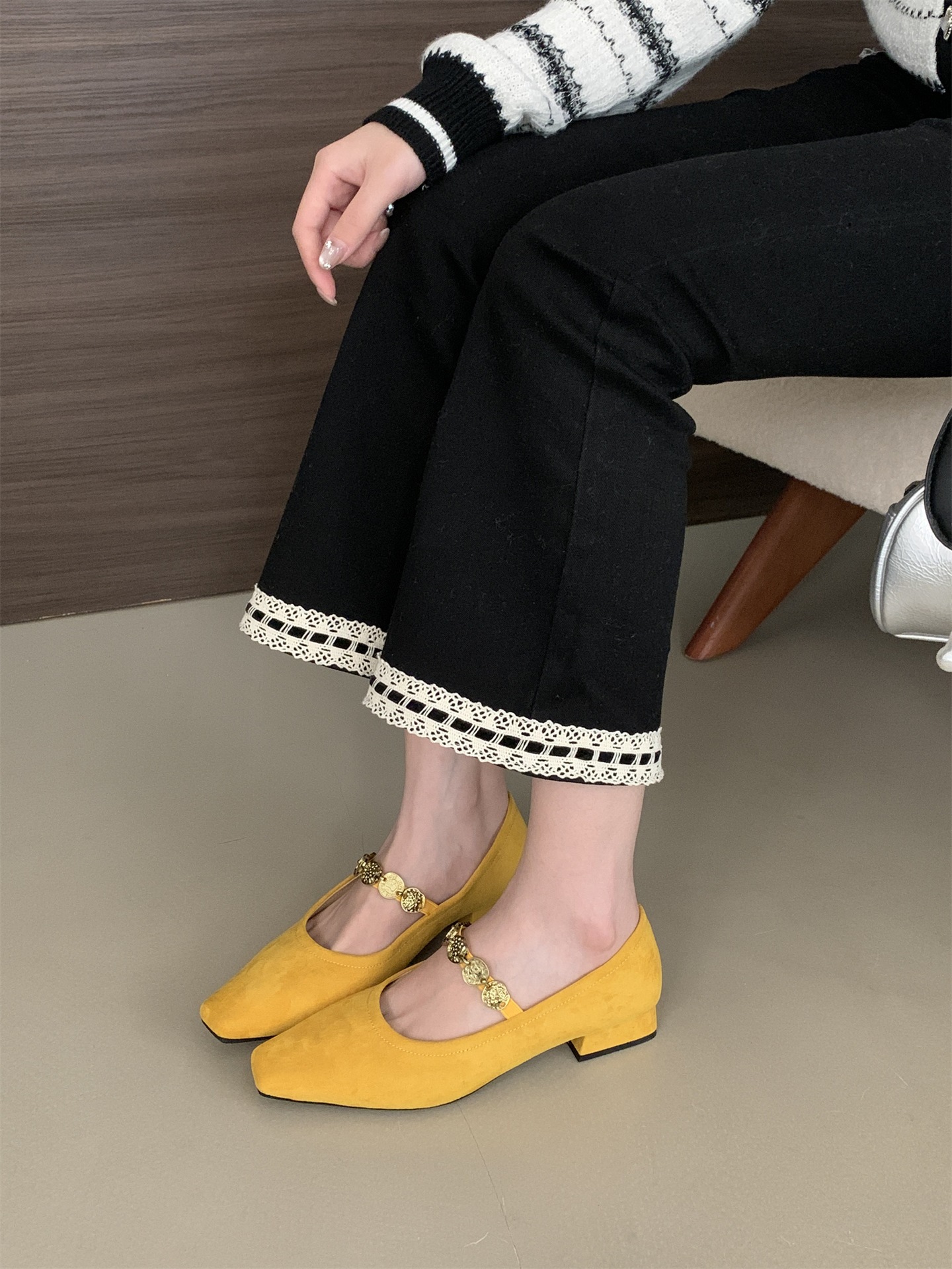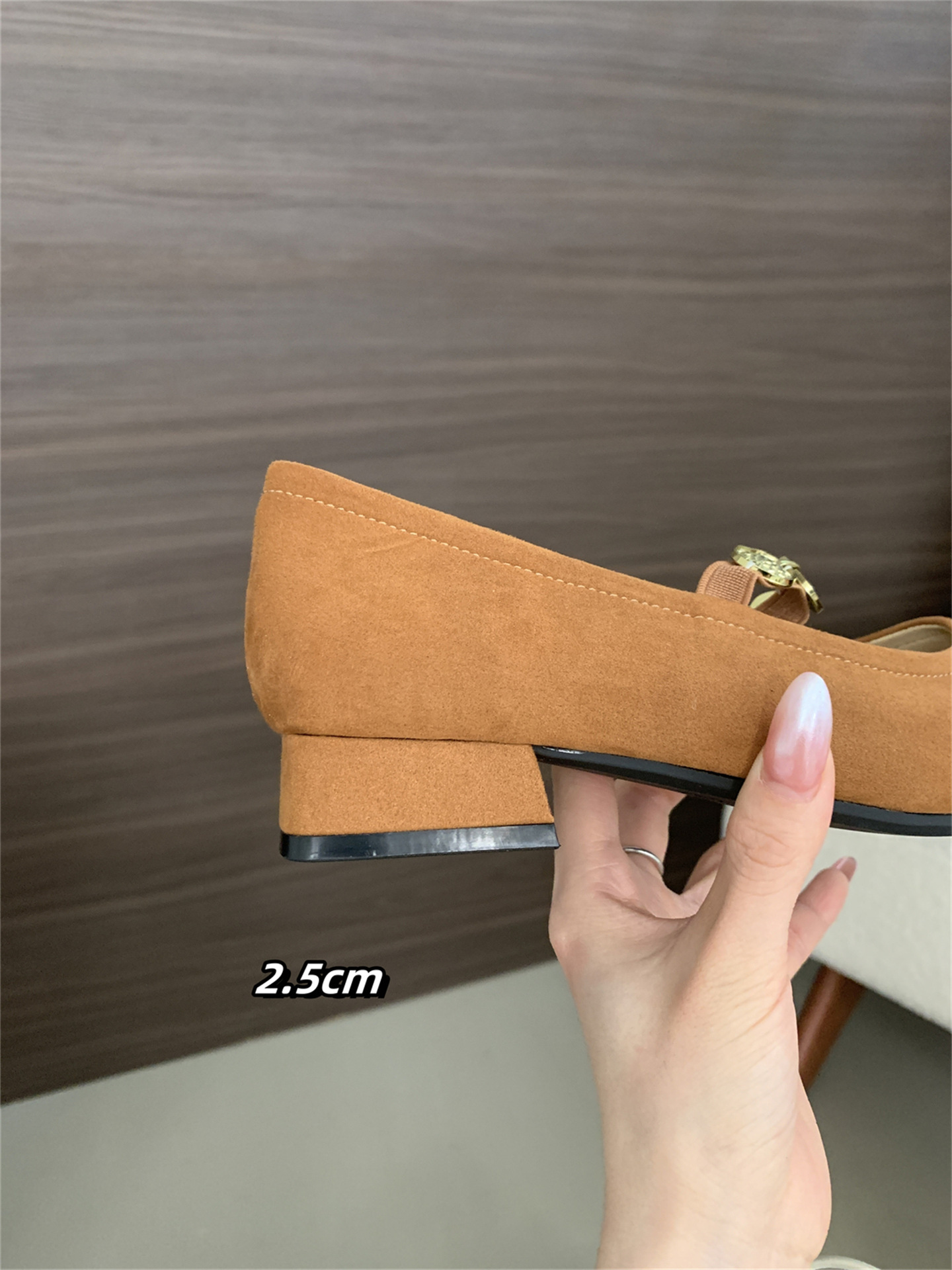 프랑스 스타일 이브닝 스타일 레트로 스퀘어 토 얕은 입 싱글 레이어 신발 여성의 봄과 가을 뉴 스웨이드 우아한 캐주얼 청키 힐 메리 제인 신발