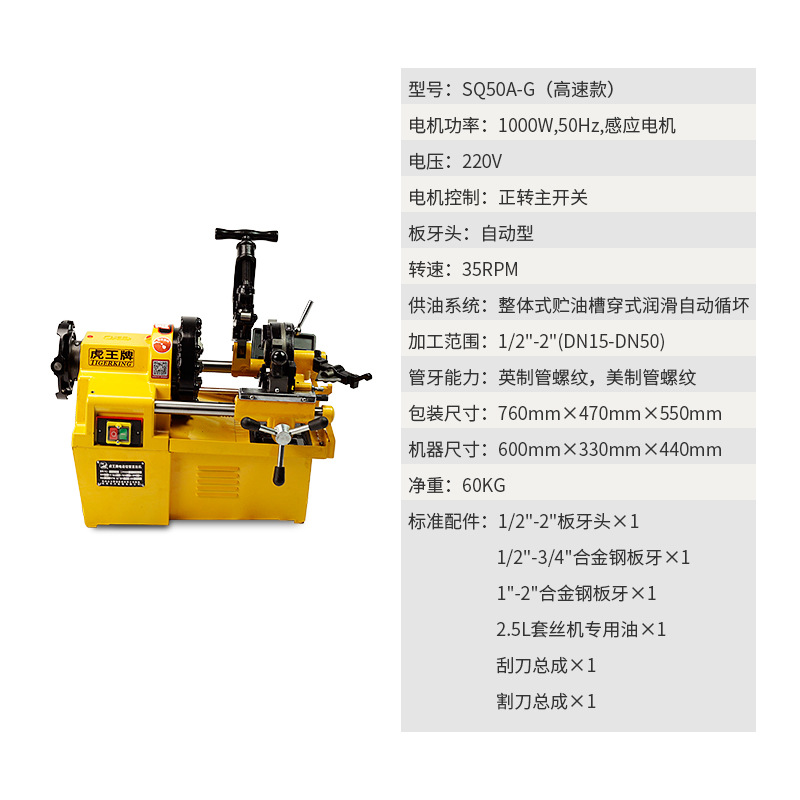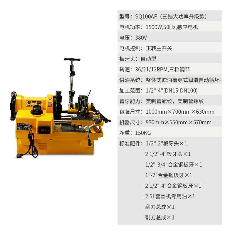 호랑이 에이스 전기 스레딩 기계 220V 다기능 2 인치 3 인치 4 인치 스레딩 기계 소방 파이프 오프닝 기계 380 건조 세트
