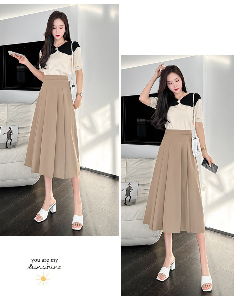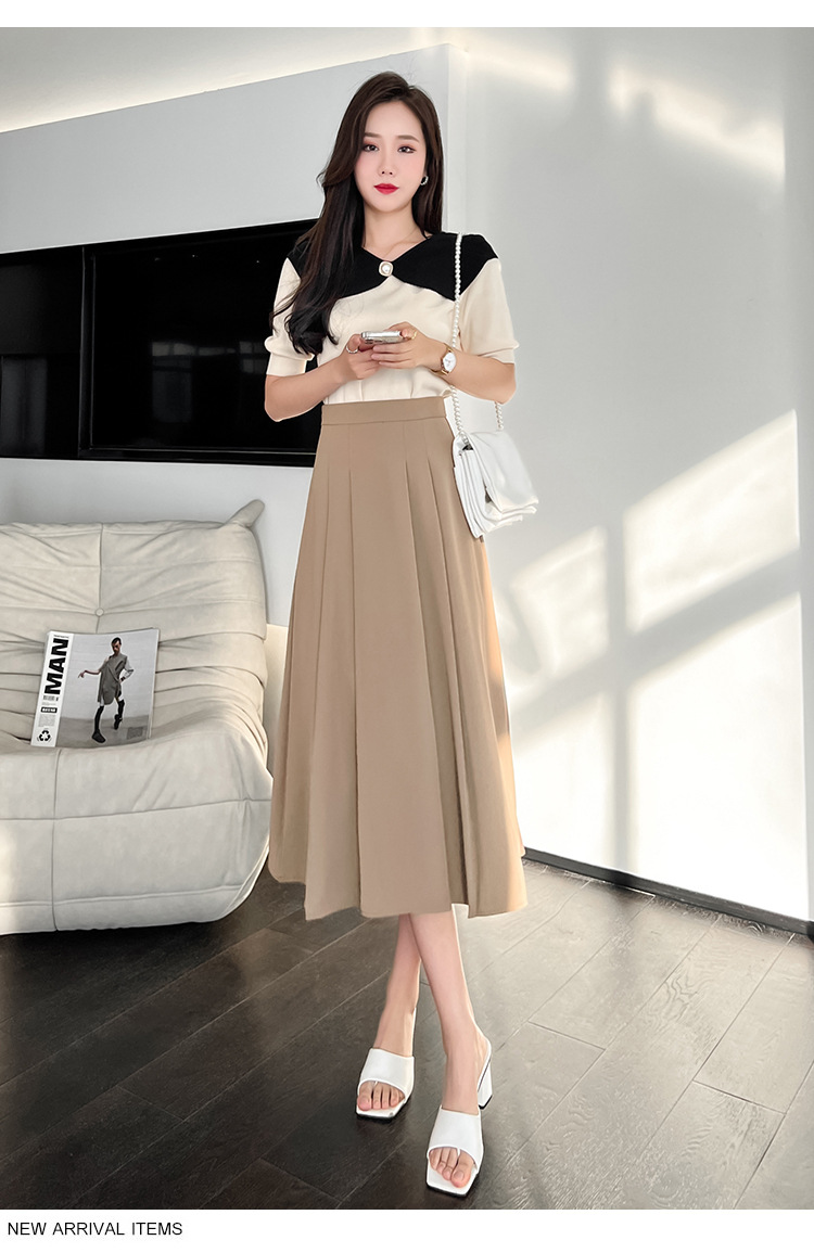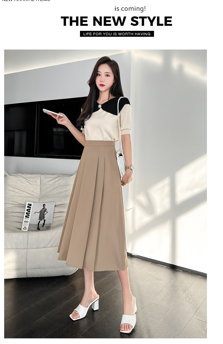 2025 가을 겨울 여성용 하이웨이스트 A라인 롱 스커트, 업무룩, 무릎 아래 길이, 플리츠 스커트스토어 가기