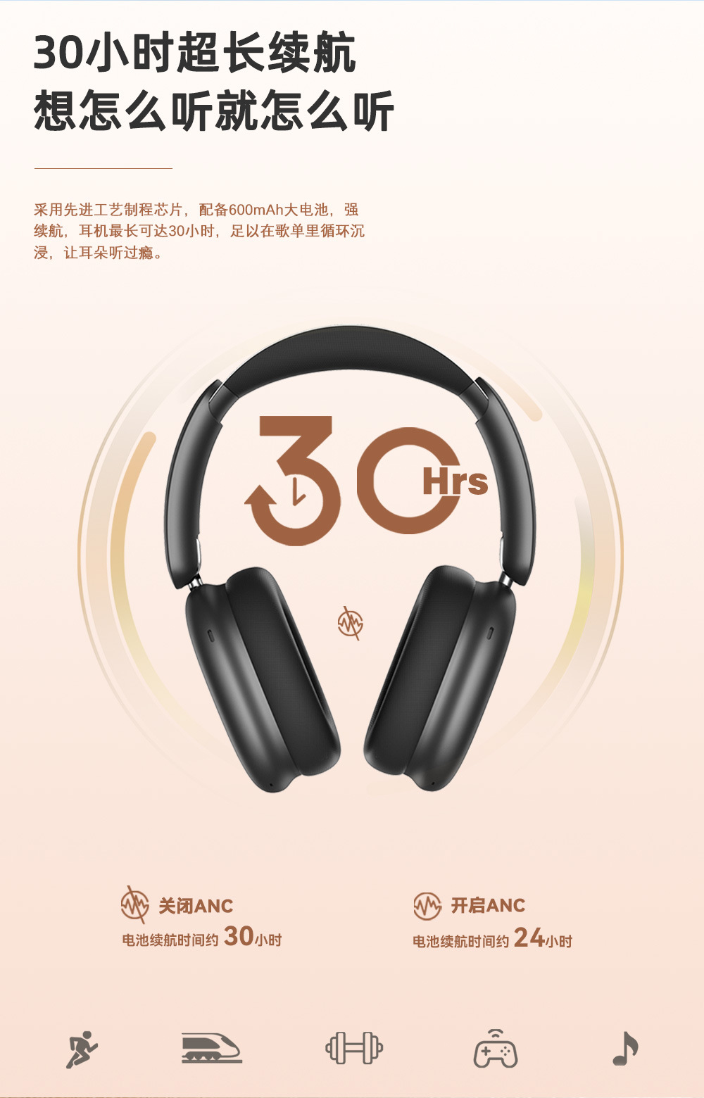 2026년 ANC 노이즈 캔슬링 블루투스 헤드폰, 새로운 크로스보더 모델, 듀얼 피드백 노이즈 캔슬링 헤드셋 블루투스 스포츠 헤드폰, 음악 감상용