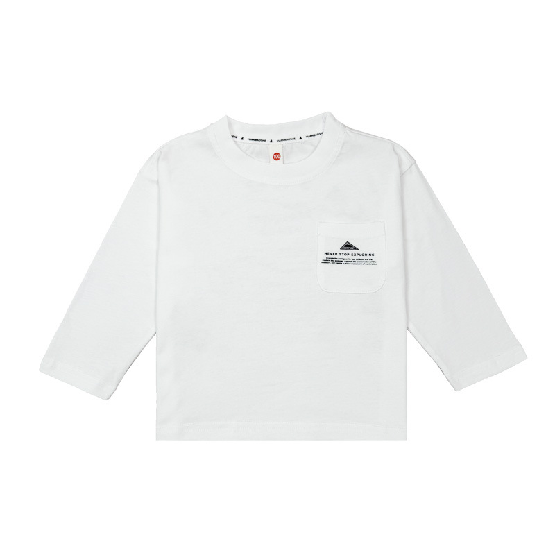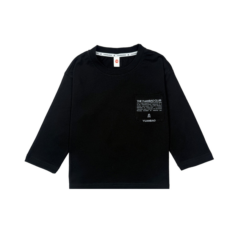 아동용 긴팔 티셔츠 2025 가을 소년 순면 피부 친화적 인상의 중형 및 대형 아동용 단순 포켓 탑 바닥 셔츠스토어 가기