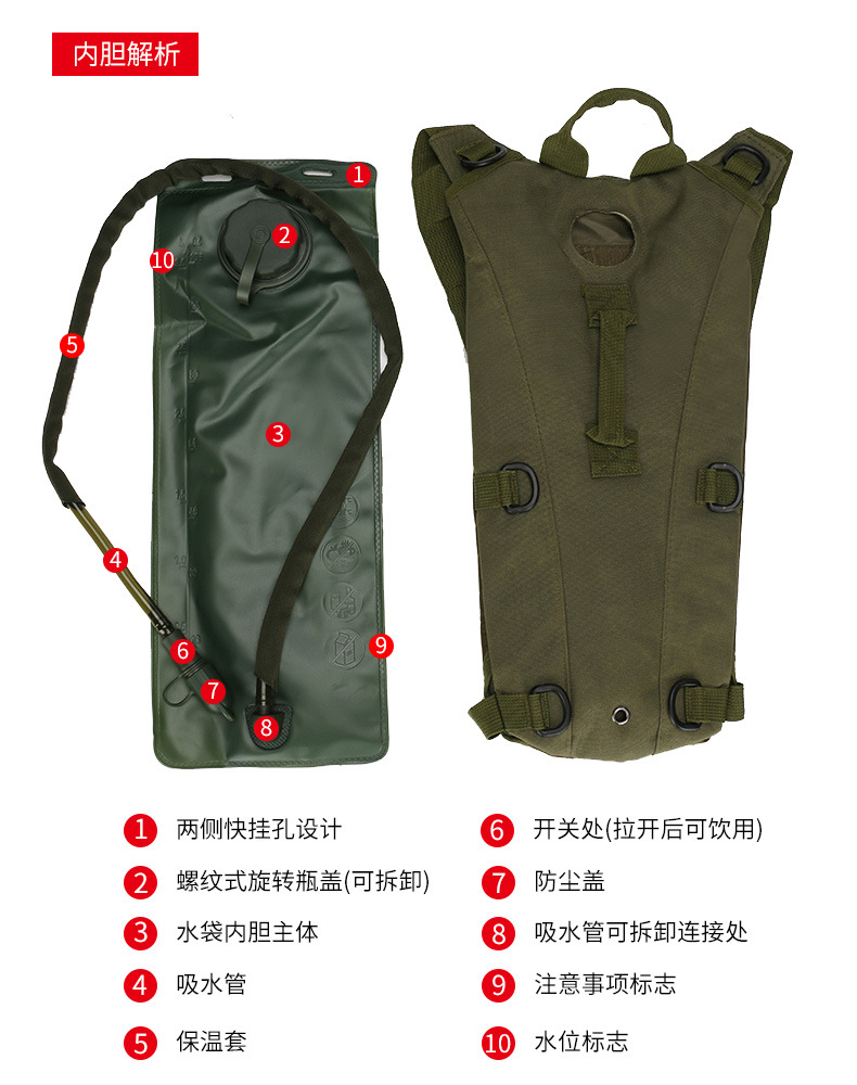 사이클링 스포츠 워터 백 백 3L 라이너 전술 워터 백 배낭 야외 스포츠 위장 워터 백