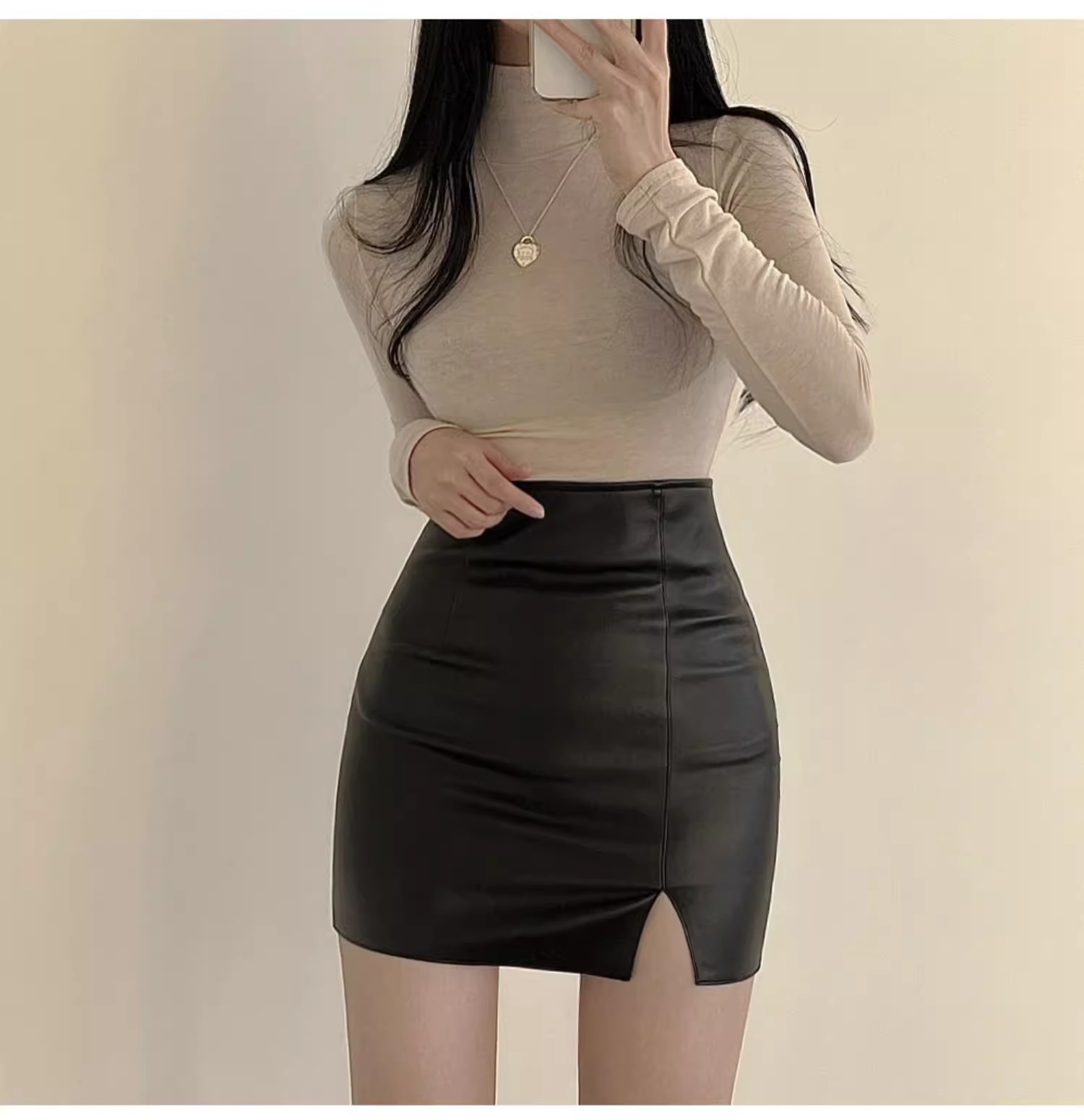 엉덩이 PU 작은 가죽 치마 2023 새로운 블랙 작은 슈퍼 핫 울트라 짧은 치마 여성의 섹시한 단단한 짧은 치마 트렌디스토어 가기