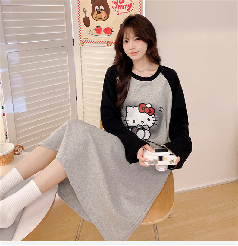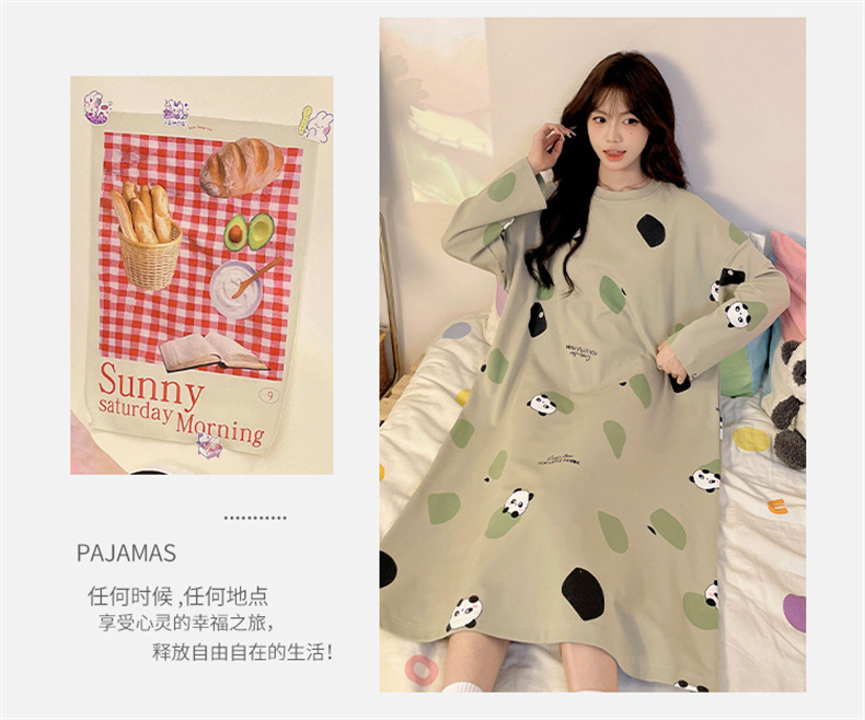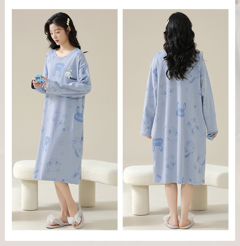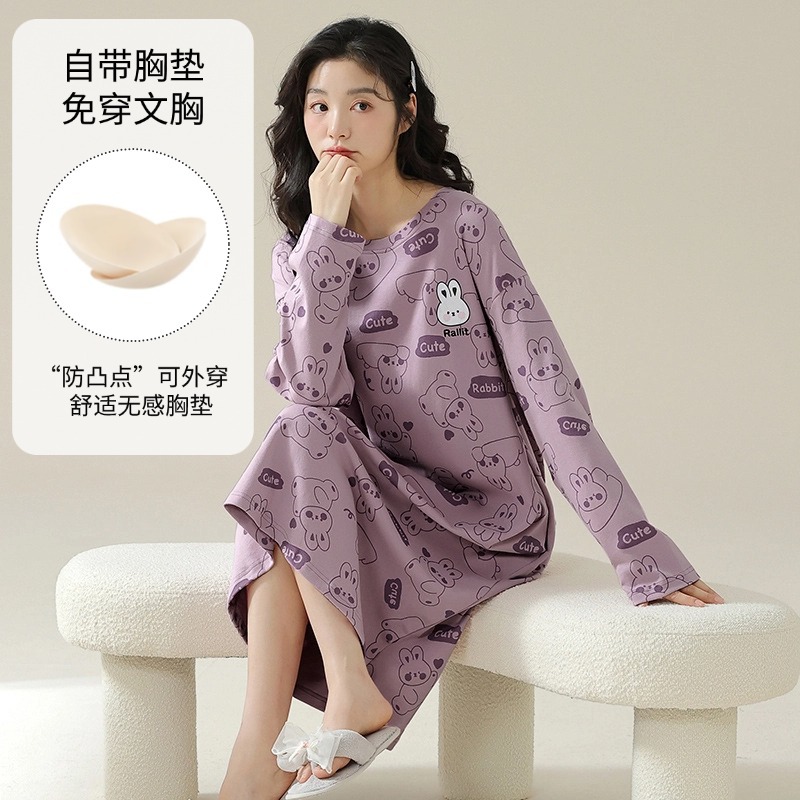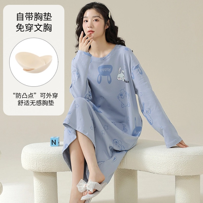 봄 · 가을 잠옷 여성용 긴 소매 가슴 패드 겉옷 긴 치마 느슨한 플러스 사이즈 파자마 한국식 가을과 겨울 집 옷스토어 가기