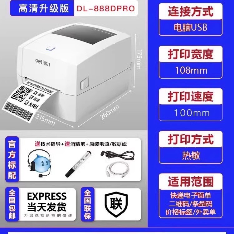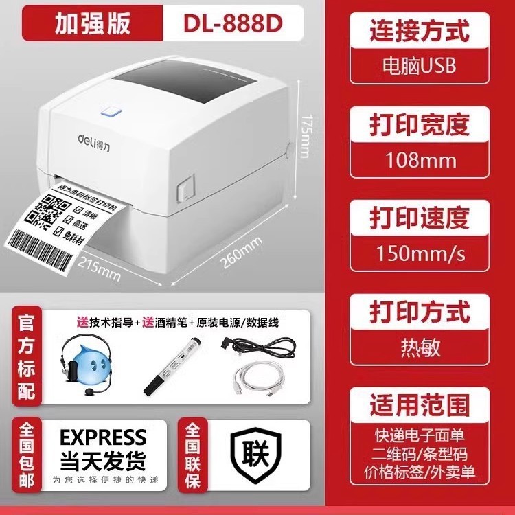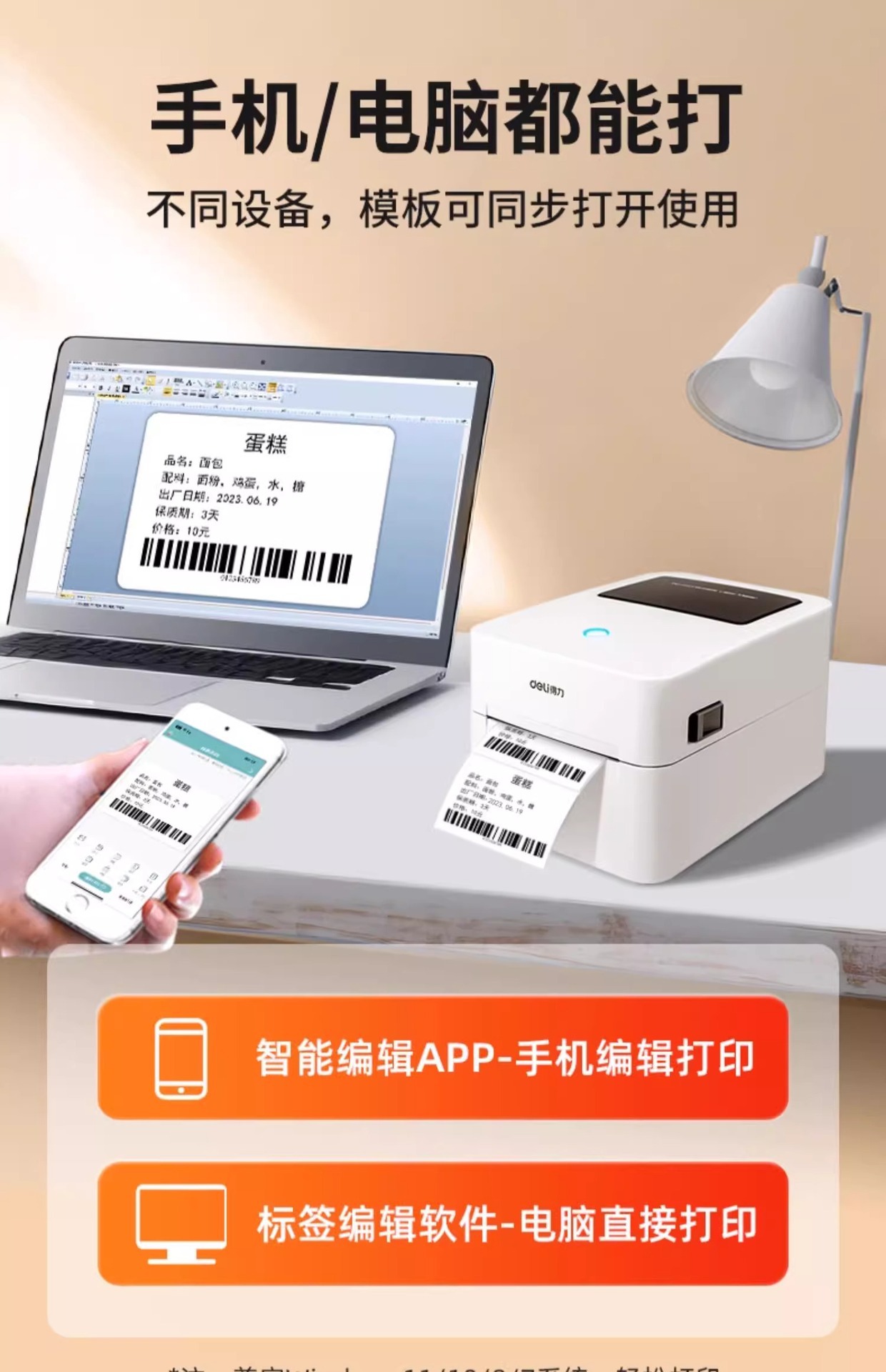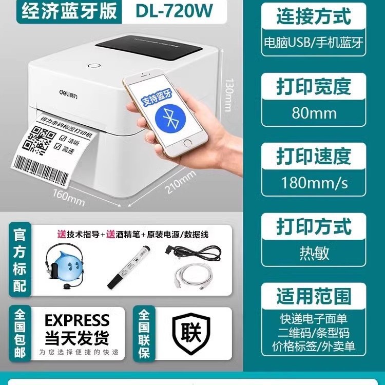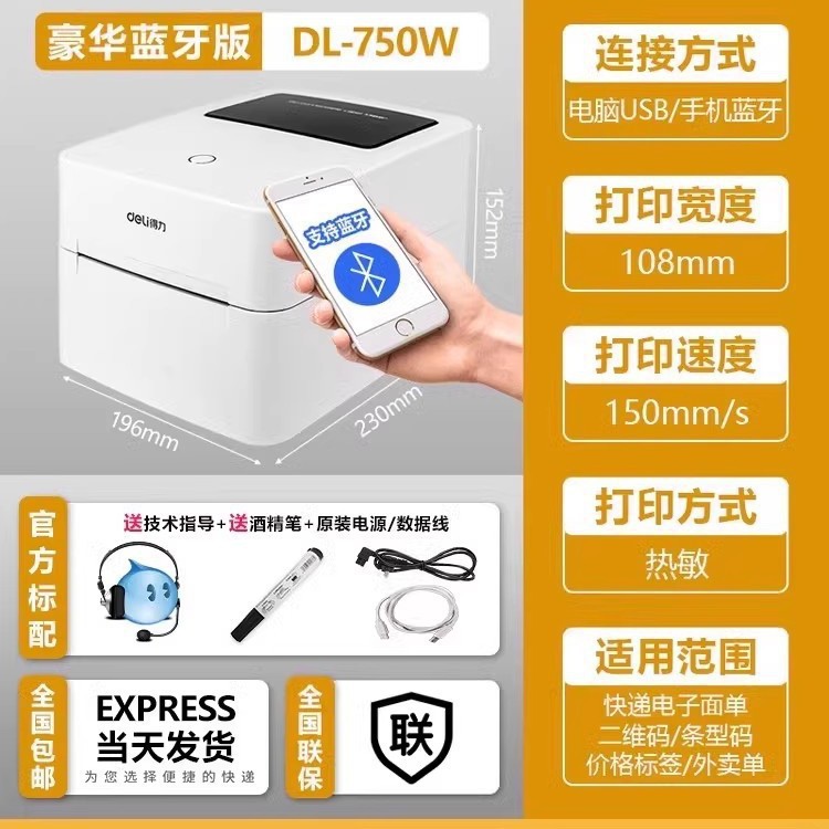 델리 프린터 열 접착 라벨 프린터 휴대 전화 블루투스 라벨 기계 익스프레스 싱글 싱글 머신스토어 가기