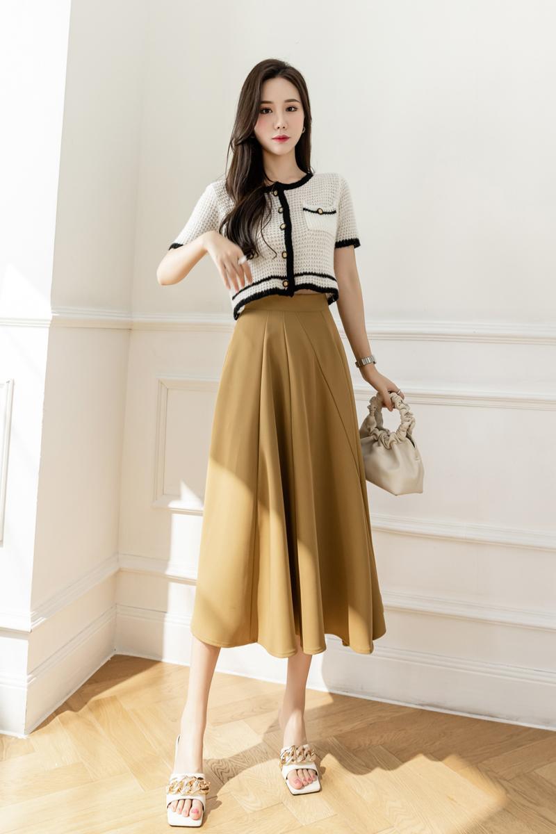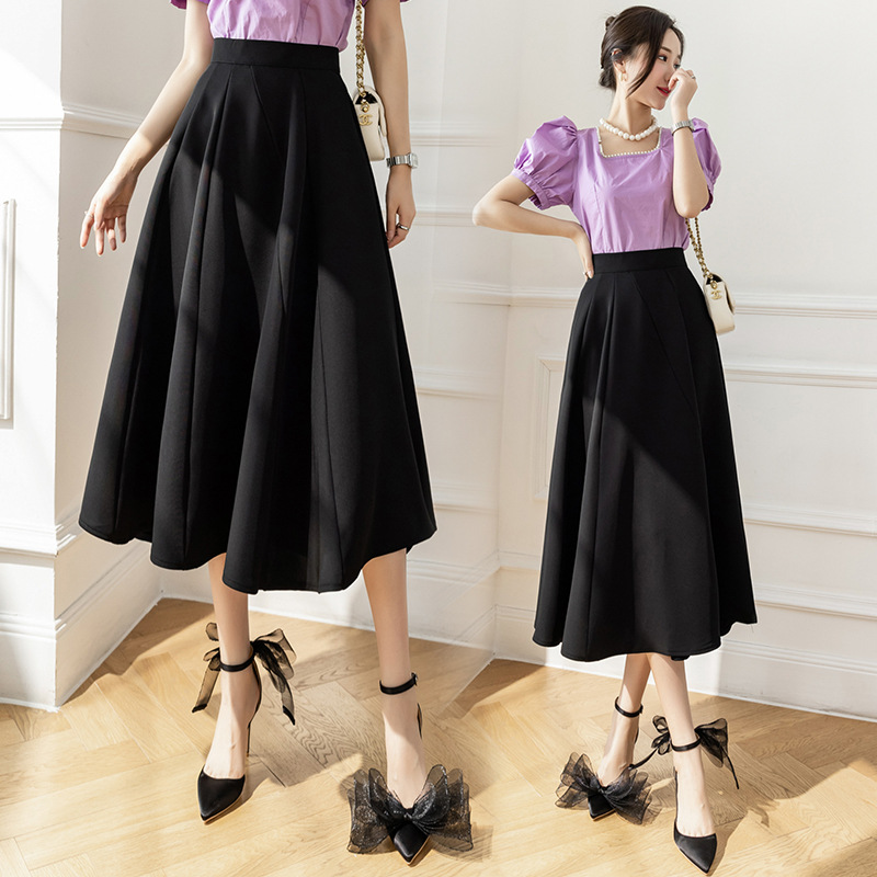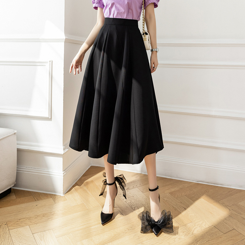 재고 중간 길이 스커트 2025 봄과 여름 높은 허리 큰 스윙 엉덩이 슬리밍 조커 세트 긴 치마를 덮는 A 라인 오버 스커트스토어 가기