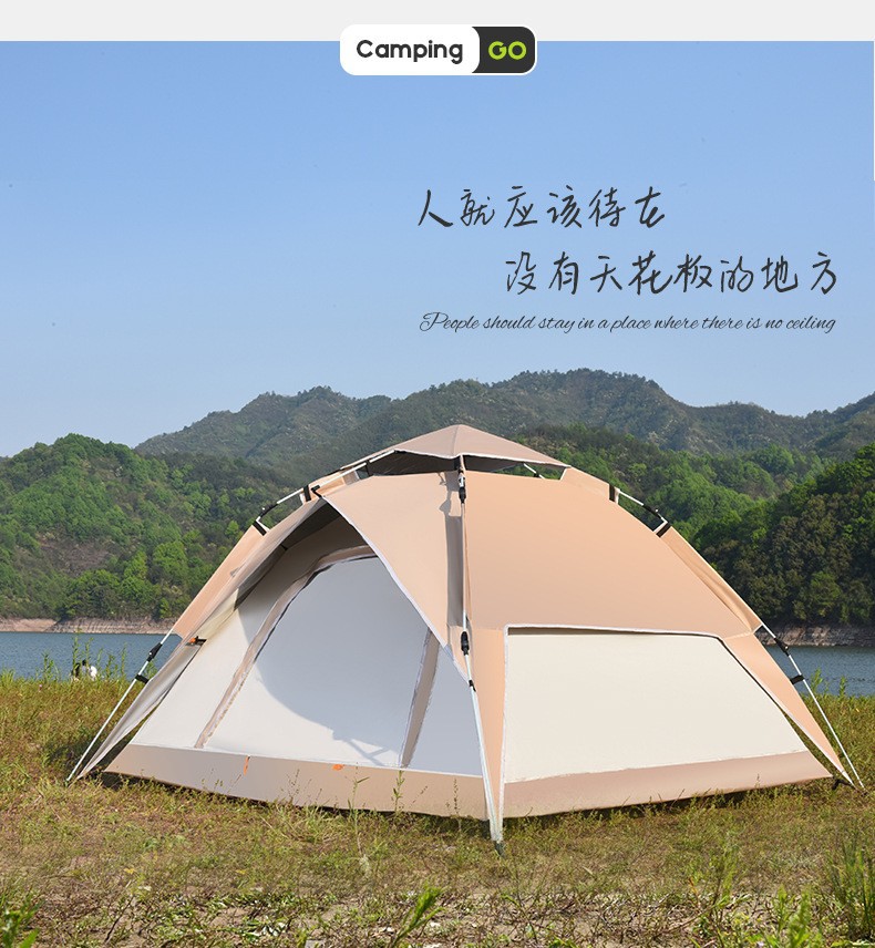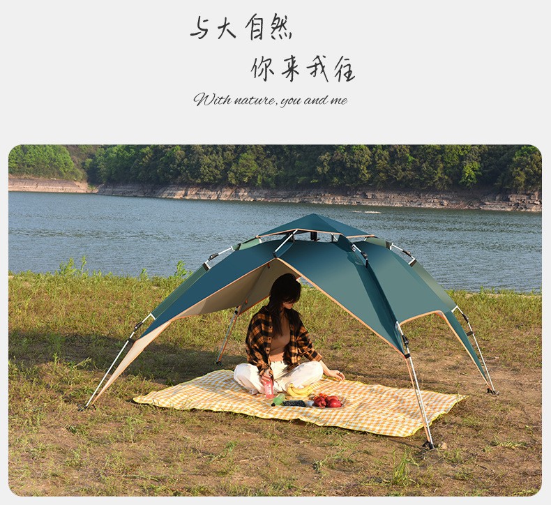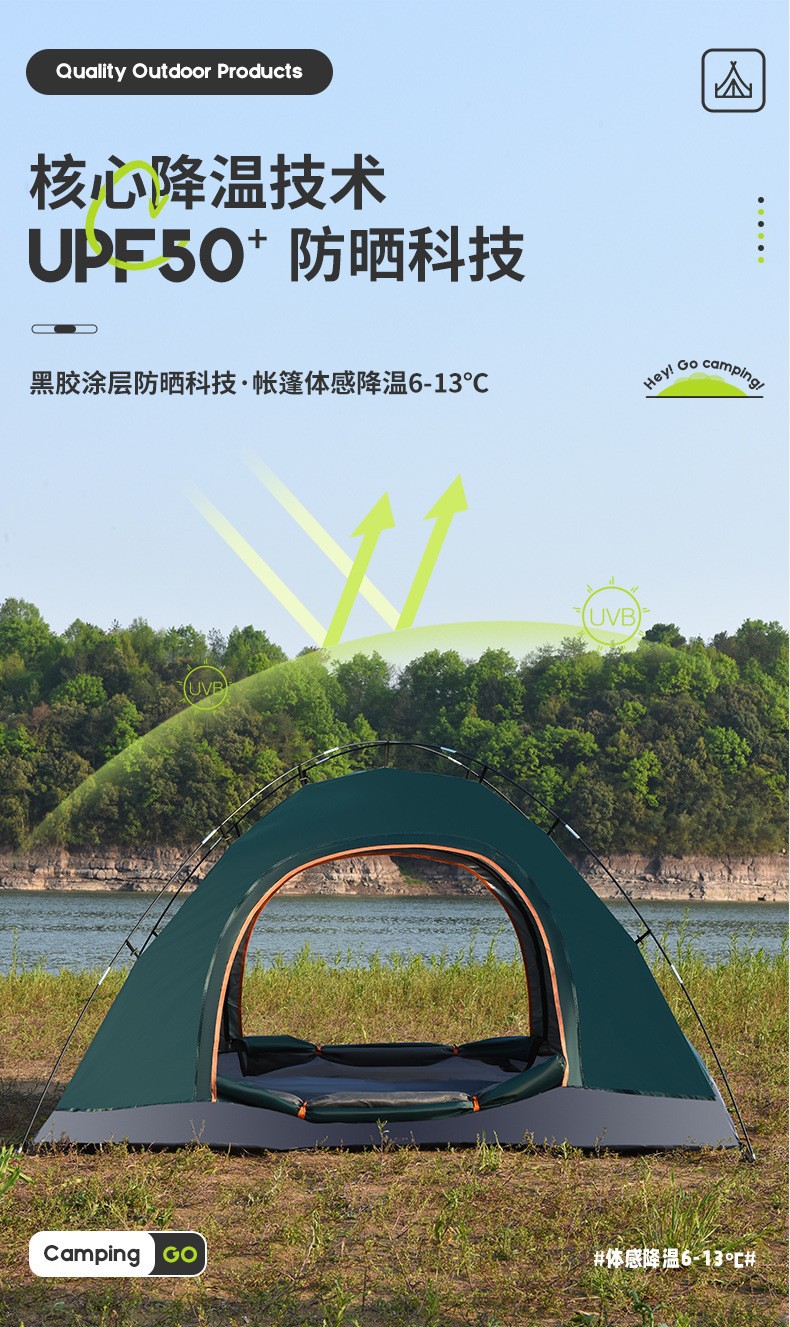 여름 캠핑 자외선 차단제 및 곤충 보호 캠핑 텐트 자동 빠른 오프닝 더블 레이어 캐노피 텐트 많은 사람들을위한 두 개의 문과 두 개의 창문스토어 가기