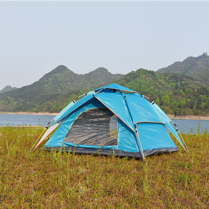 여름 캠핑 자외선 차단제 및 곤충 보호 캠핑 텐트 자동 빠른 오프닝 더블 레이어 캐노피 텐트 많은 사람들을위한 두 개의 문과 두 개의 창문