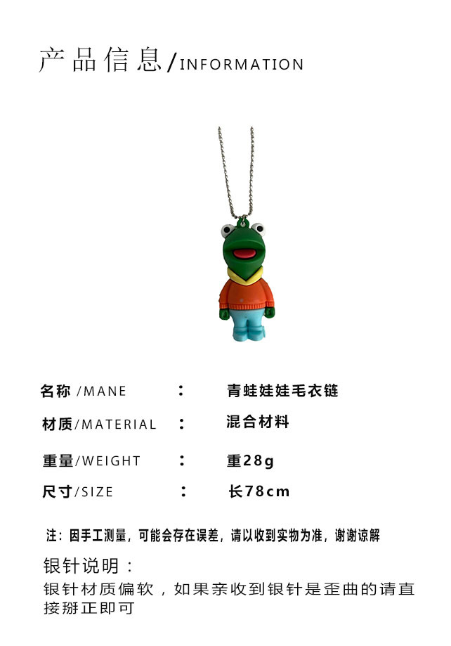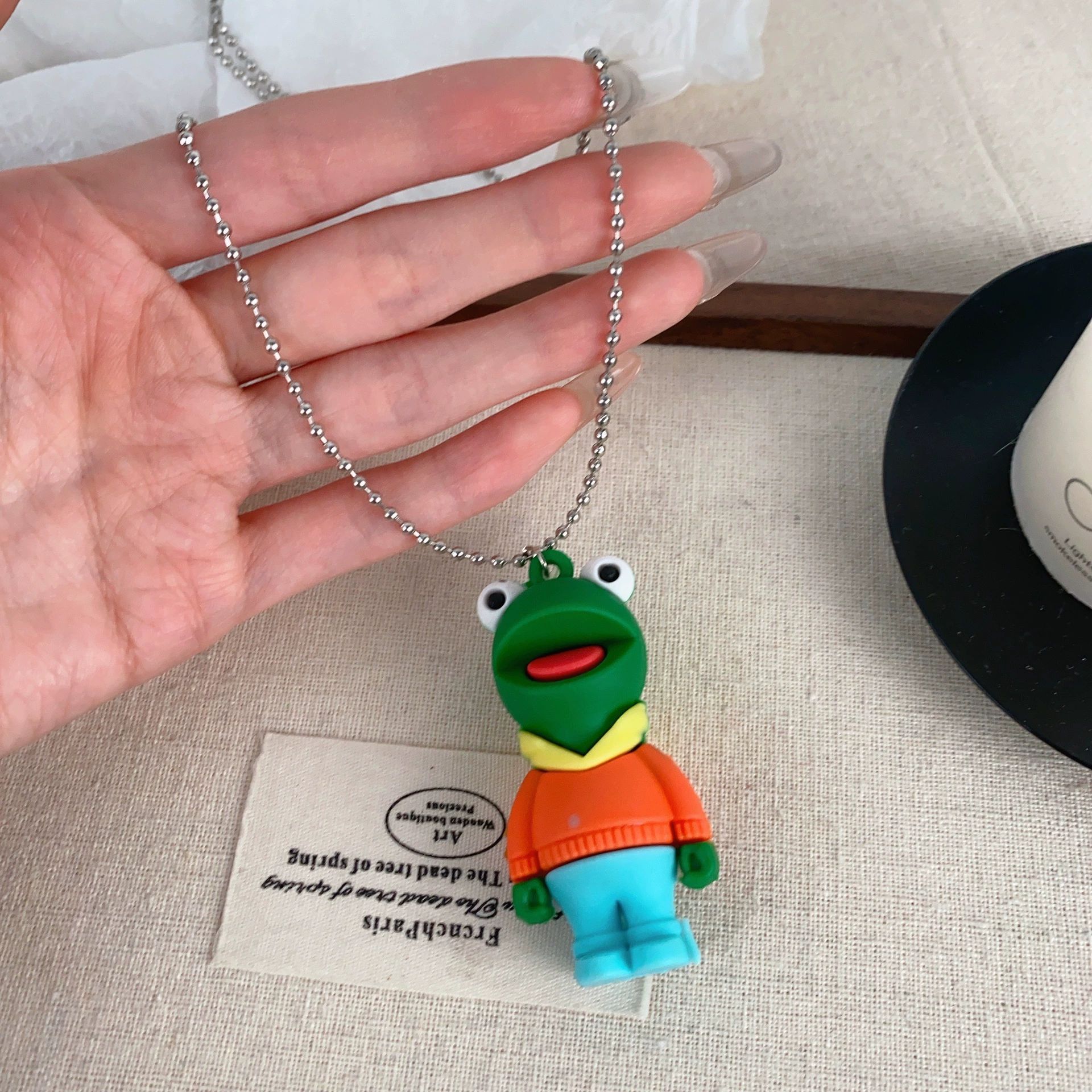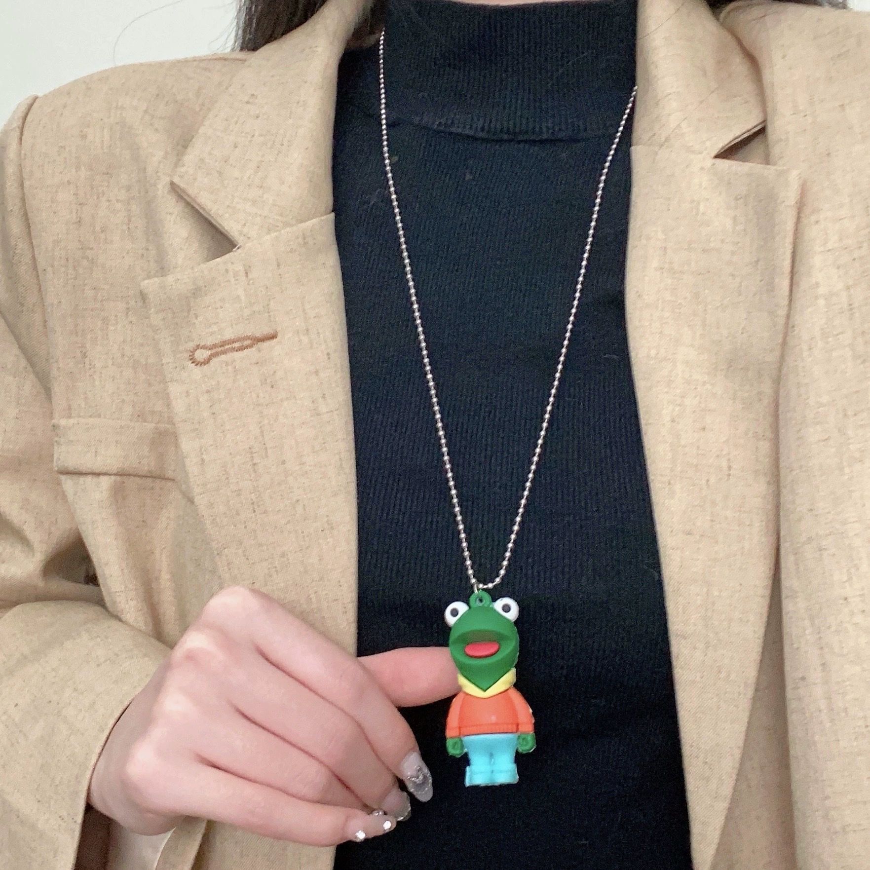 귀여운 만화 인형 펜던트 목걸이 귀여운 재미있는 틈새 창조적 인 녹색 개구리 인형 스웨터 체인 달콤한 올 매치 목걸이