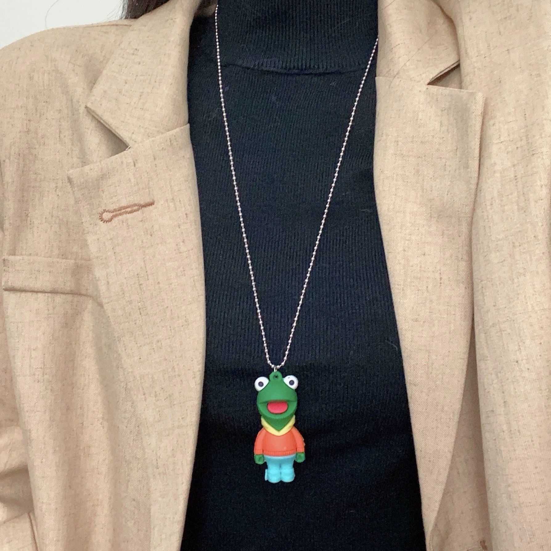 귀여운 만화 인형 펜던트 목걸이 귀여운 재미있는 틈새 창조적 인 녹색 개구리 인형 스웨터 체인 달콤한 올 매치 목걸이스토어 가기