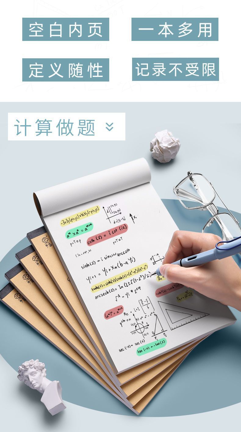 1000 페이지 두꺼운 초안 종이 학생 초안 책 노란색 초안 미적분 흰 종이 빈 도매 저렴한 고등학교스토어 가기