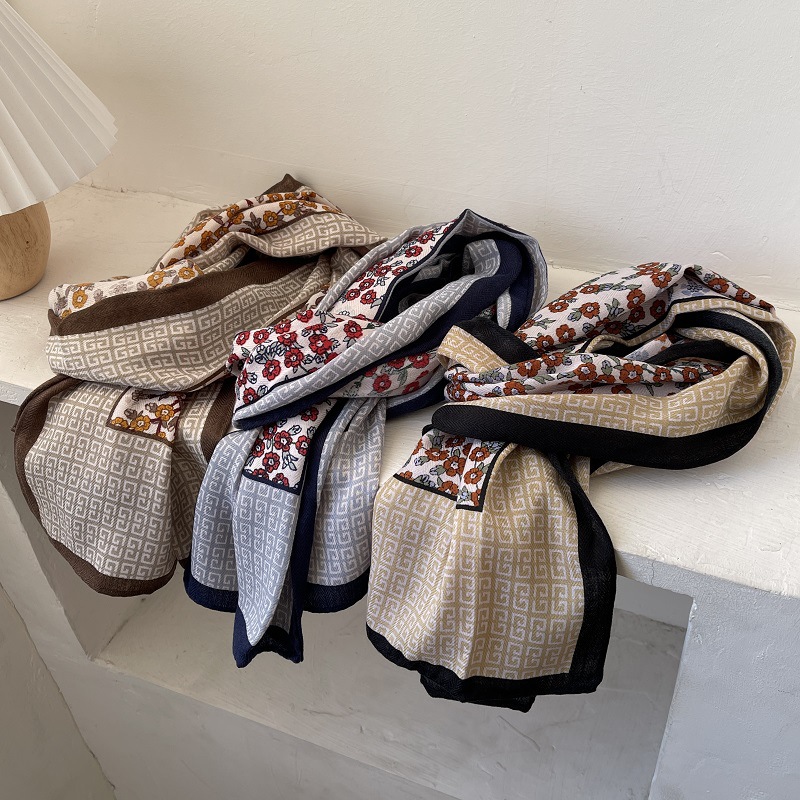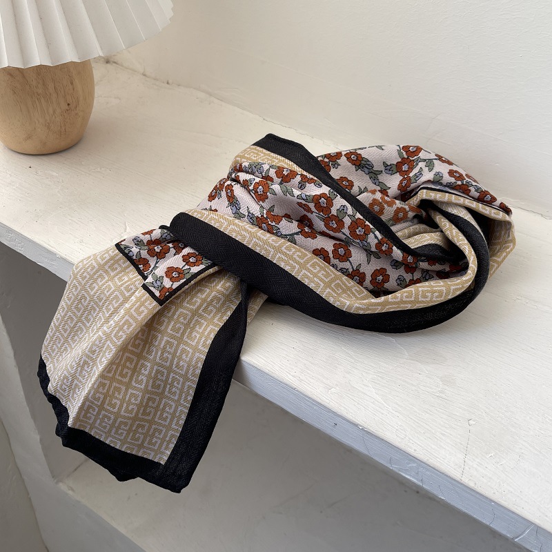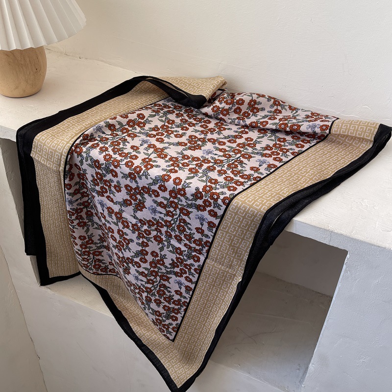 한국 동대문 오리지널 싱글 에바다 뉴 빈티지 작은 꽃 여자 올 매치 여자 장식 실크 스카프 서양식 올 매치 Ins