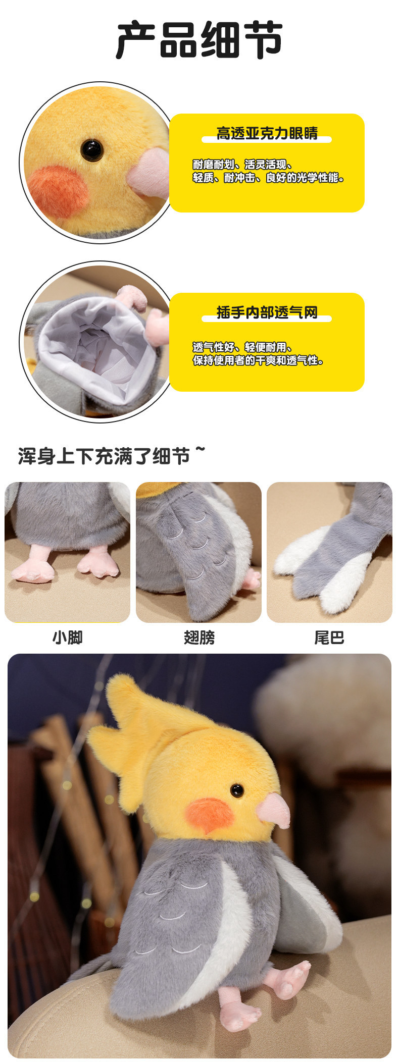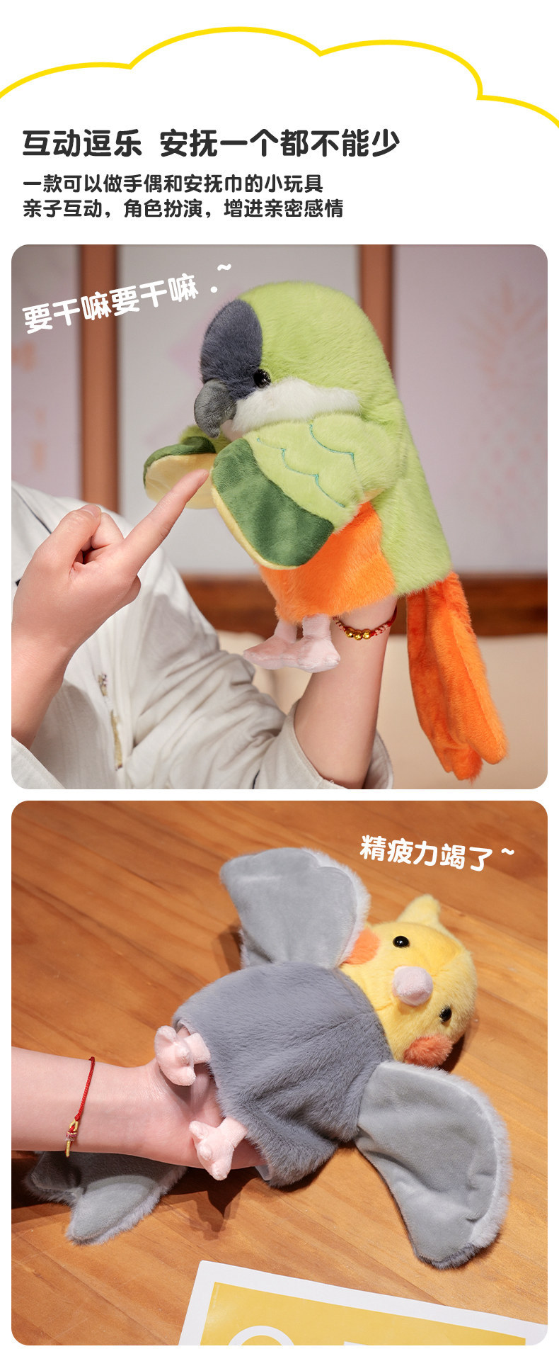 귀여운 앵무새 손 인형 봉제 장난감 Vestilum 인형 새 쇼 소품 유치원 스토리 텔링 국경 간 선물