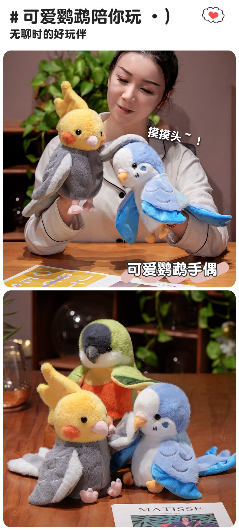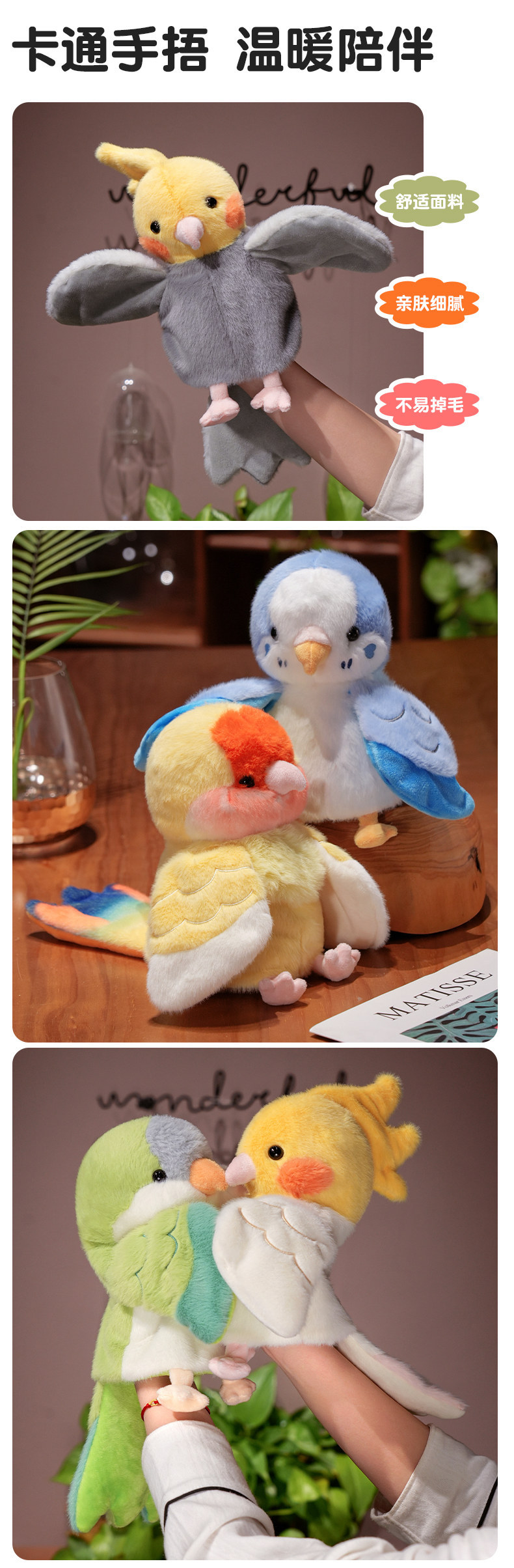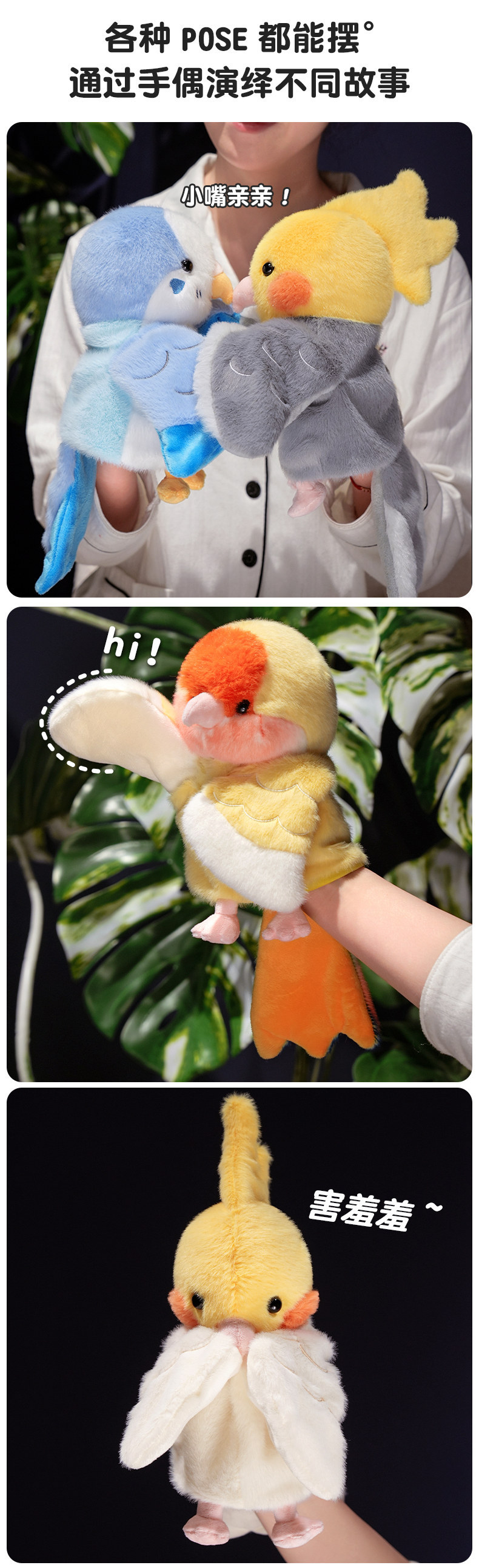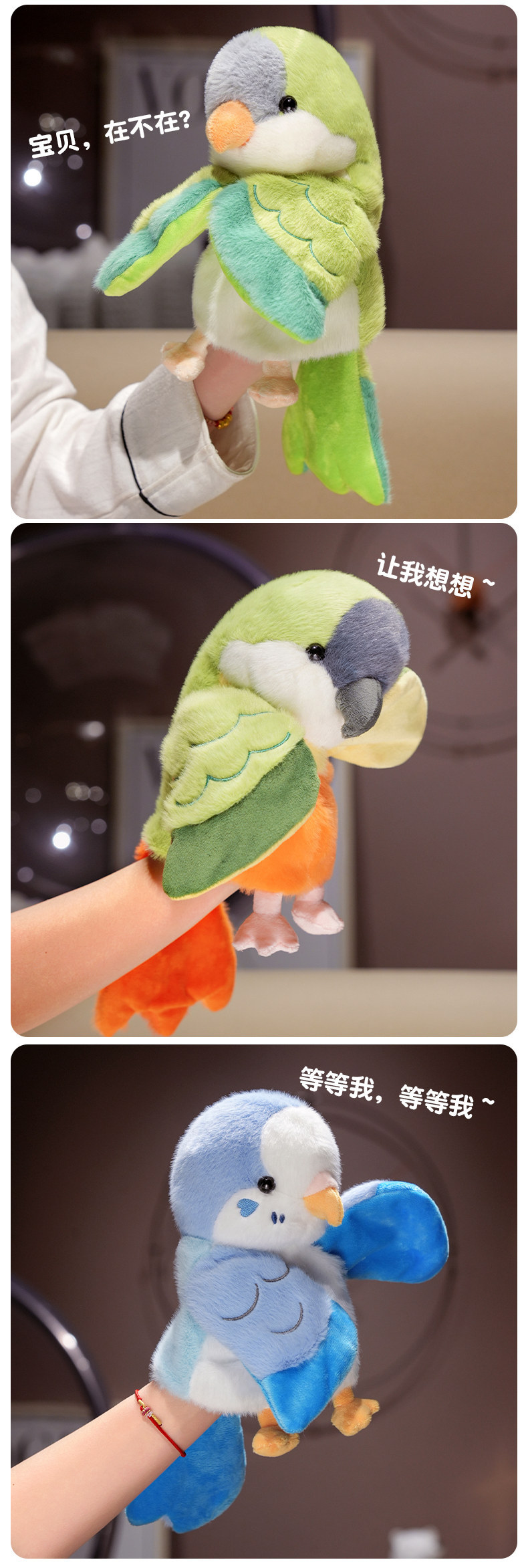 귀여운 앵무새 손 인형 봉제 장난감 Vestilum 인형 새 쇼 소품 유치원 스토리 텔링 국경 간 선물스토어 가기