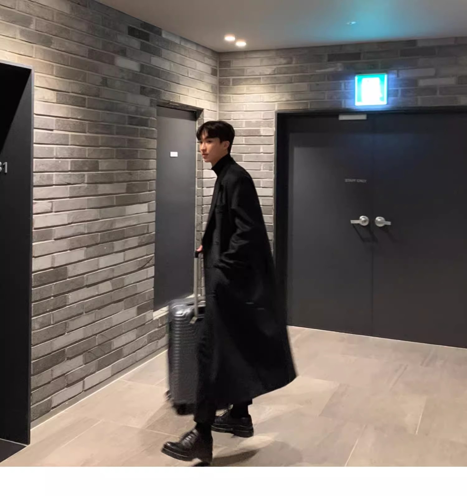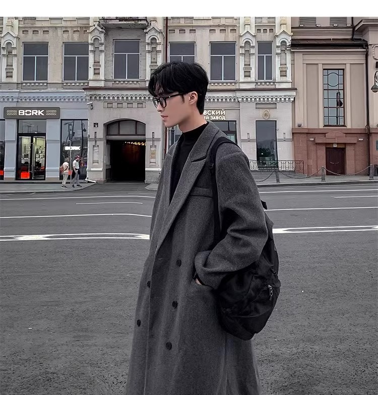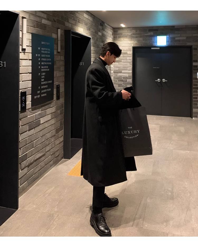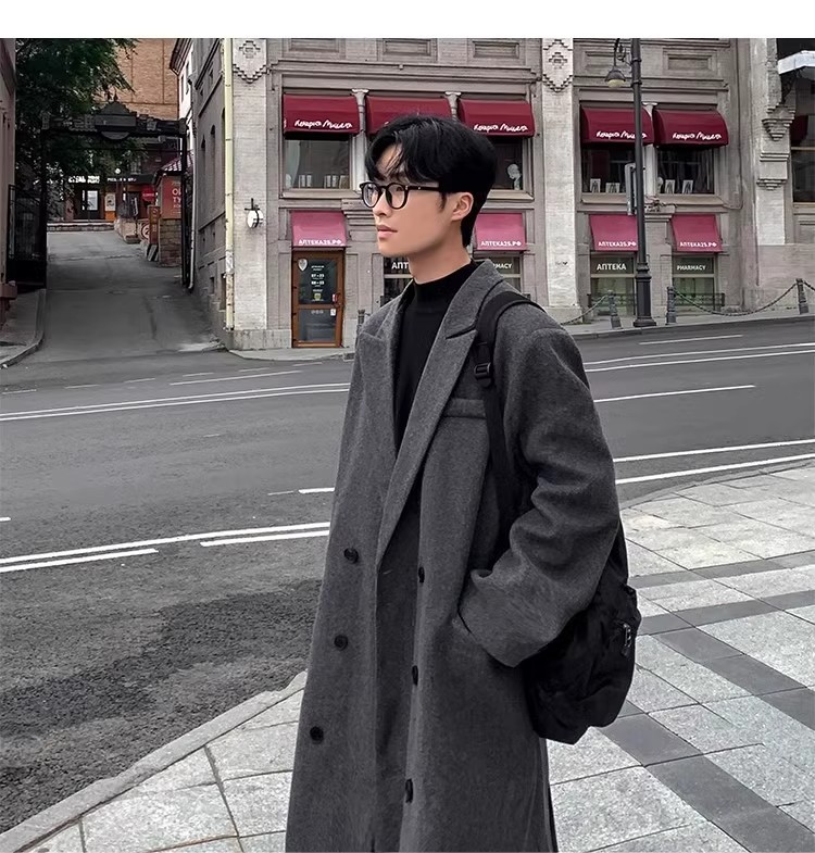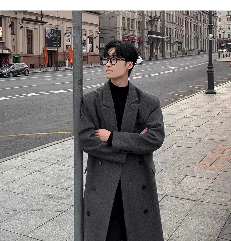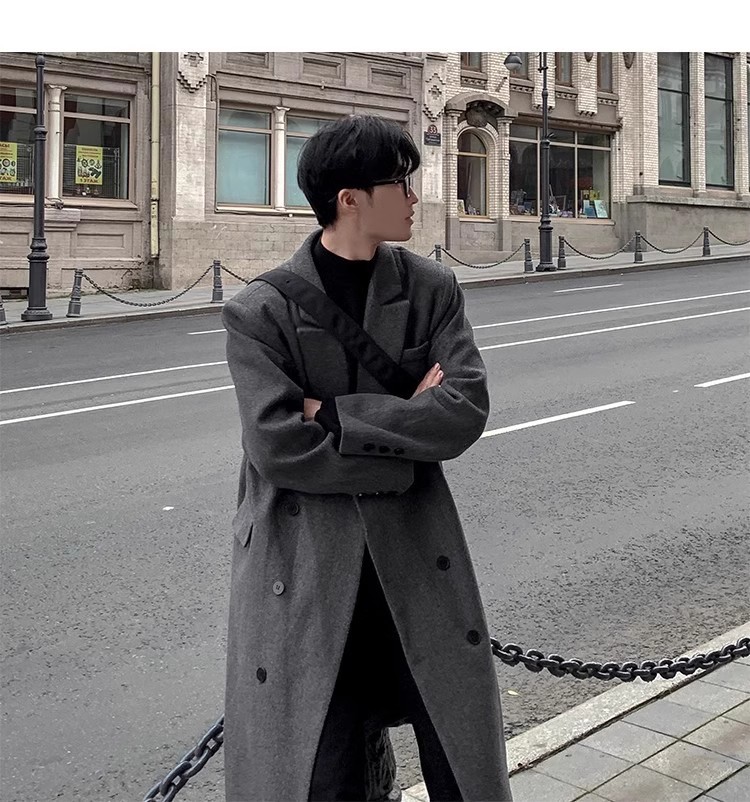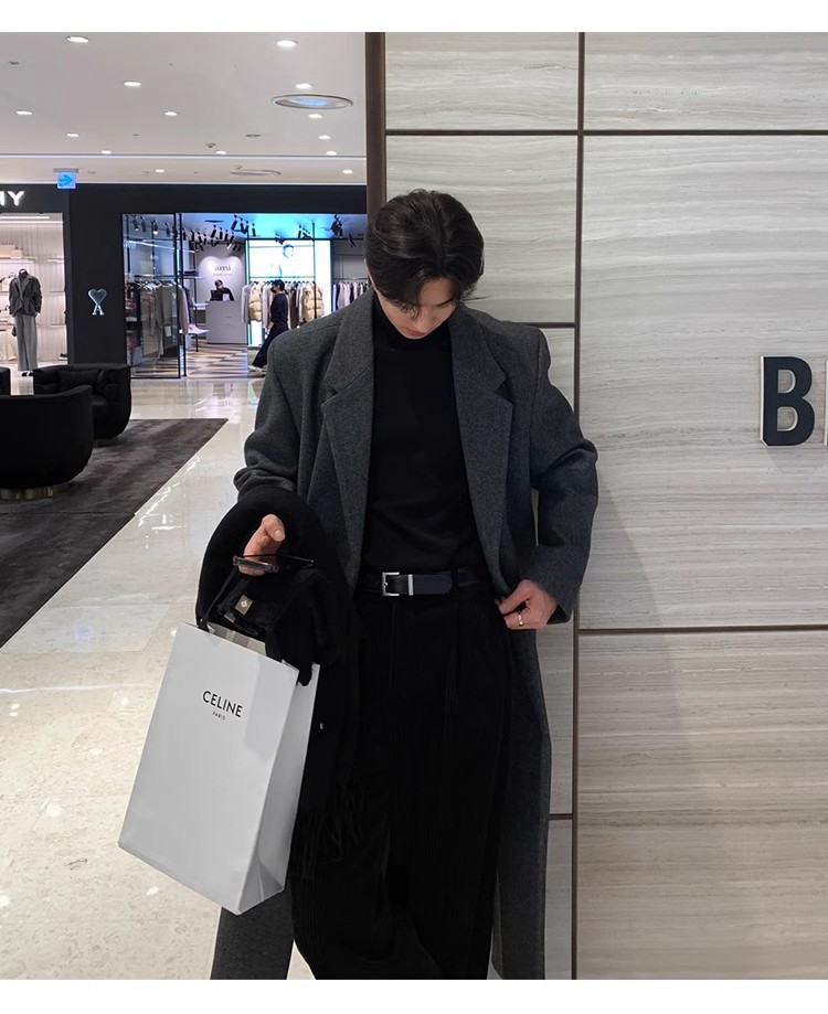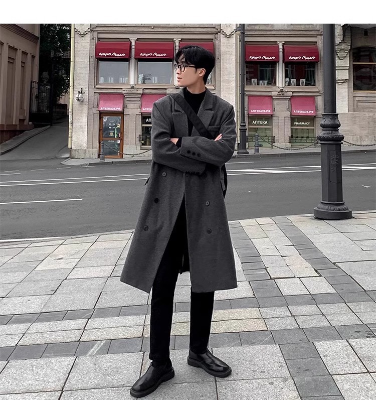 새로운 중간 길이의 모직 코트 남자의 가을과 겨울 두꺼운 한국 세트 모직 코트 느낌 Duffian 잘 생긴 무릎 위 트렌치 코트스토어 가기