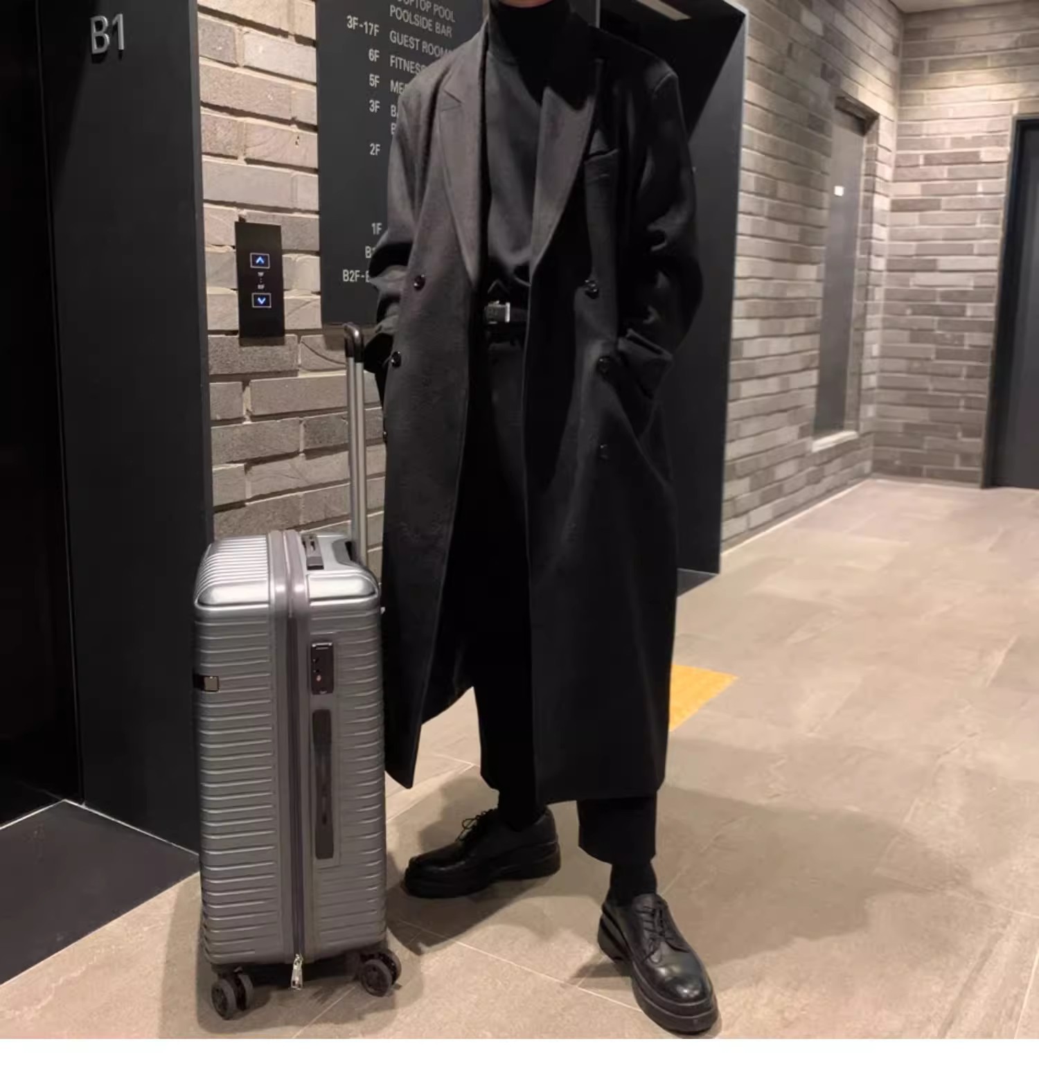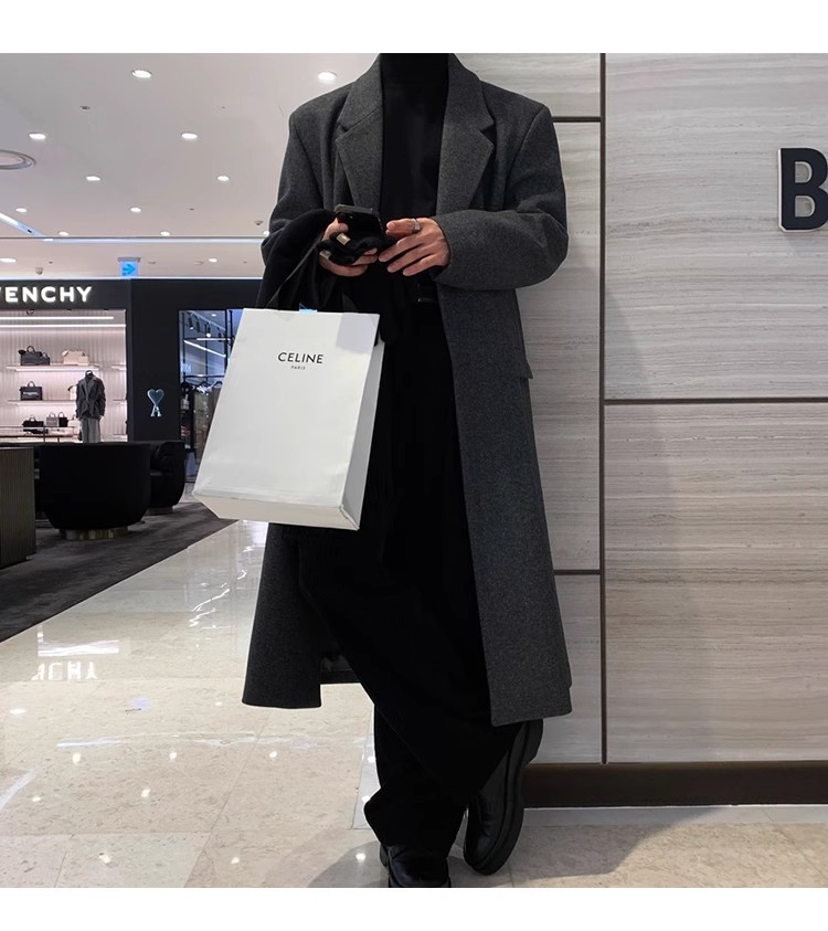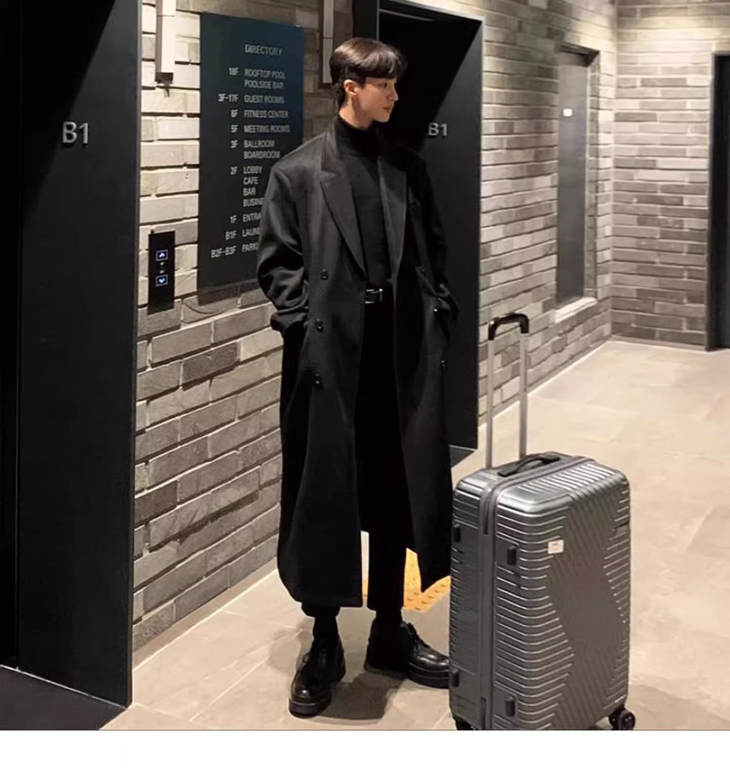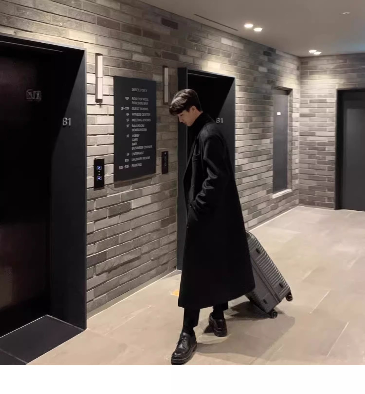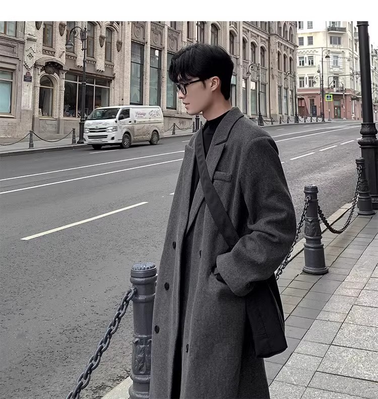 새로운 중간 길이의 모직 코트 남자의 가을과 겨울 두꺼운 한국 세트 모직 코트 느낌 Duffian 잘 생긴 무릎 위 트렌치 코트스토어 가기