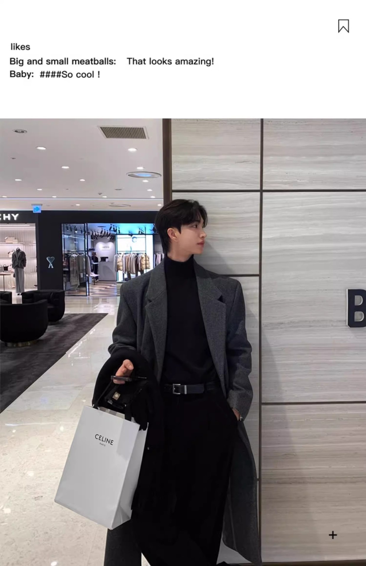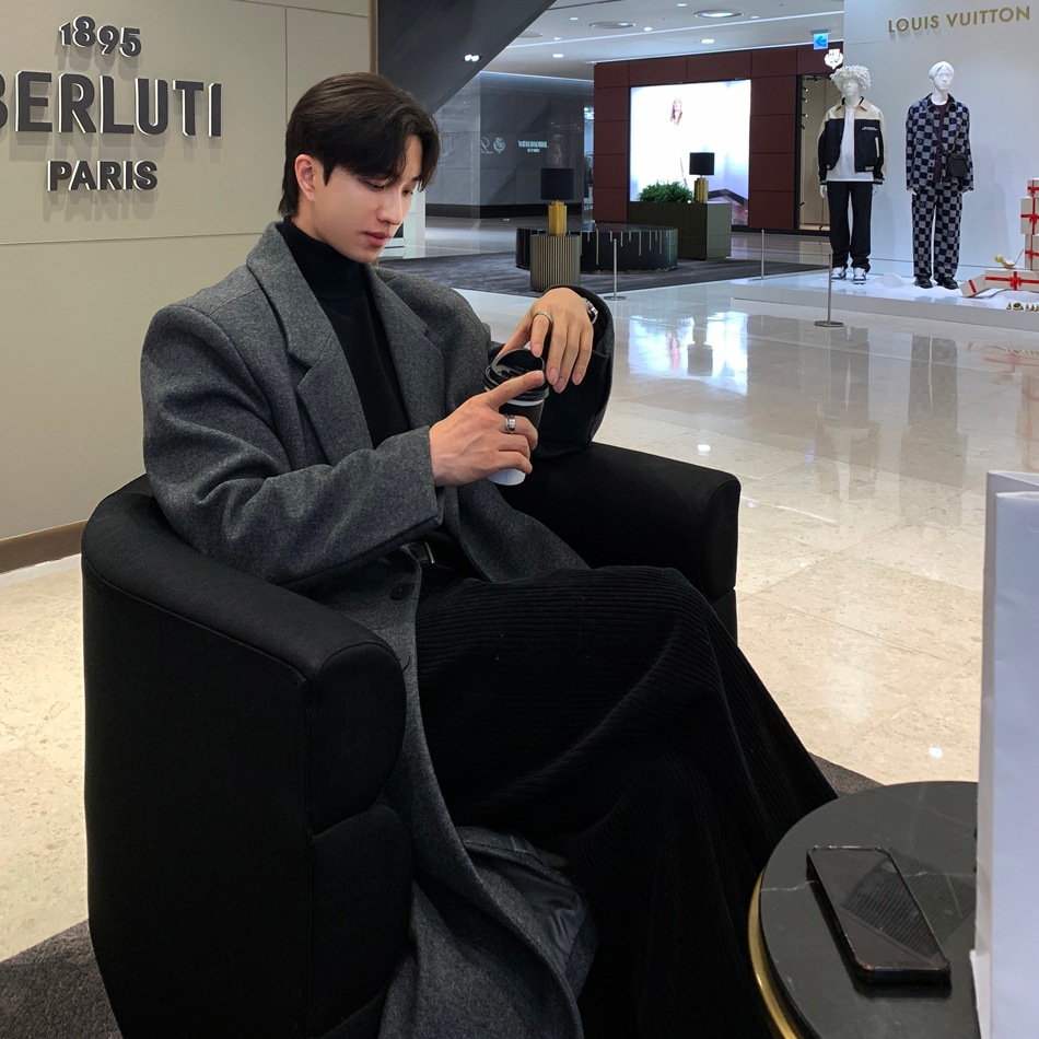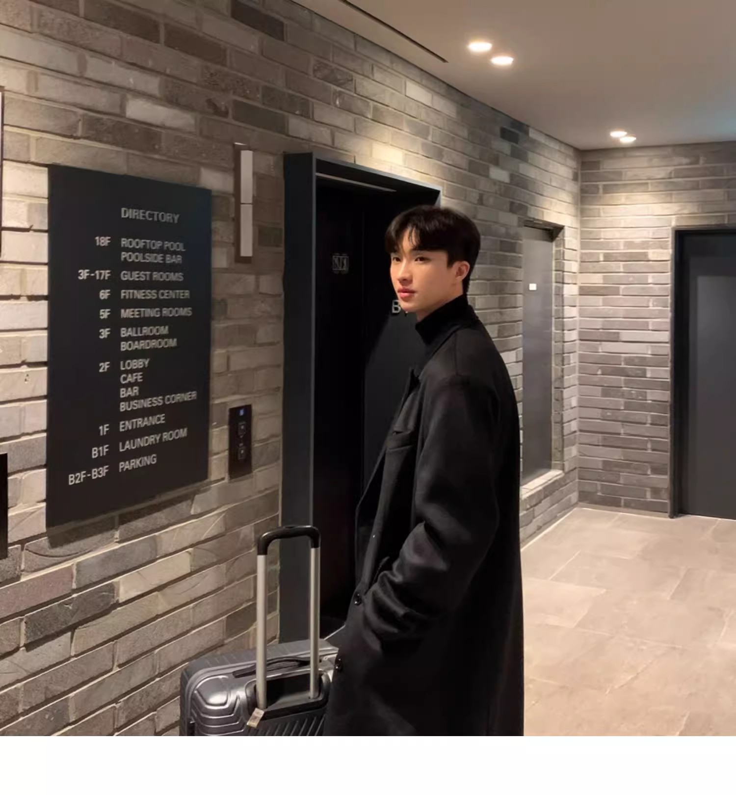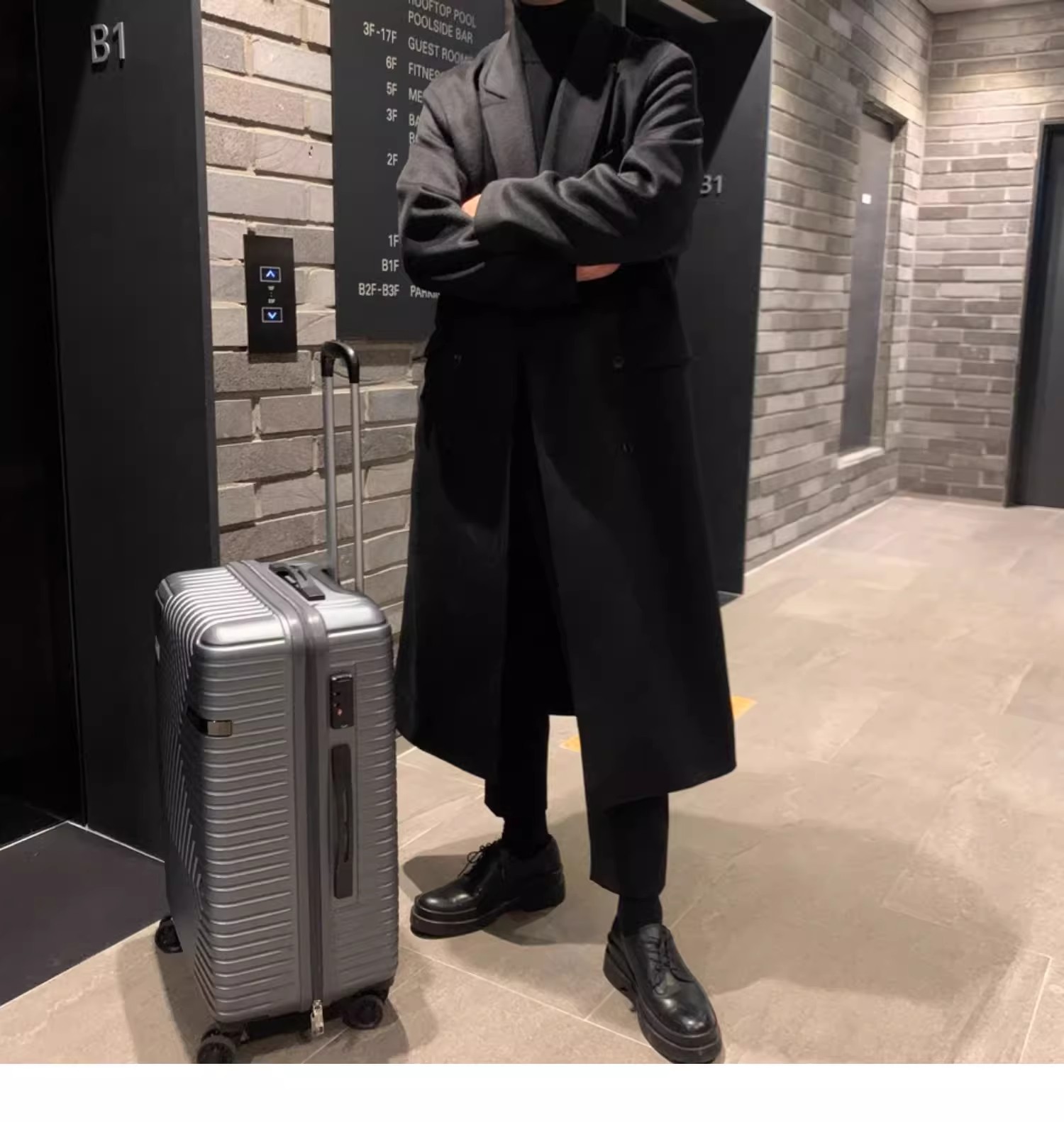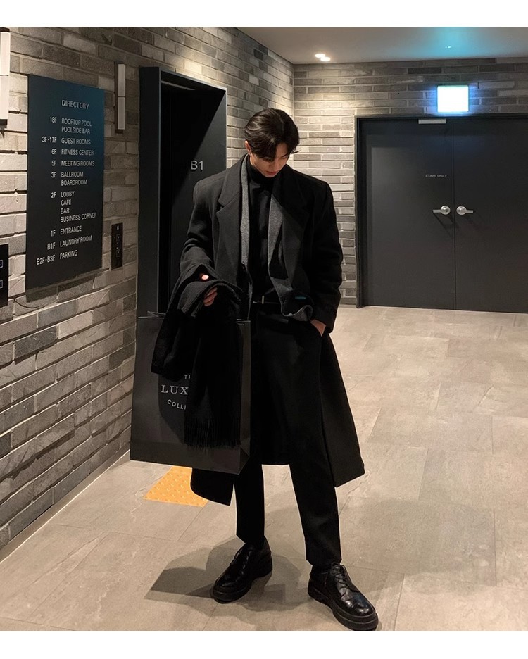 새로운 중간 길이의 모직 코트 남자의 가을과 겨울 두꺼운 한국 세트 모직 코트 느낌 Duffian 잘 생긴 무릎 위 트렌치 코트스토어 가기