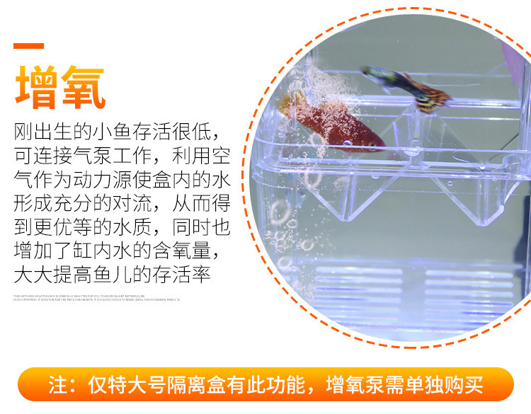 ●晶莹透彻的箱体,可观看母鱼产仔或斗鱼,无阻隔,增添无穷乐趣