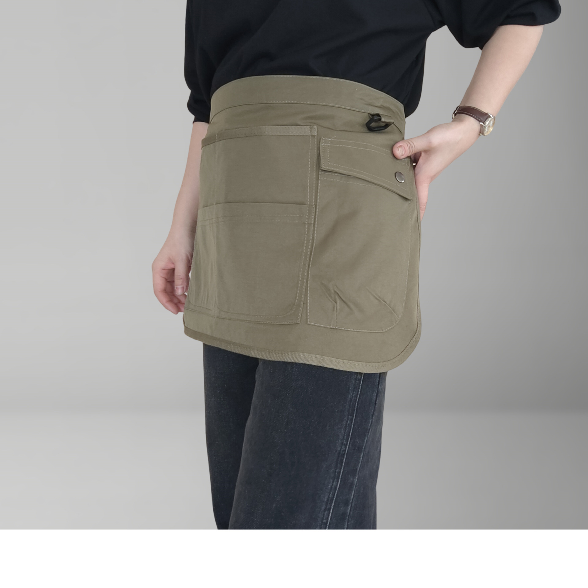 새로운 반 길이 스티칭 앞치마 바리 스타 레스토랑 솔리드 컬러 허리 주방 짧은 조정 가능한 작업복 남성과 여성