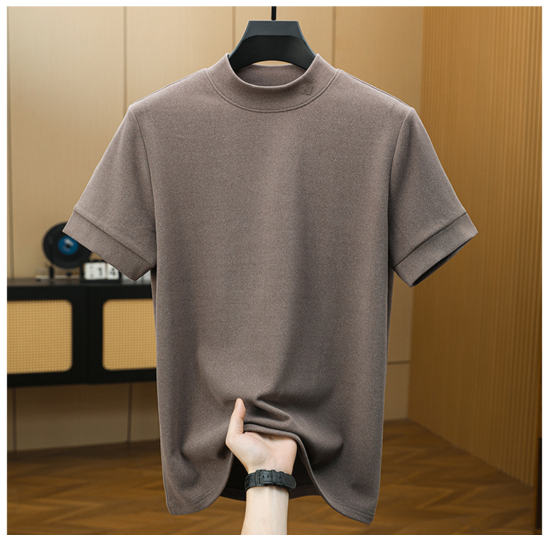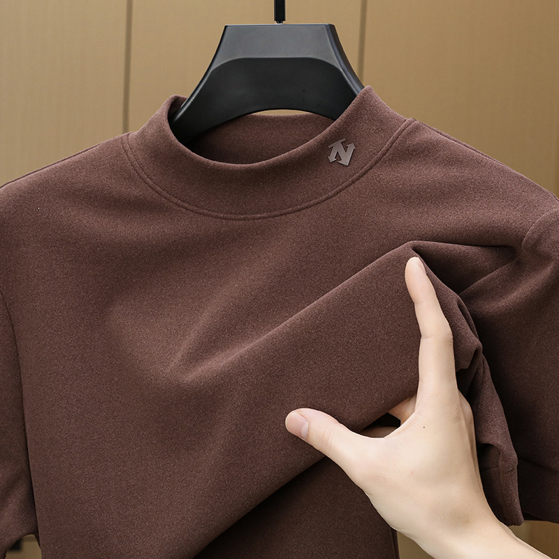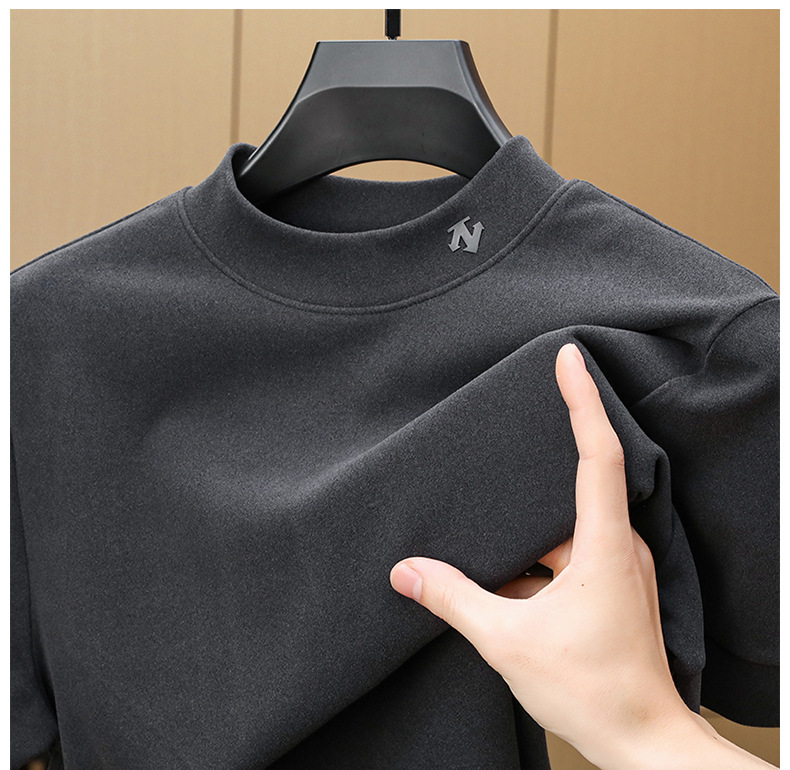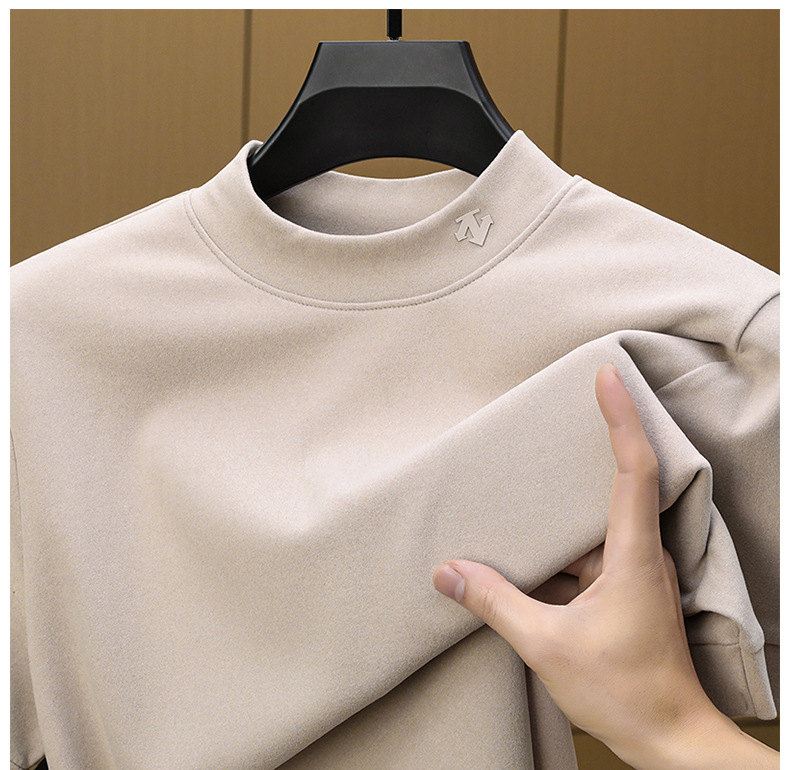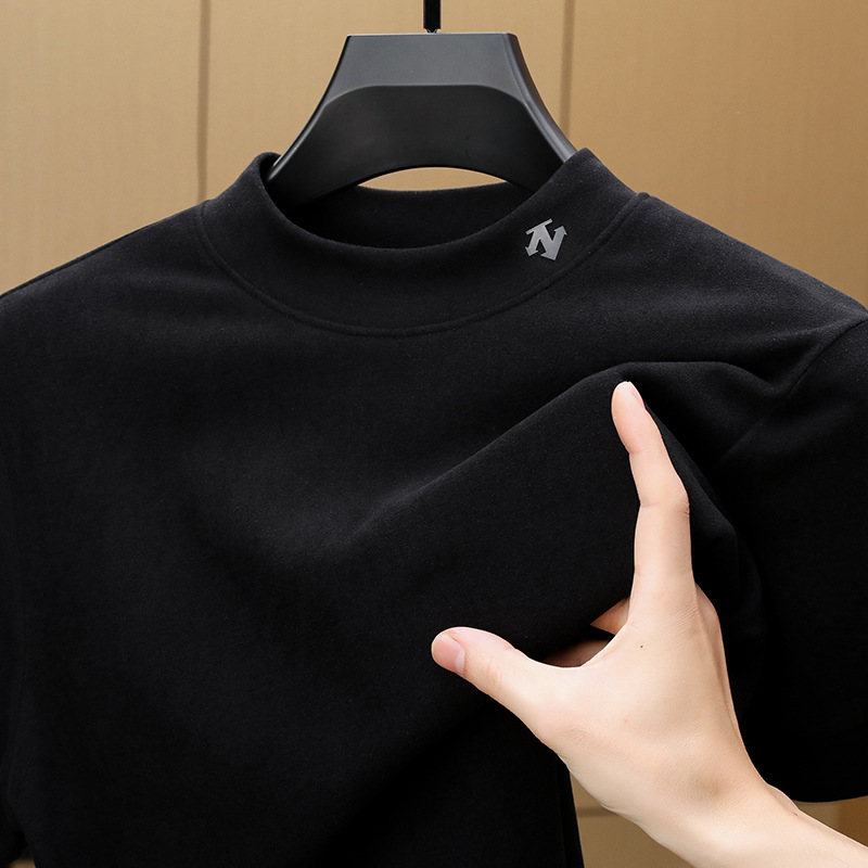 2025 시즌 그래핀 하프 터틀넥 보온 반팔 이너웨어 남성용 양면 독일산 벨벳 무지 이너 티셔츠