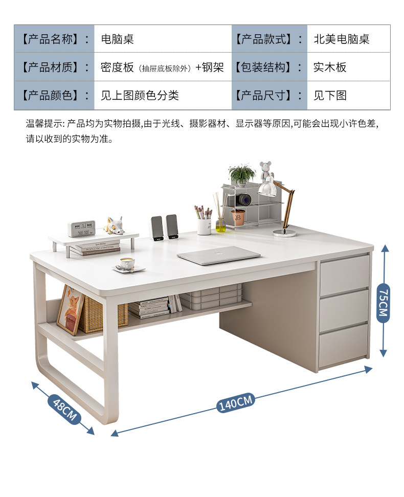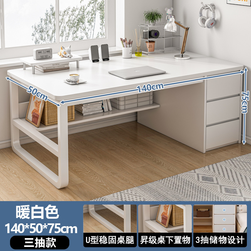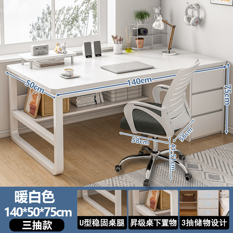 • [업그레이드된 서랍 3개 + 컴퓨터 의자] 140CM 웜화이트