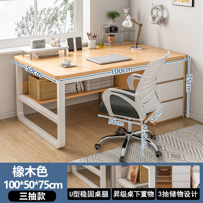 • [업그레이드된 서랍 3개 + 컴퓨터 의자] 100CM 오크 컬러