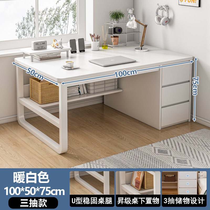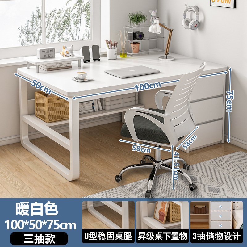 • [업그레이드된 서랍 3개 + 컴퓨터 의자] 100CM 웜화이트